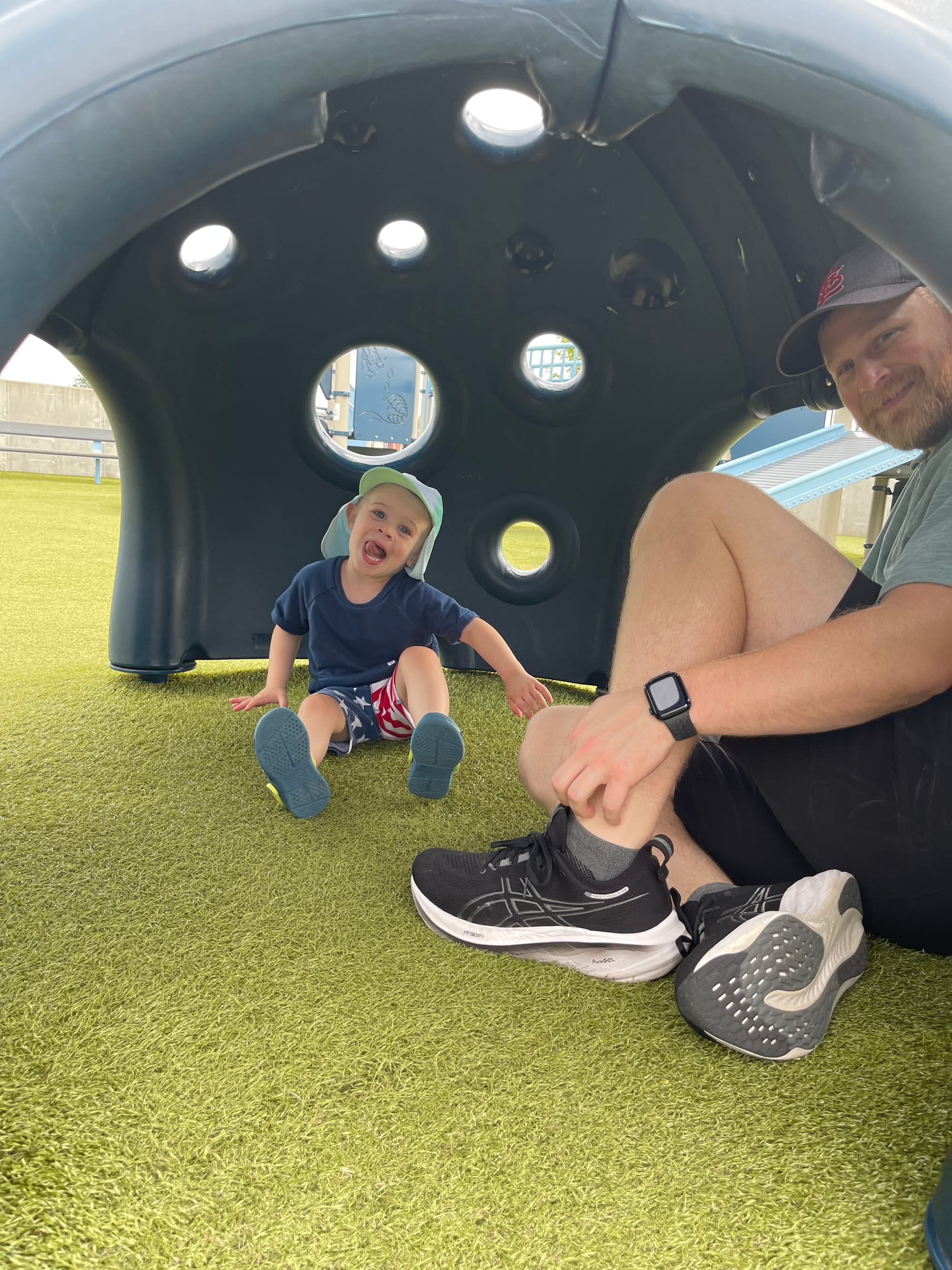 We woke up around 8:30 and Ben was ready to go! We went downstairs, grabbed some breakfast + headed to a park!