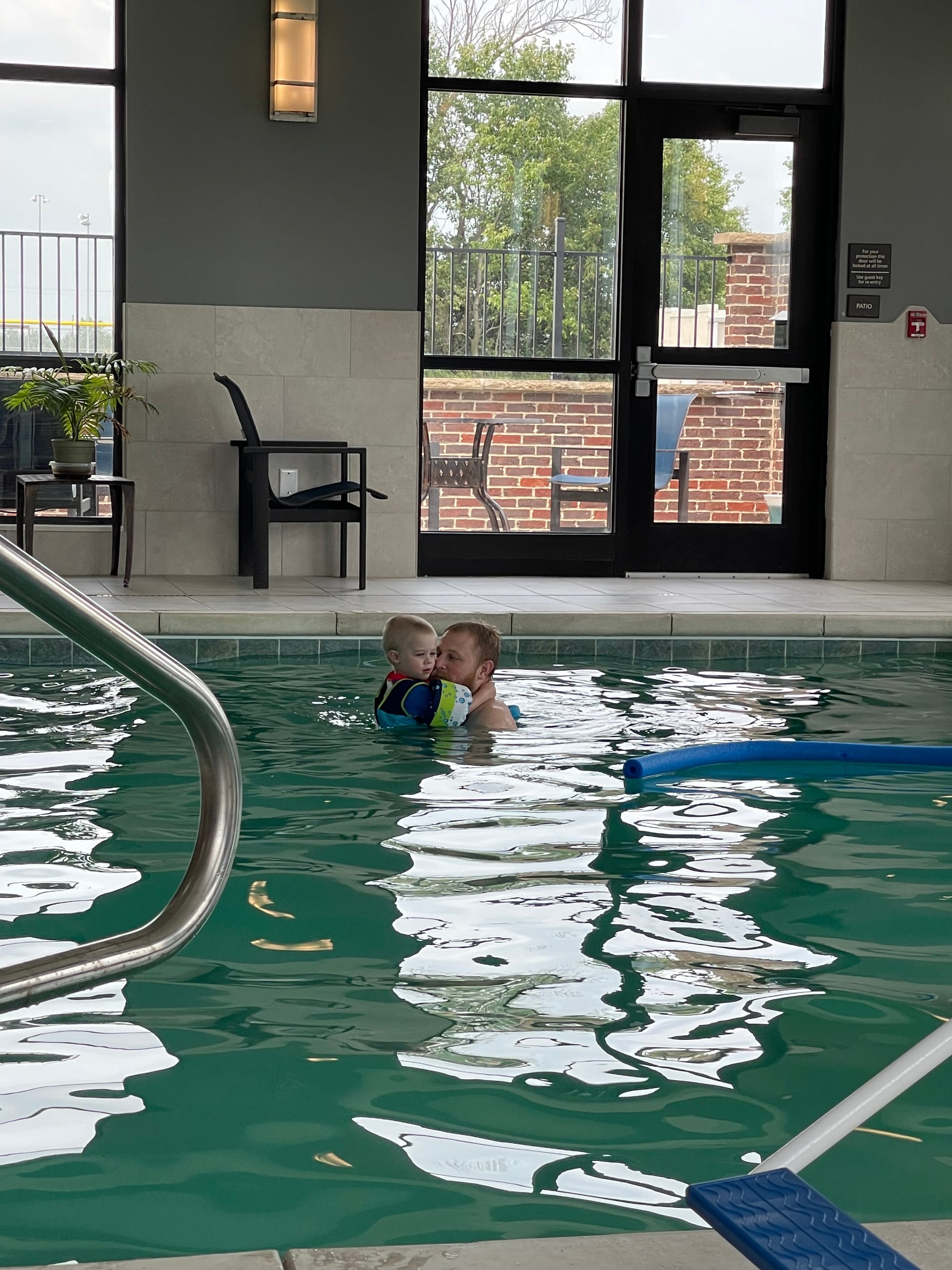 We came back to the hotel and the boys tried to swim… it was freezing!