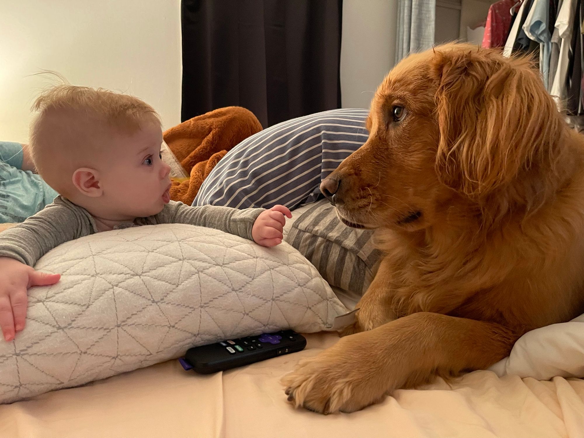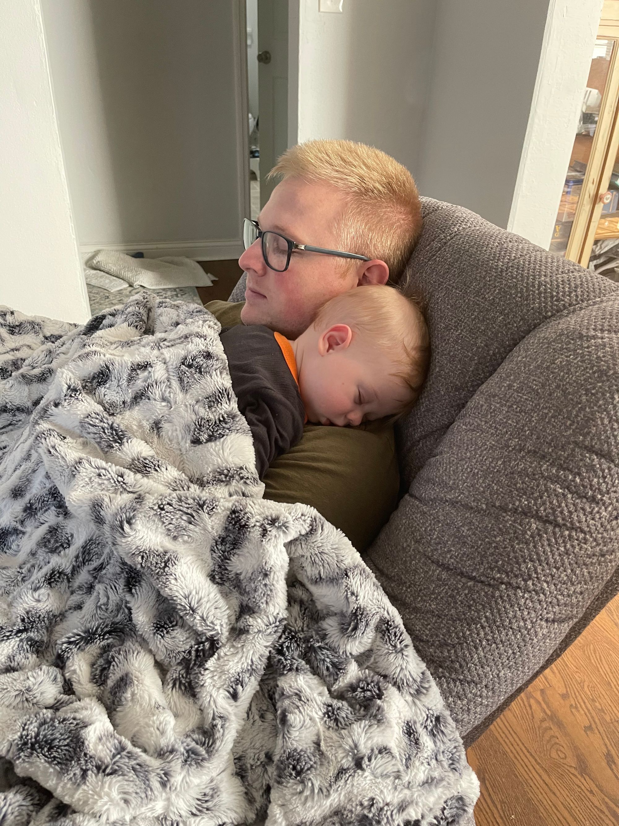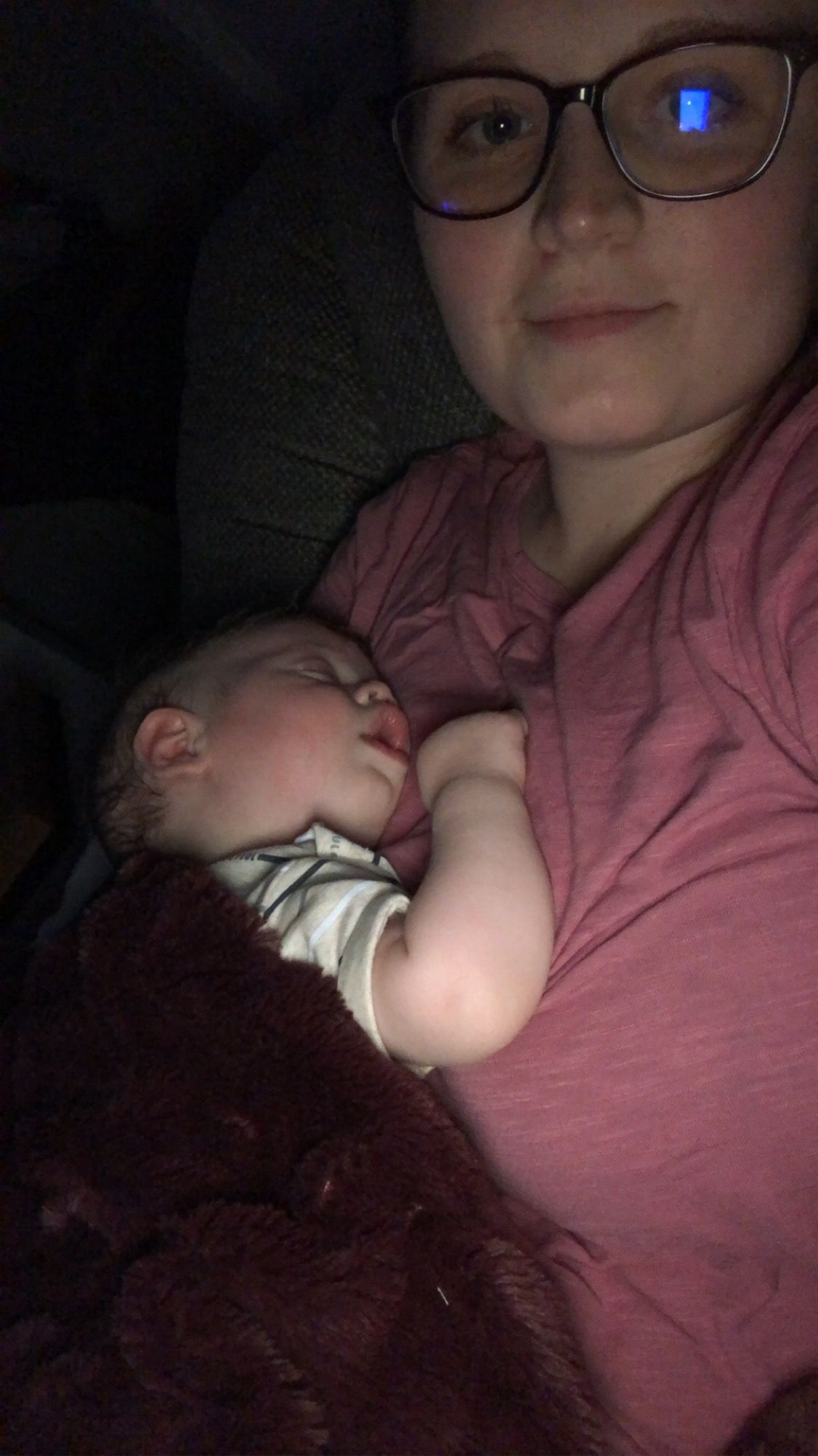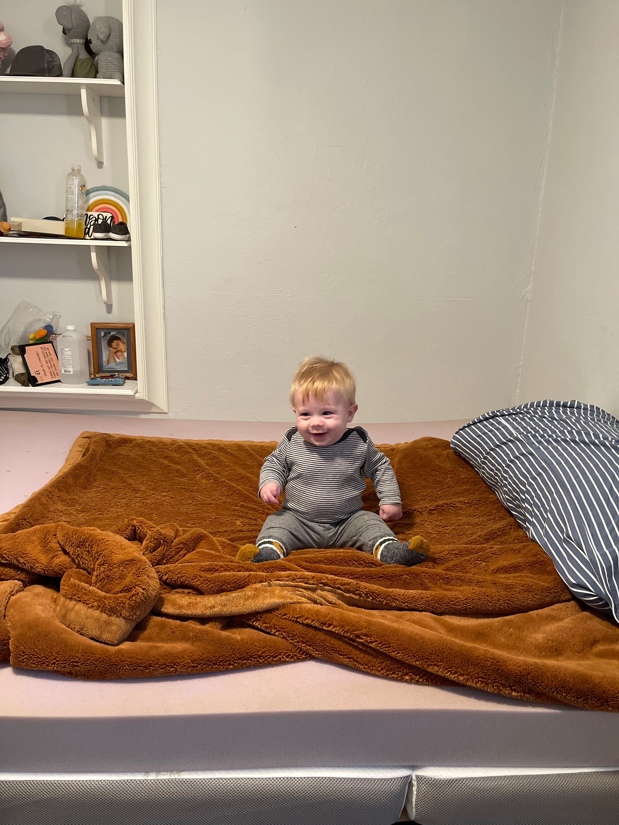 He's literally slept in my arms or next to me every single night of his life. I've spent many nights sleeping in a recliner, propped up in bed, whatever it took. We've moved a queen bed into our room next to our king bed to provide extra space at times, we've taken down our bedframe and placed our mattress on the floor, I know this won't last long so I am taking everything I can get.