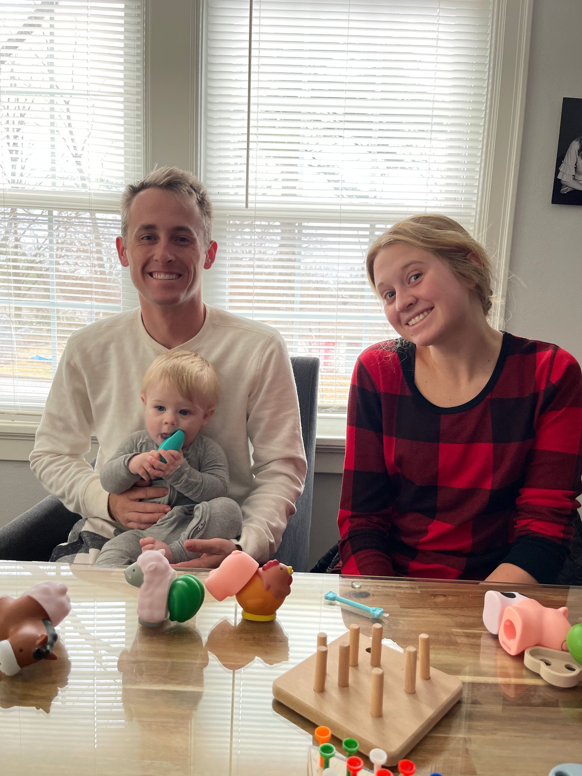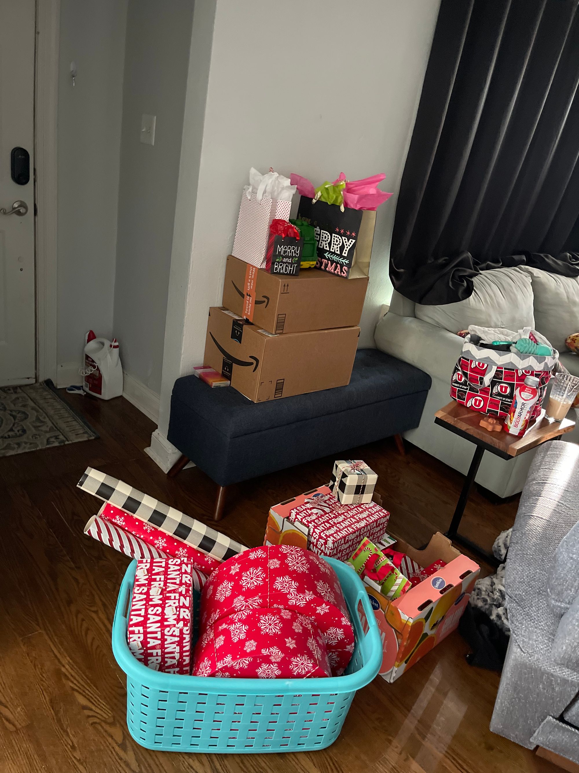 When Lizzie asked if they could come visit us for Christmas it was obviously a YES! We have never had visitors, or spent a Christmas with any family since moving to Missouri for dental school. We were so excited! We also decided to do an auction as a gift exchange, so we each purchased a few real gifts and a few funny gifts. My awesome neighbors volunteered to wrap them so we wouldn't know what gift was what. They even added in some of their own! :)