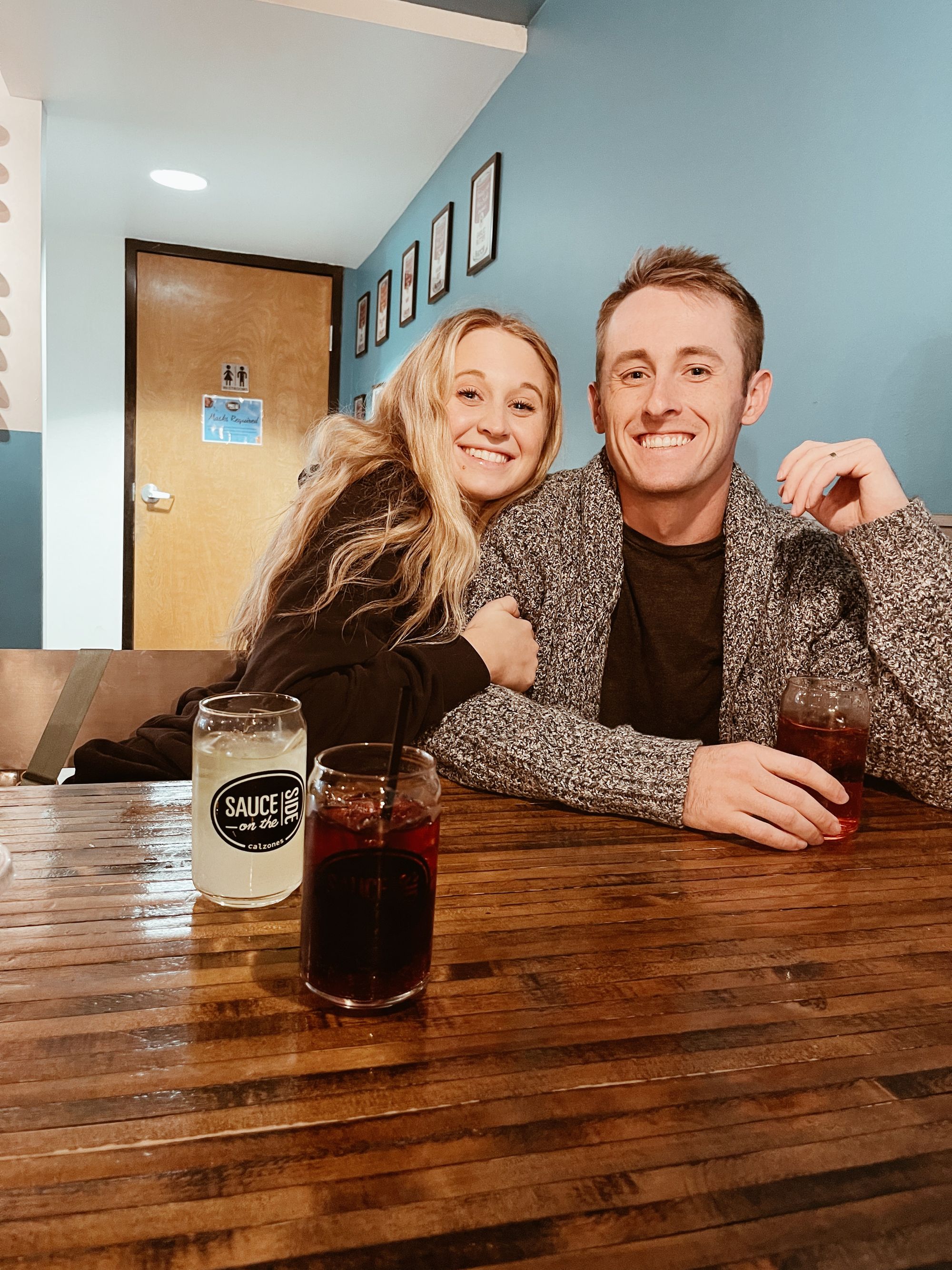 Josh + Lizzie drove to Las Vegas Wednesday morning to get on their 1:30 pm direct flight to St. Louis! They arrived around 7 pm our time and we picked them up and went to Sauce on the Side! It was delicious. We finished the night off with some ice cream from Andy's!