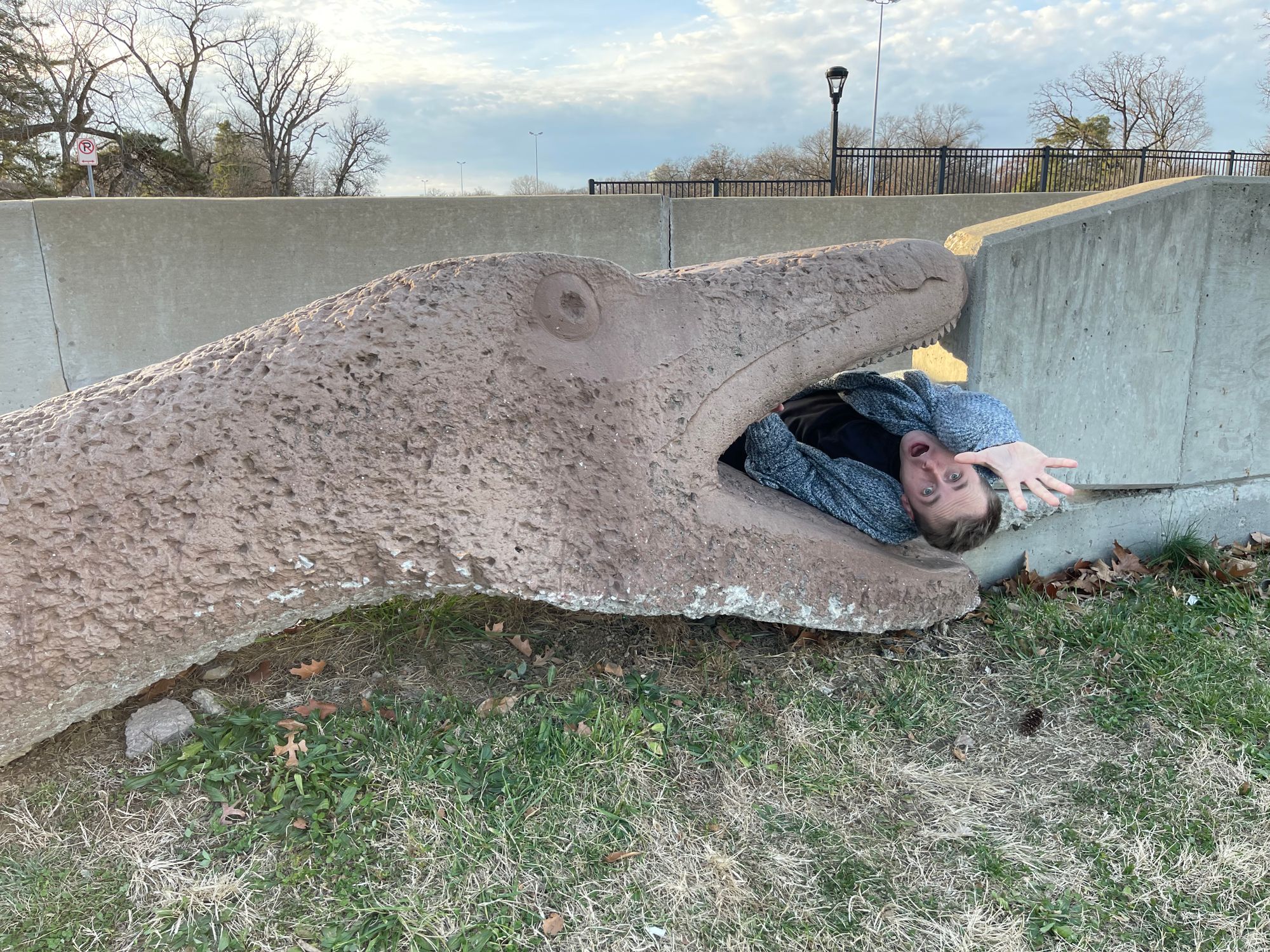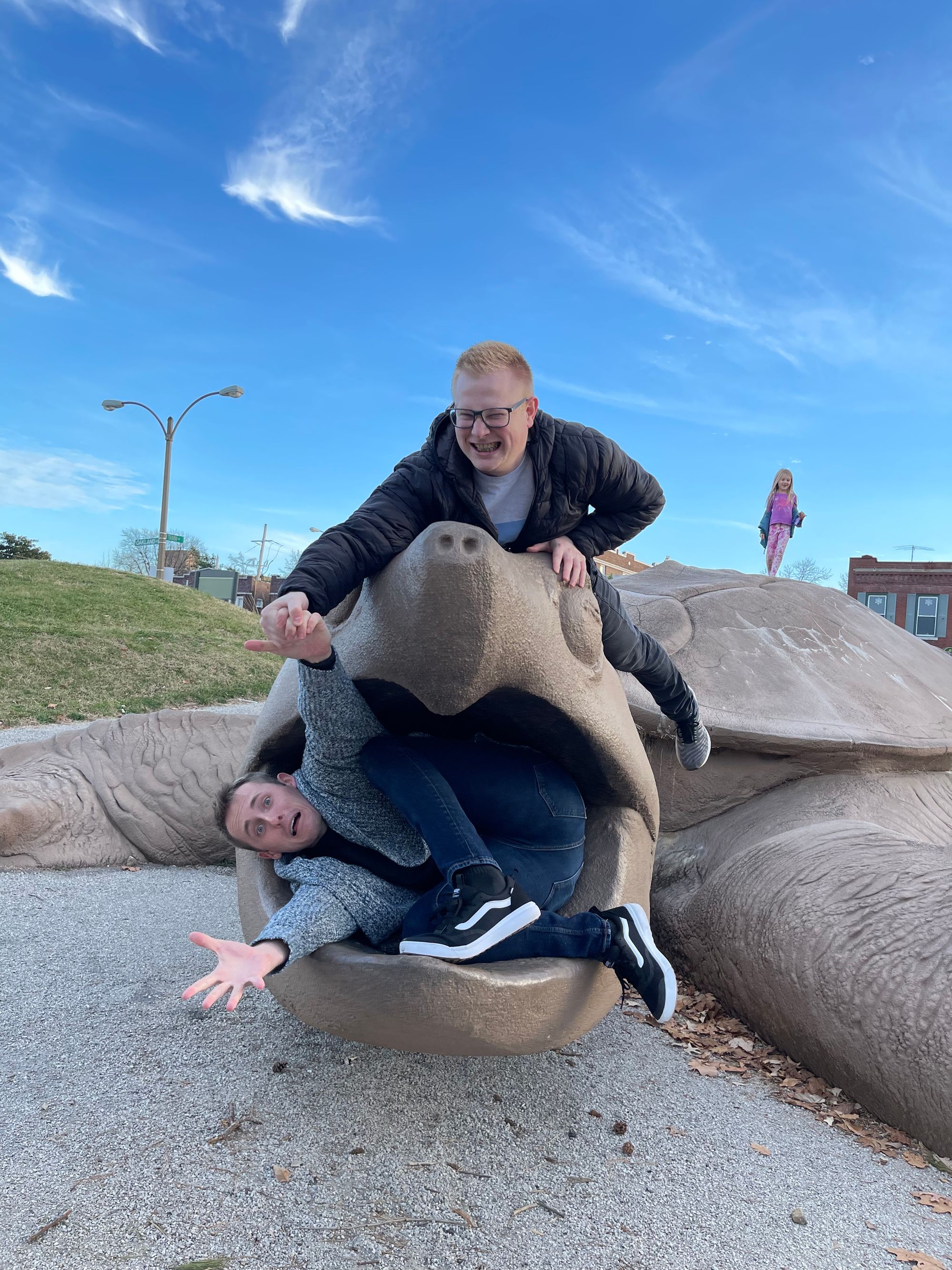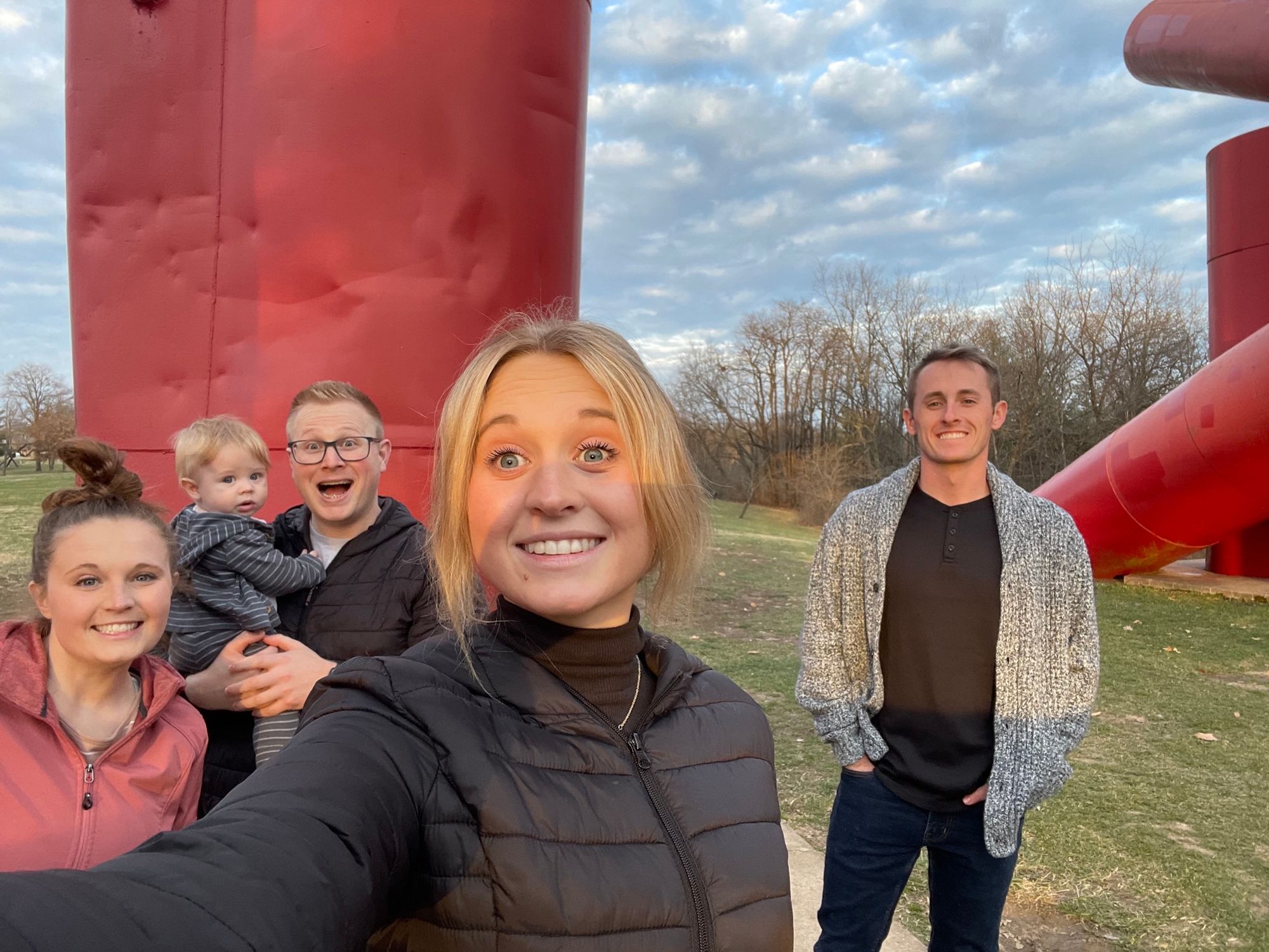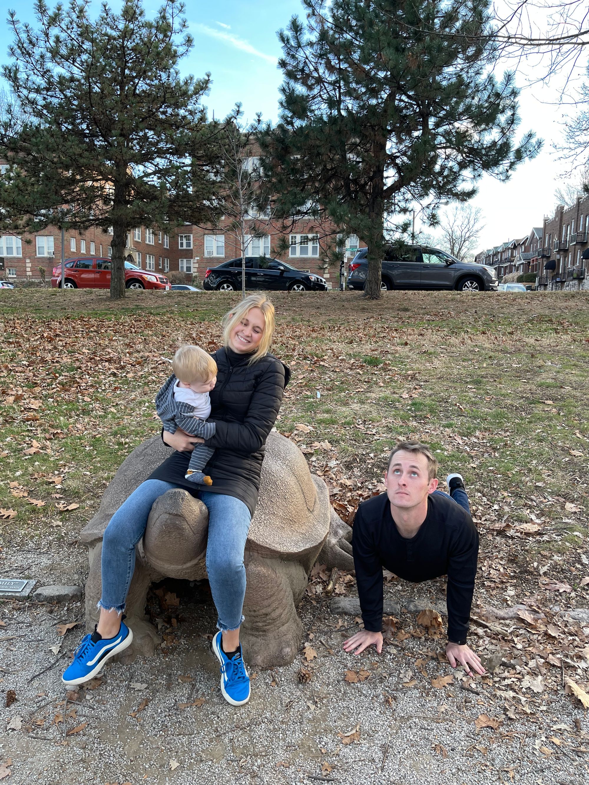 Thursday morning we ate some biscuits and got ready for a full day of fun! Our first stop was downtown for lunch. The boys got some Sugarfire BBQ and Lizzie + I got some HiPointe burgers and grilled cheese. We headed to Turtle Sculpture Park! Josh was hilarious getting in all of the photo ops possible! Turns out there is another sculpture park closer to our house so we went and checked that out too! I was pretty impressed with Josh's fun finds. We headed home for a few hours for some naps before we were going to Grant's Farm to drive thru some Christmas Lights! The actual lights were okay. It was sooo busy! The biggest lights were the brake lights of the car in front of us.