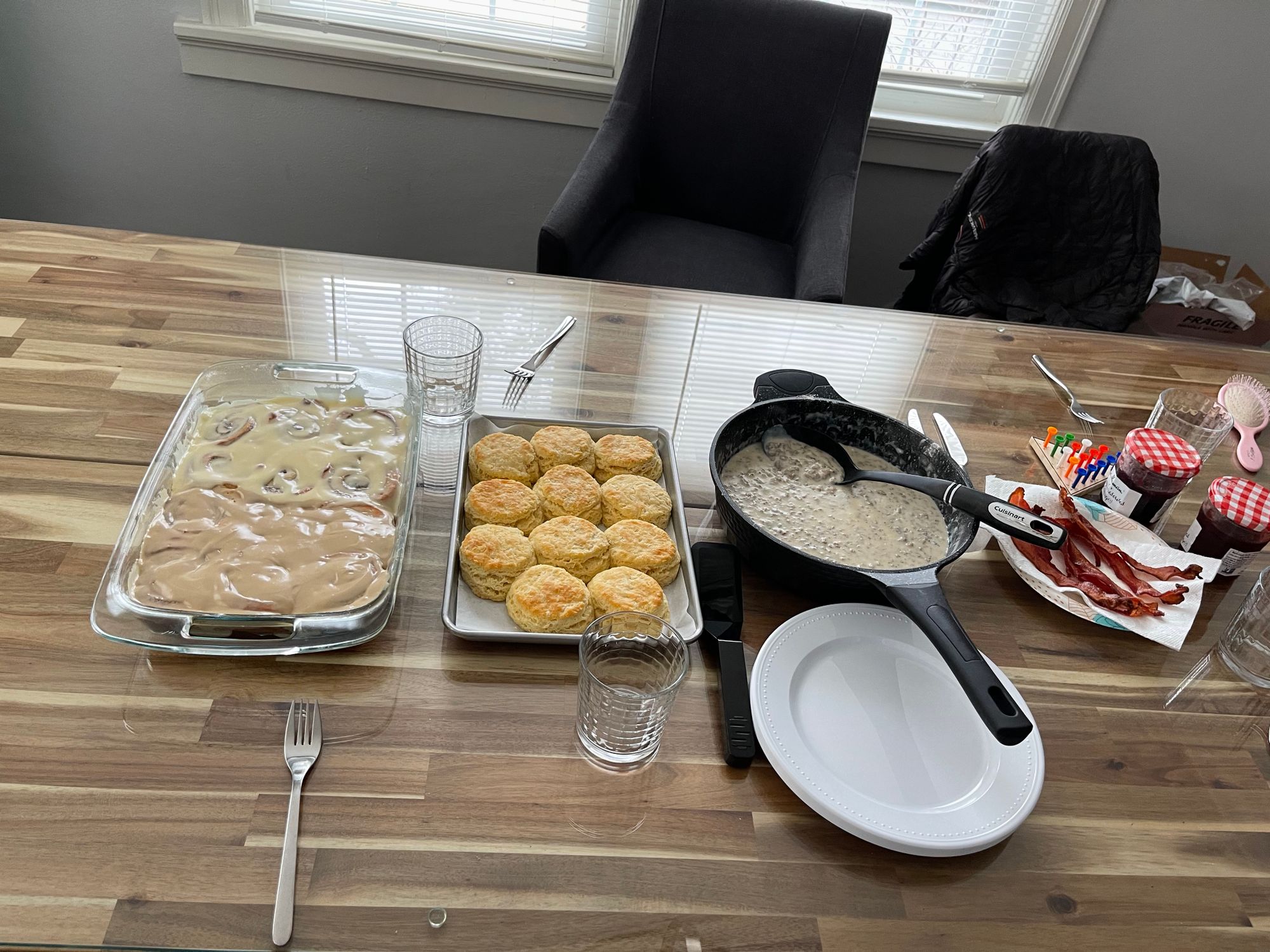 Saturday was Christmas Day! Benny was up bright and early at 6:30 am. I figured I might as well get up and start working on cinnamon rolls and biscuits for breakfast. Benny fell back asleep with Logan which was great! Around 9:30 am we ate breakfast and it wad delicious!!