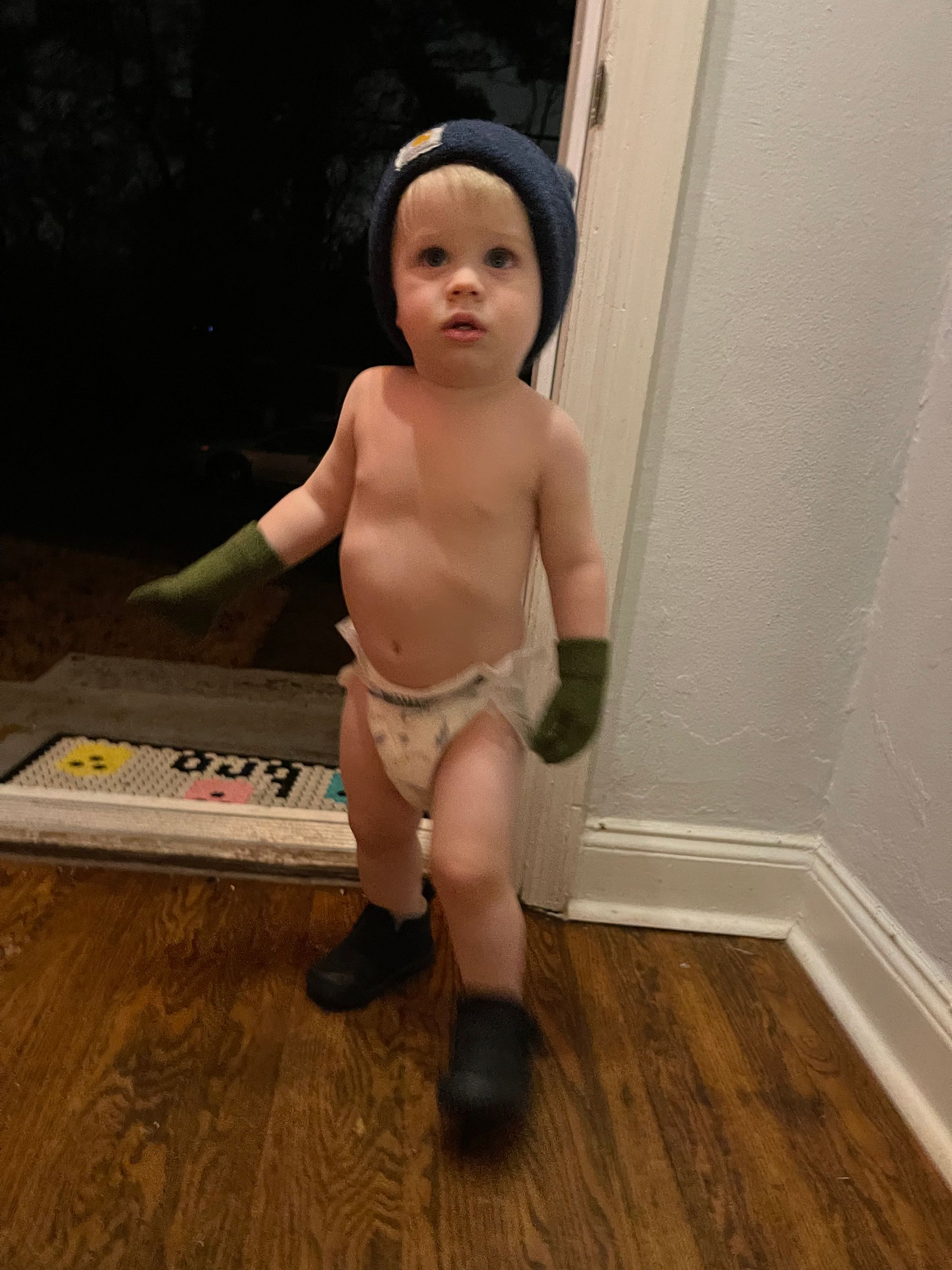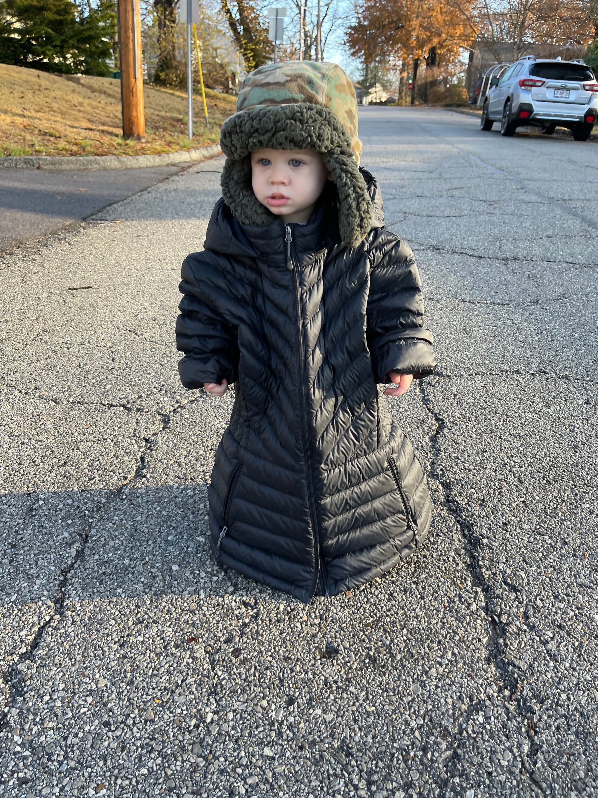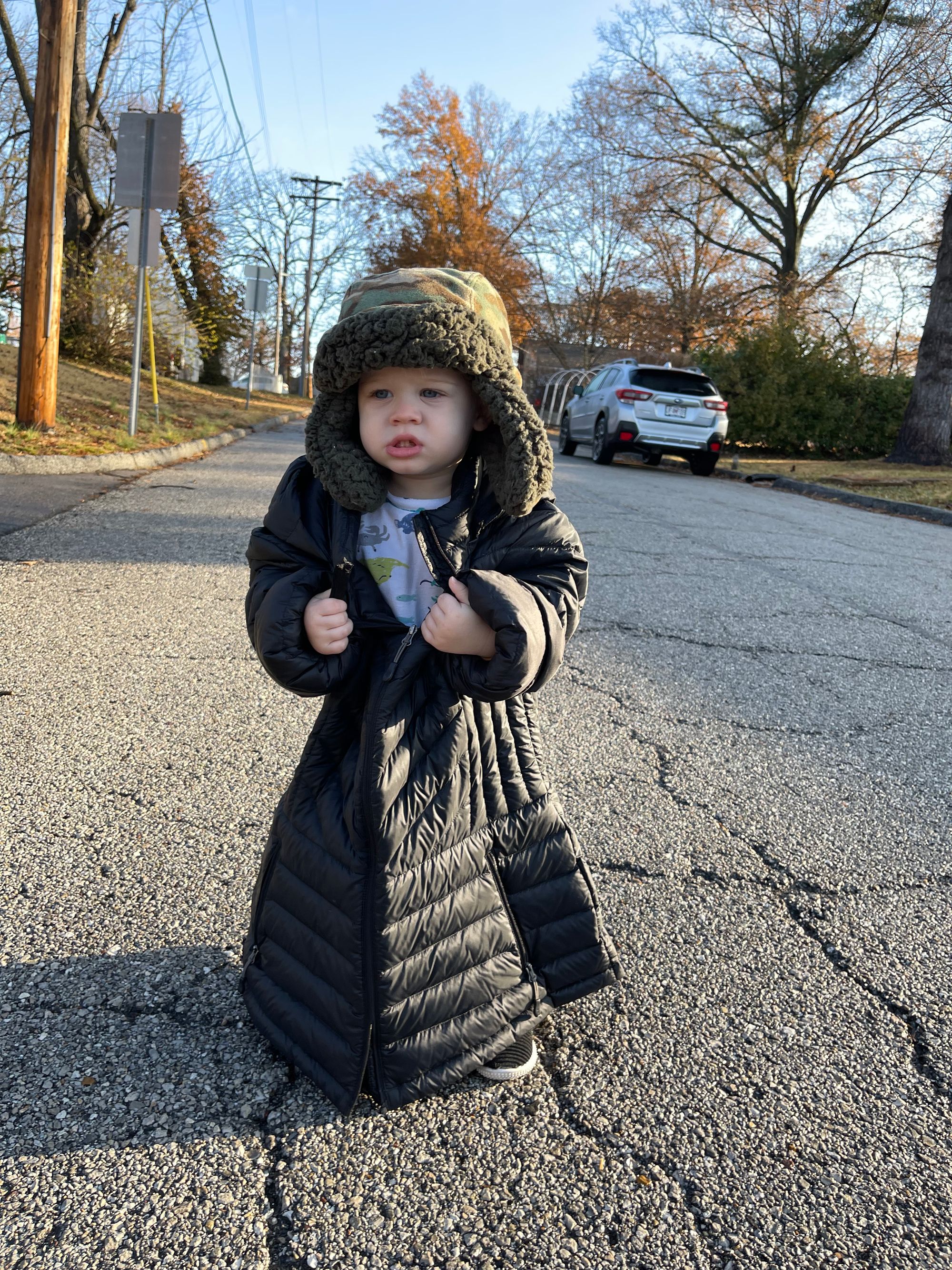 Look at this outfit Benson demanded to wear on our walk today. LOL