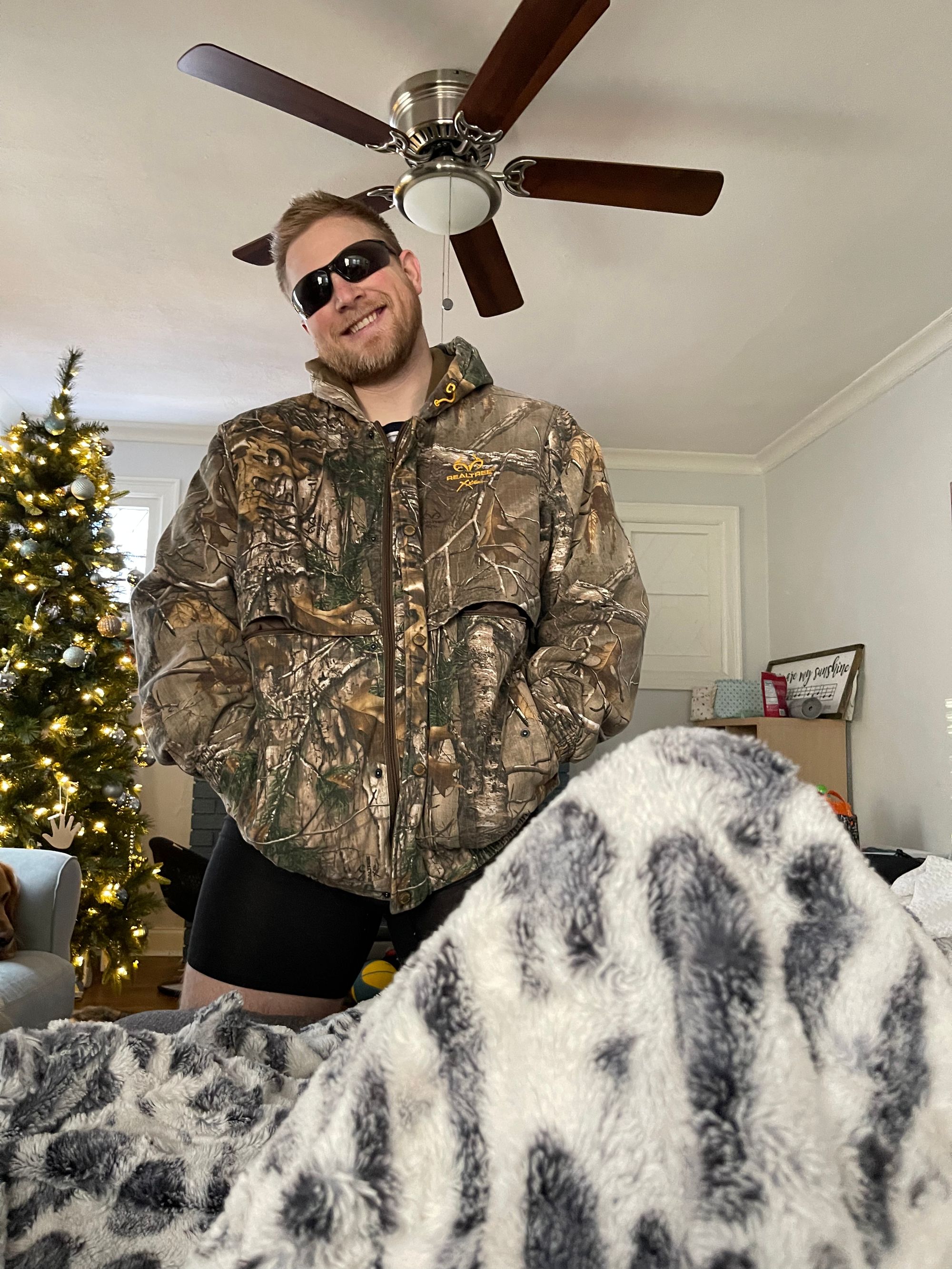 Happy Early Christmas! Yes, he has about 3 layers of new summer clothing on. :)
