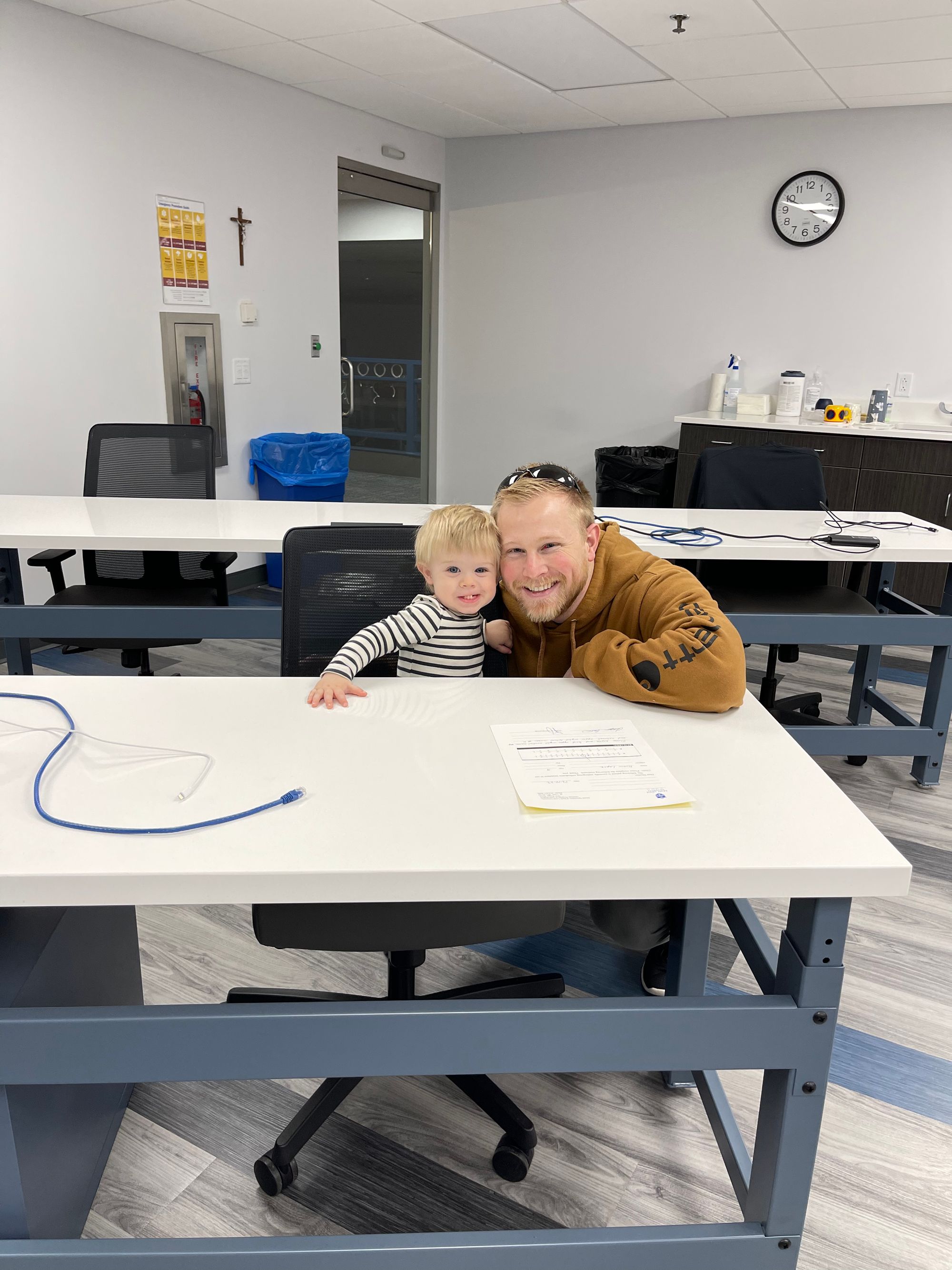 I finally got to see where Logan spents all of his days! He is on call and needed to pick up the phone. Benson loved the clinic.