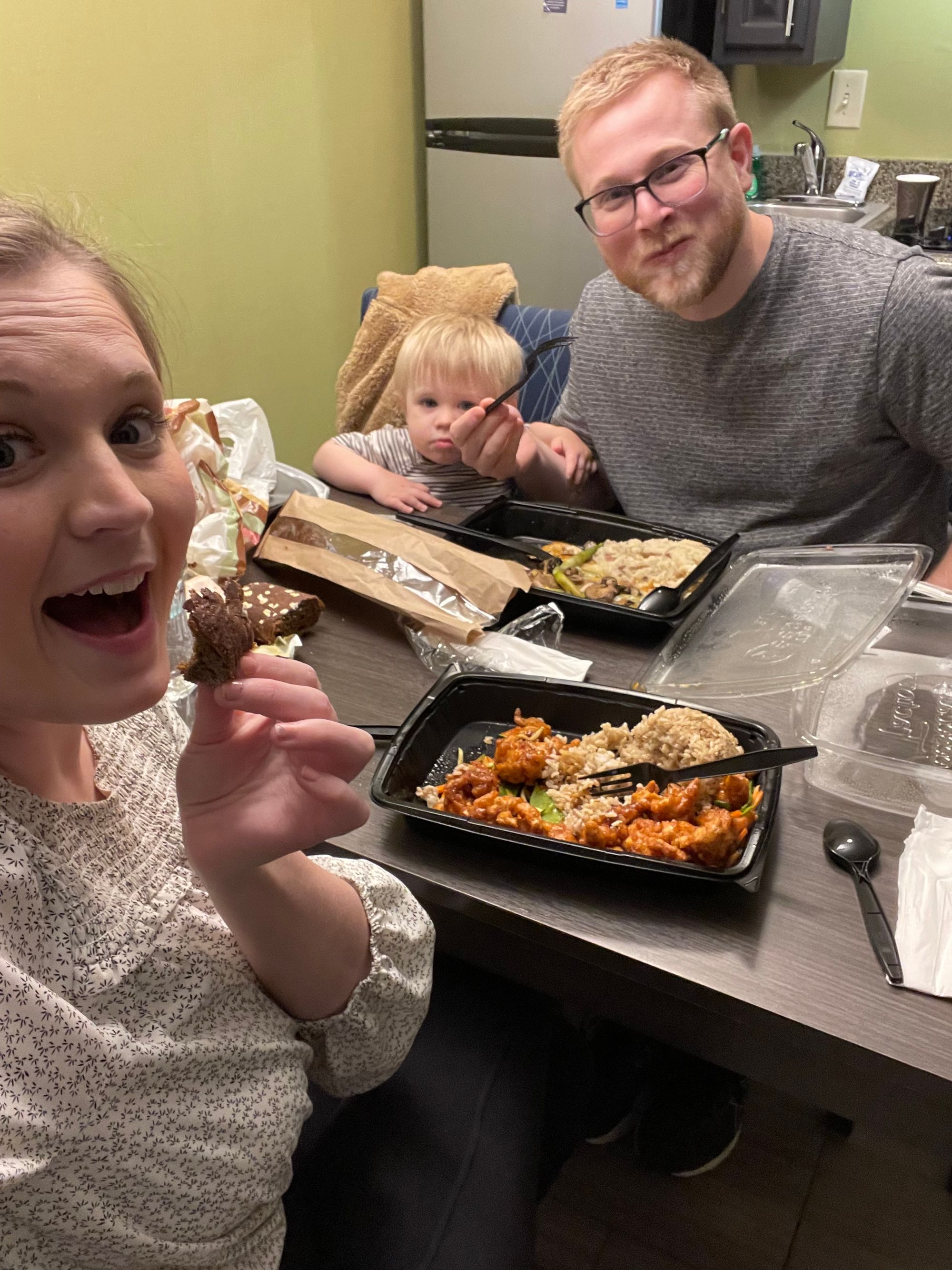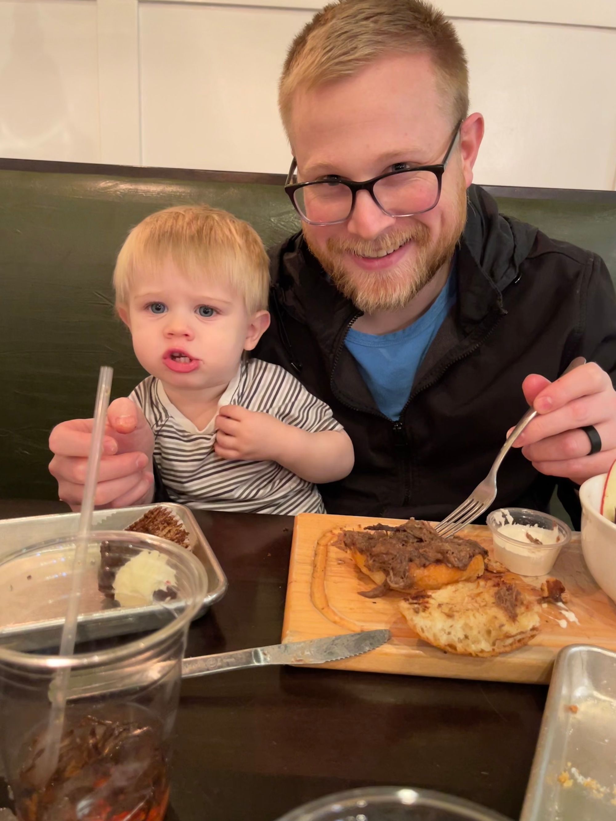 G + G Wooly gave us a giftcard to Cheesecake Factory for dinner. We got it to go and it was sooo good! Benny could do laps in the wagon alll night!