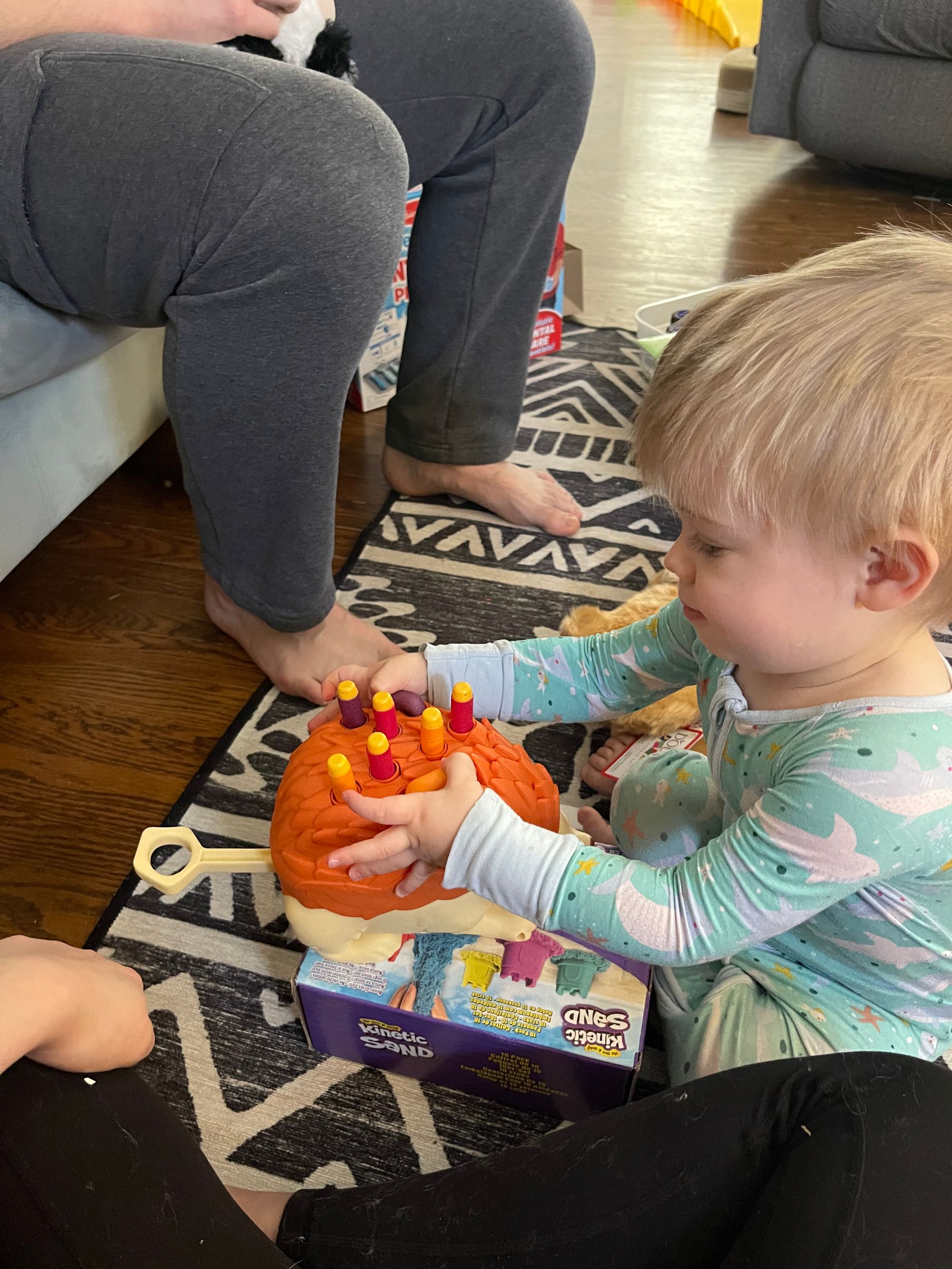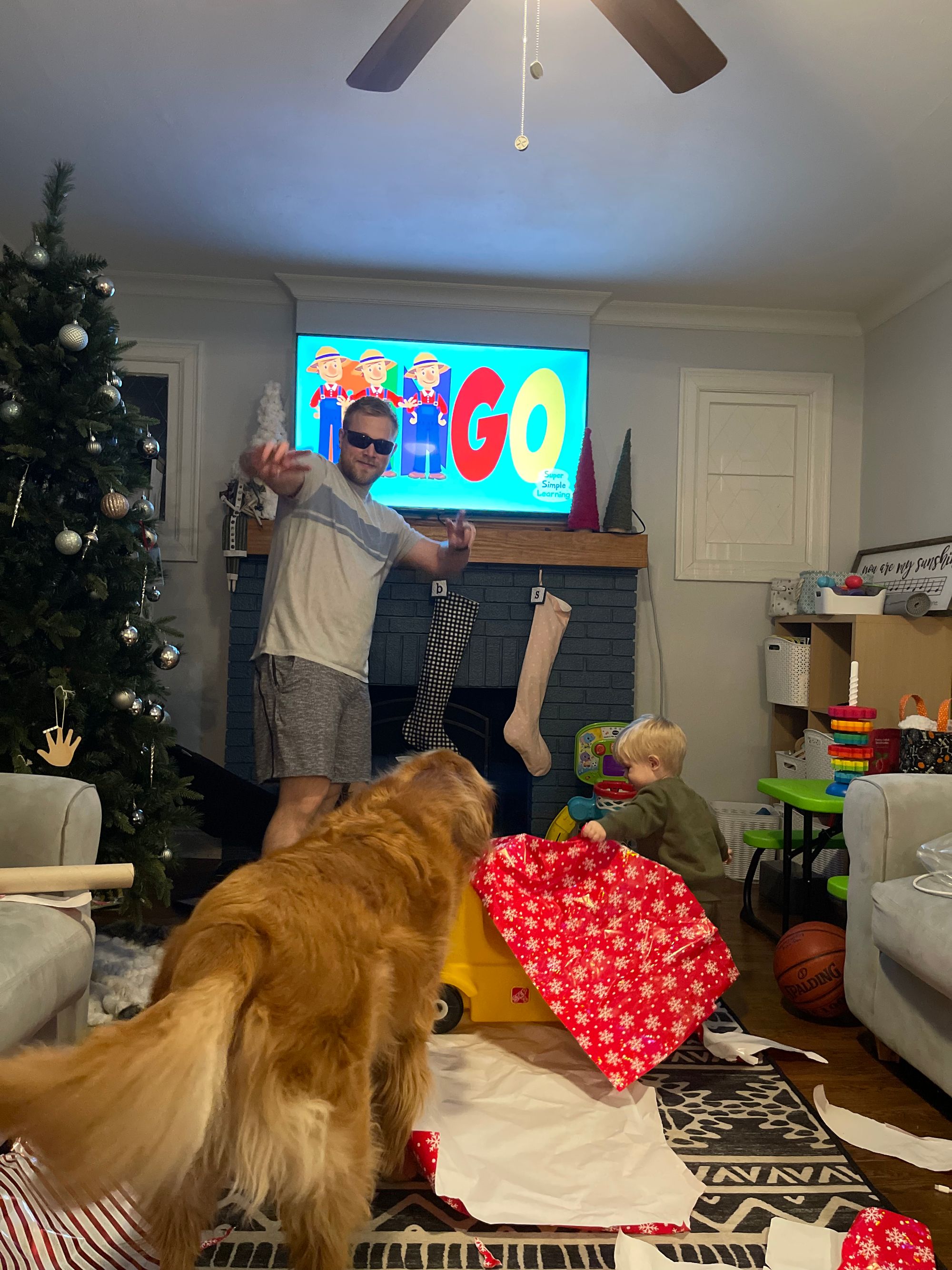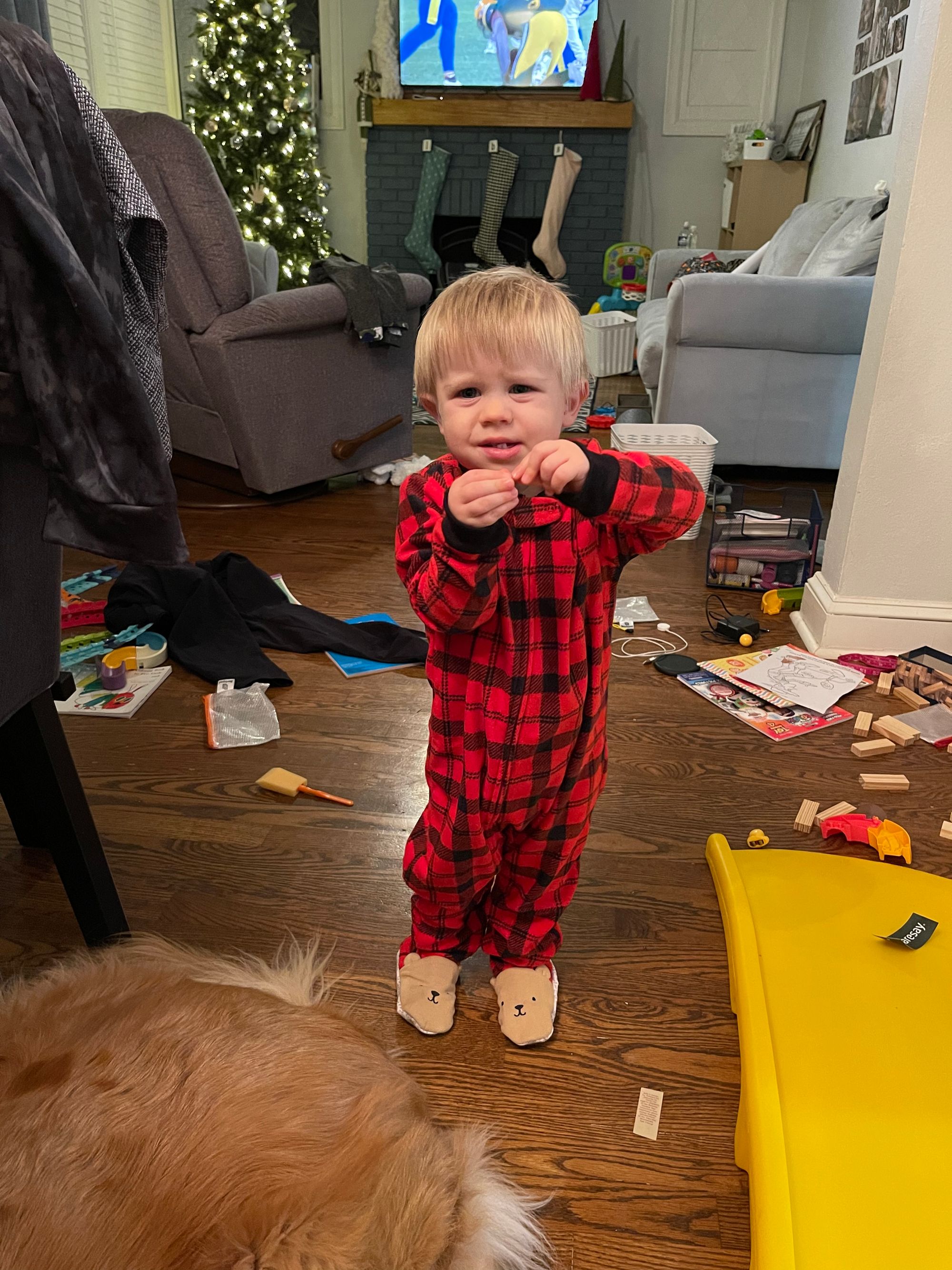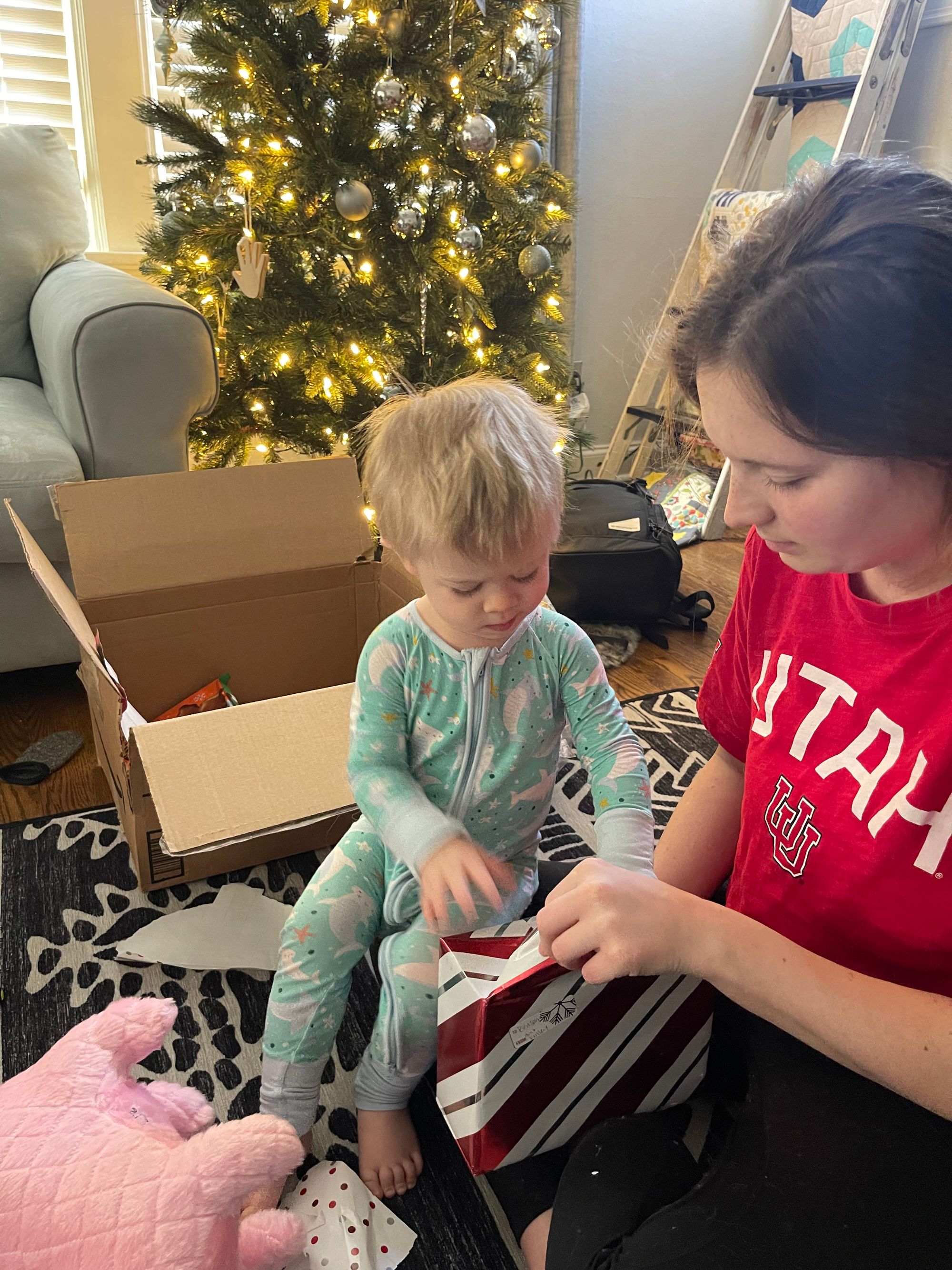 Teething has been rough lately and we started the day at 5 am. Benson has discovered how to unwrap presents so we let him unwrap and open anything he wanted. Pick your battles. ;)