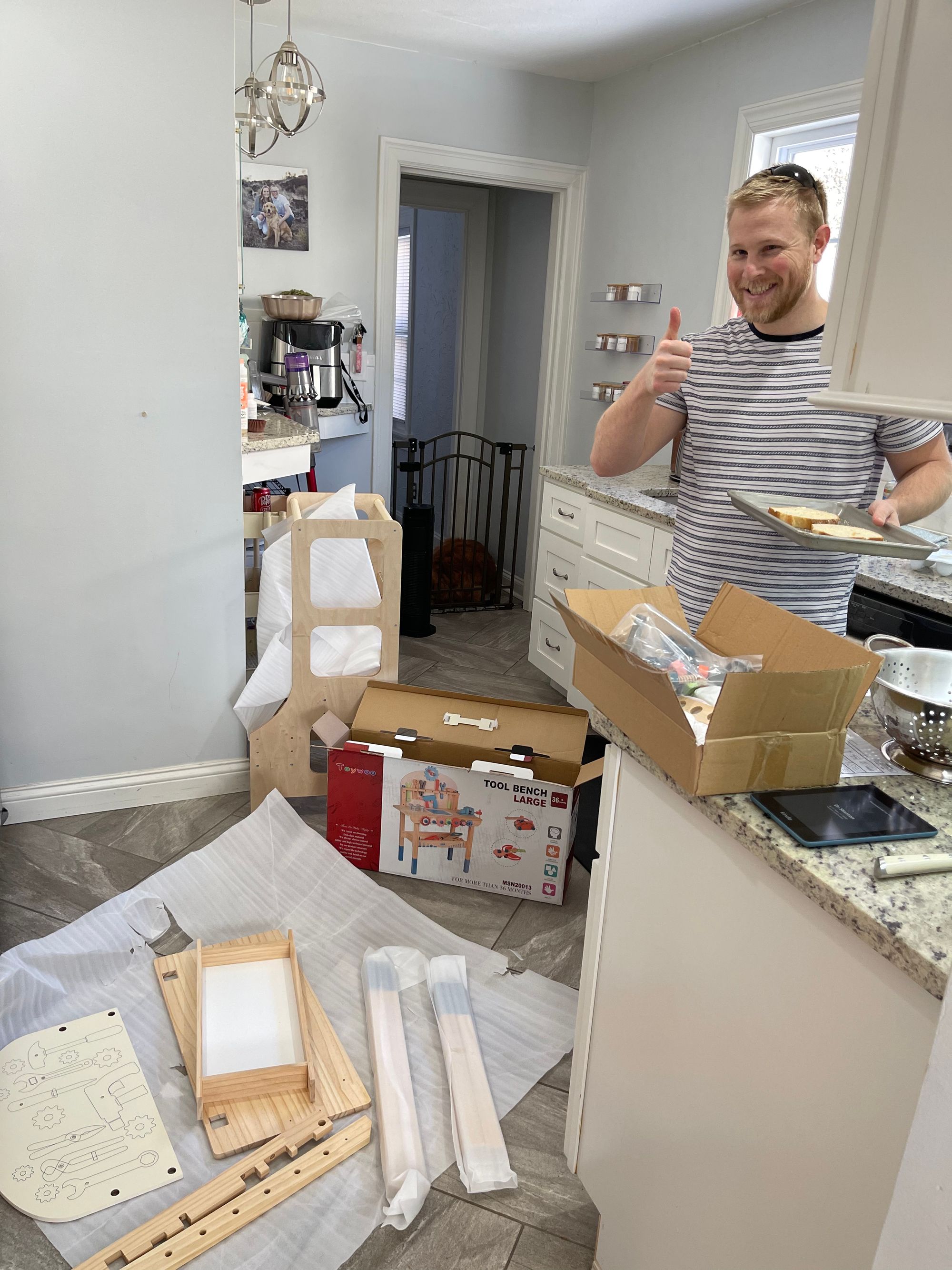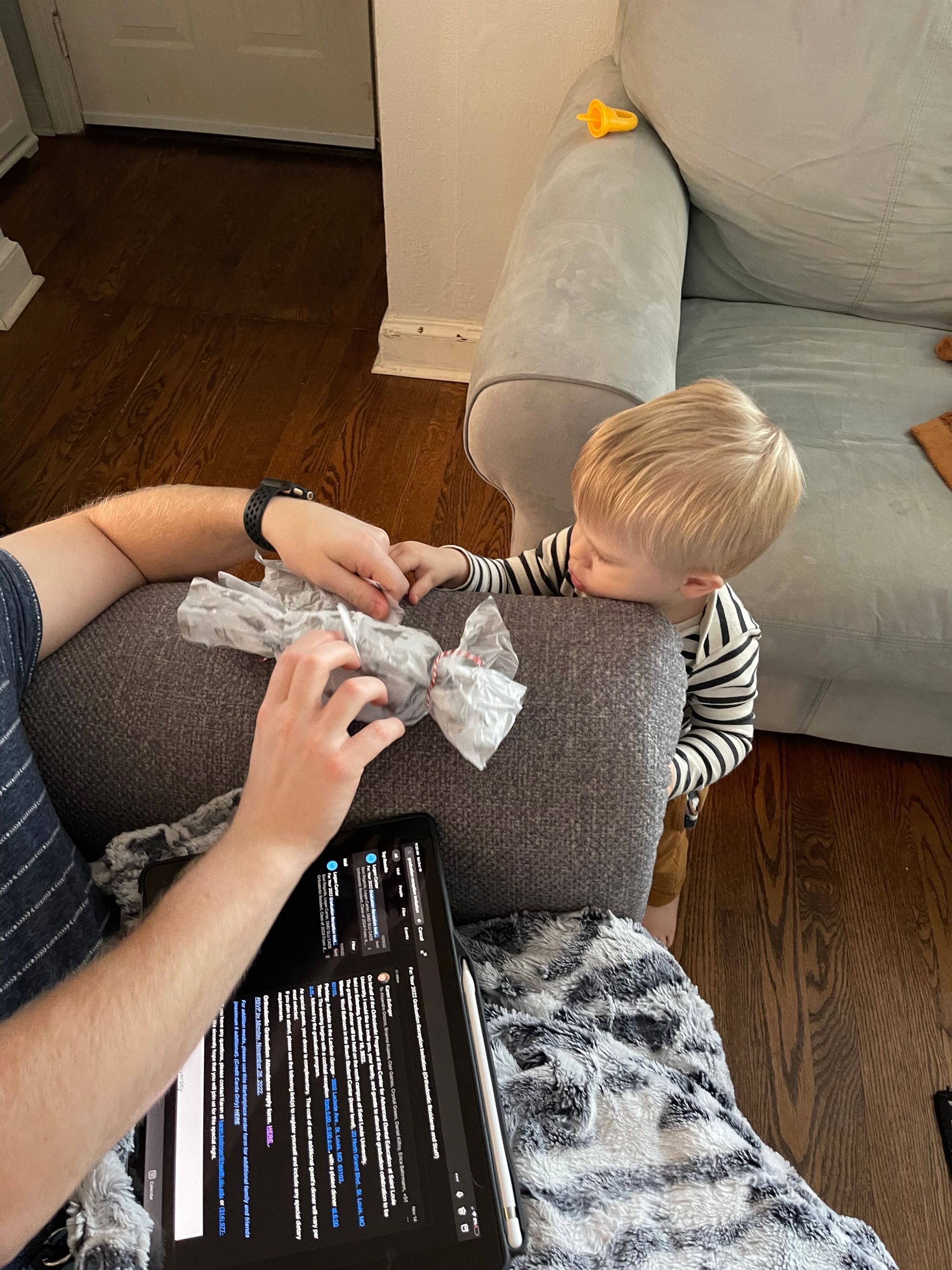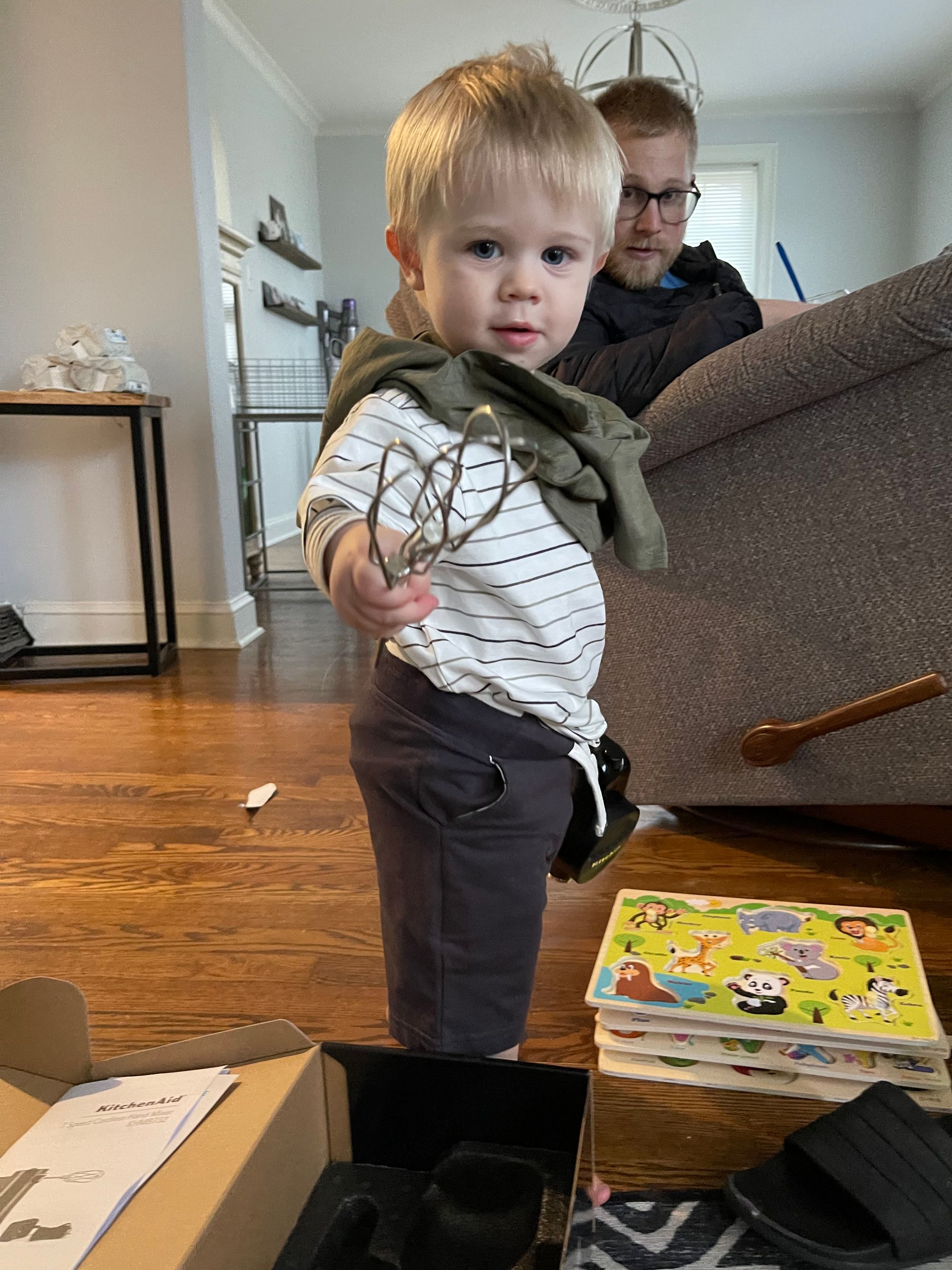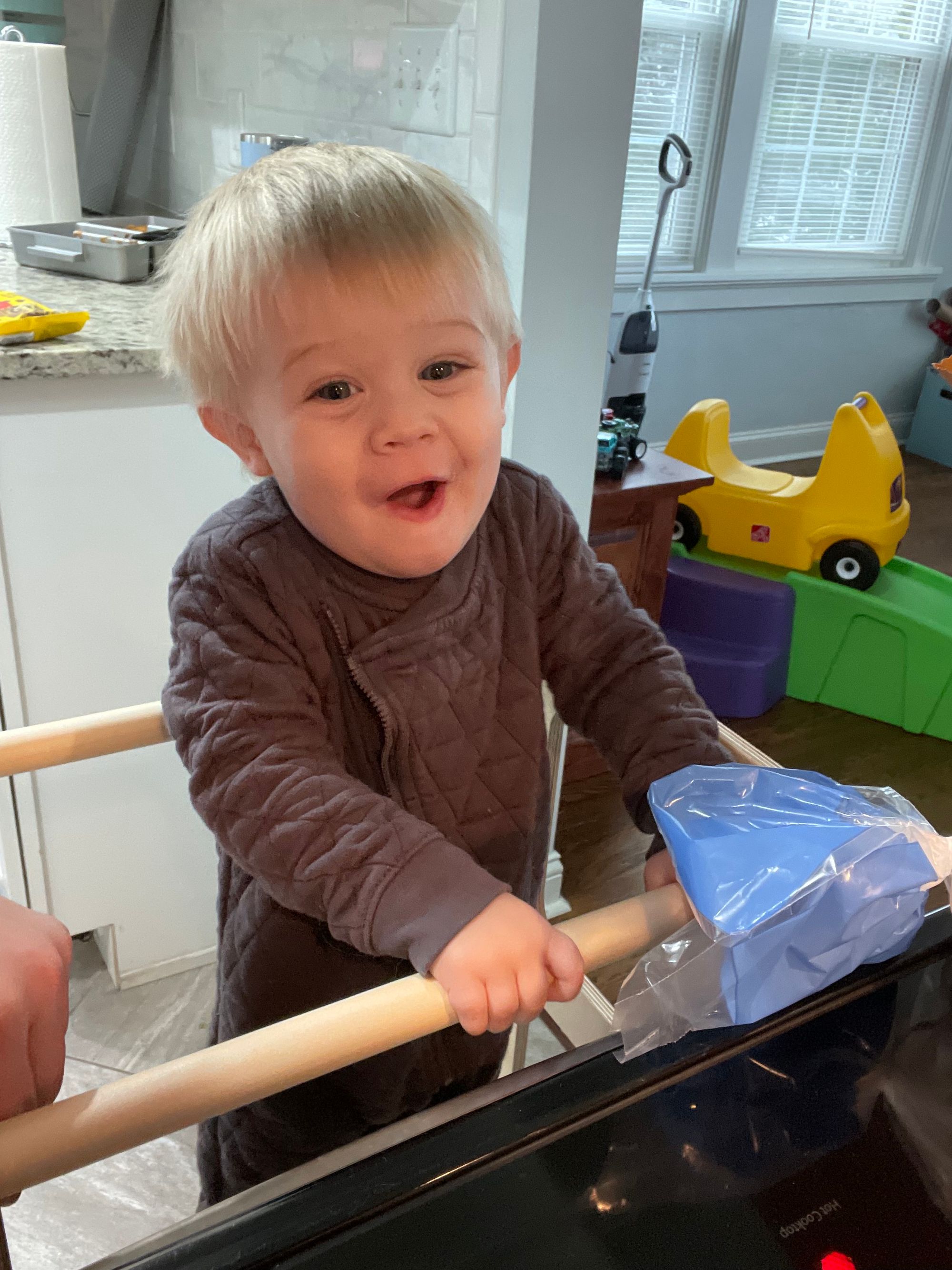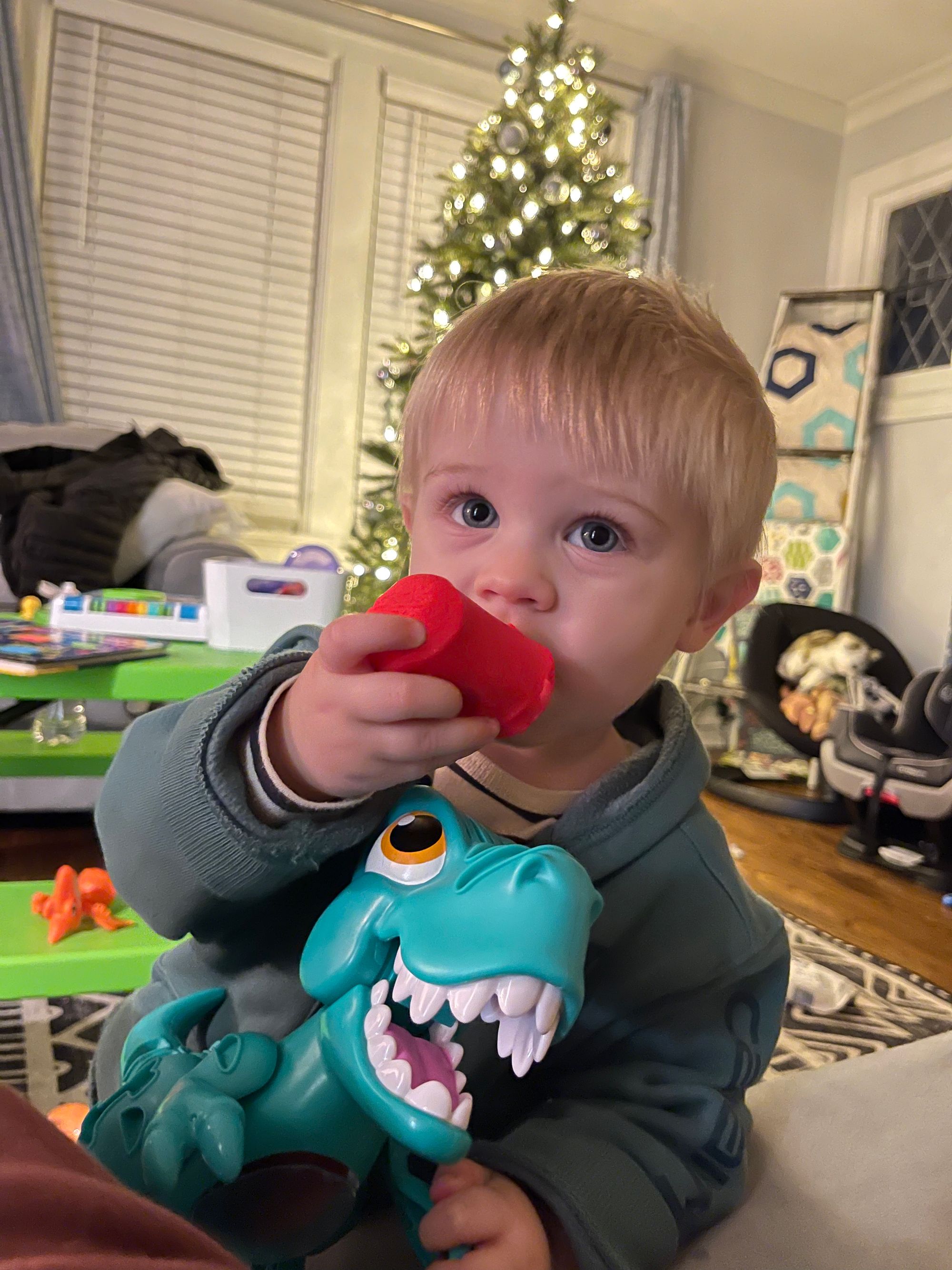 Teething has been rough lately and we started the day at 5 am. Benson has discovered how to unwrap presents so we let him unwrap and open anything he wanted. Pick your battles. ;)