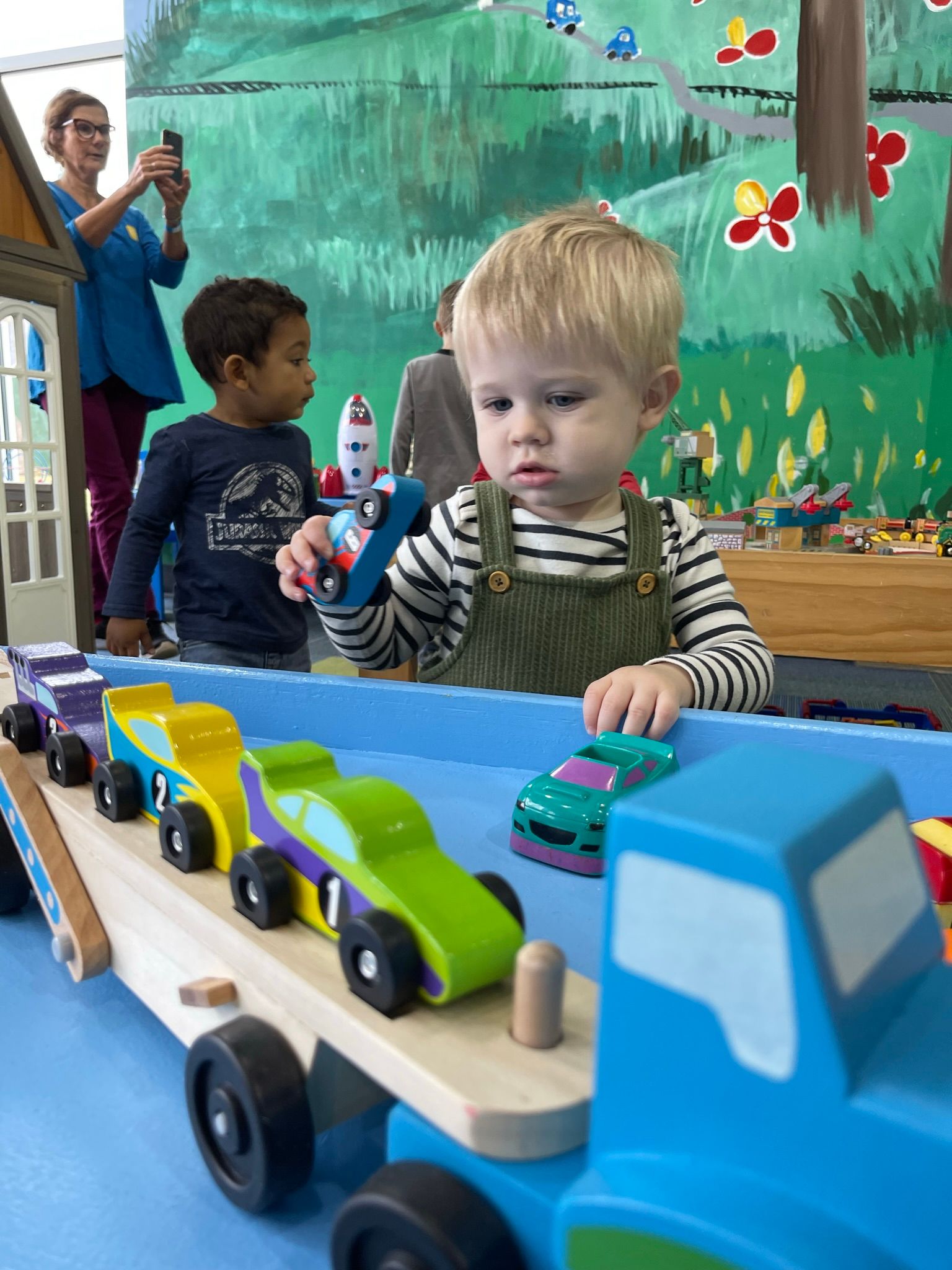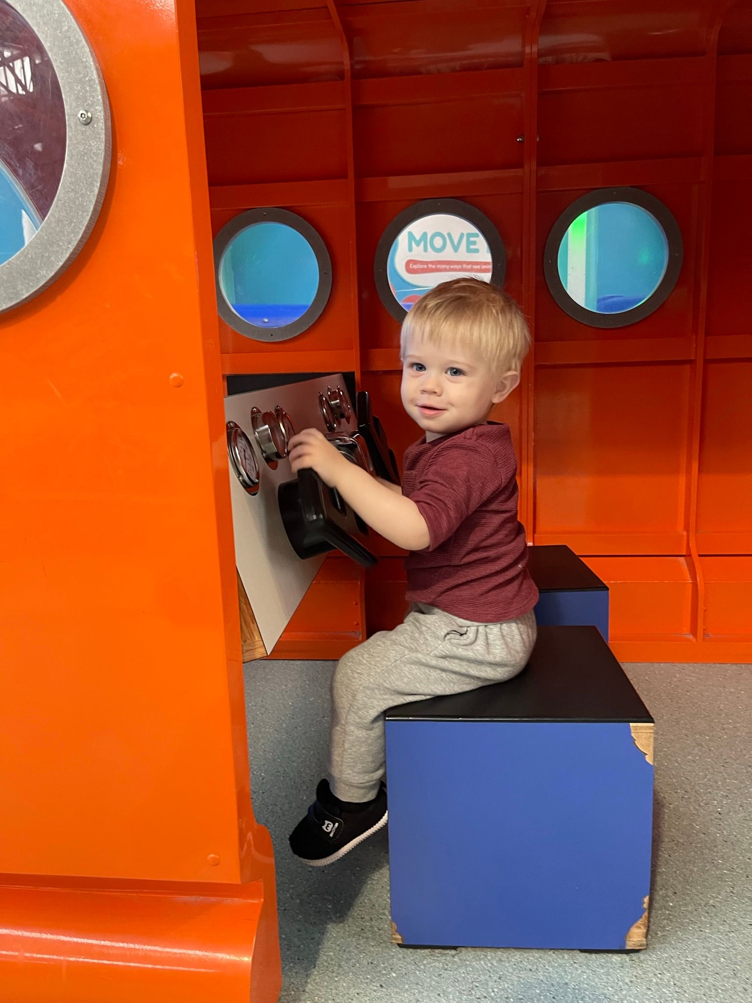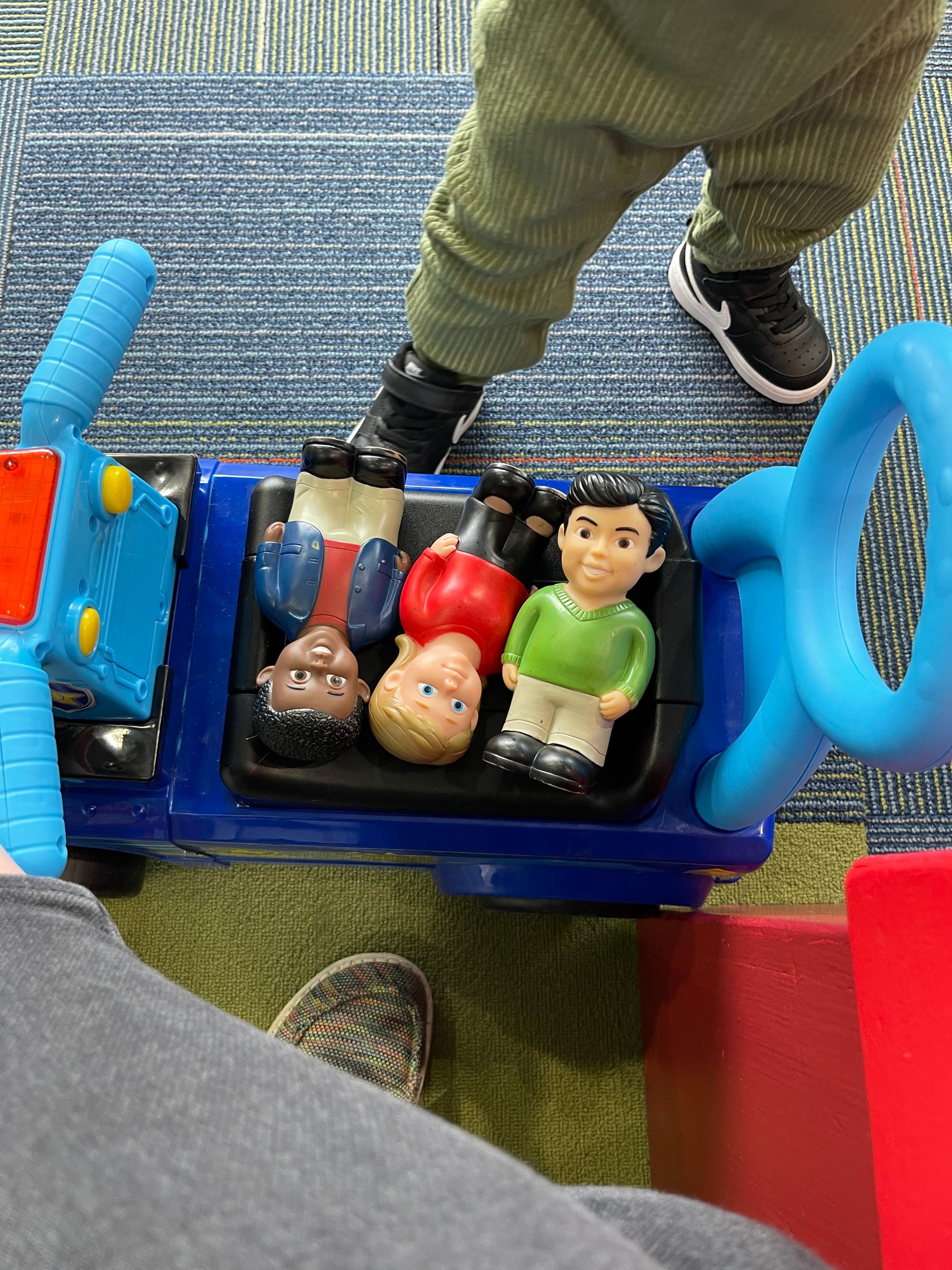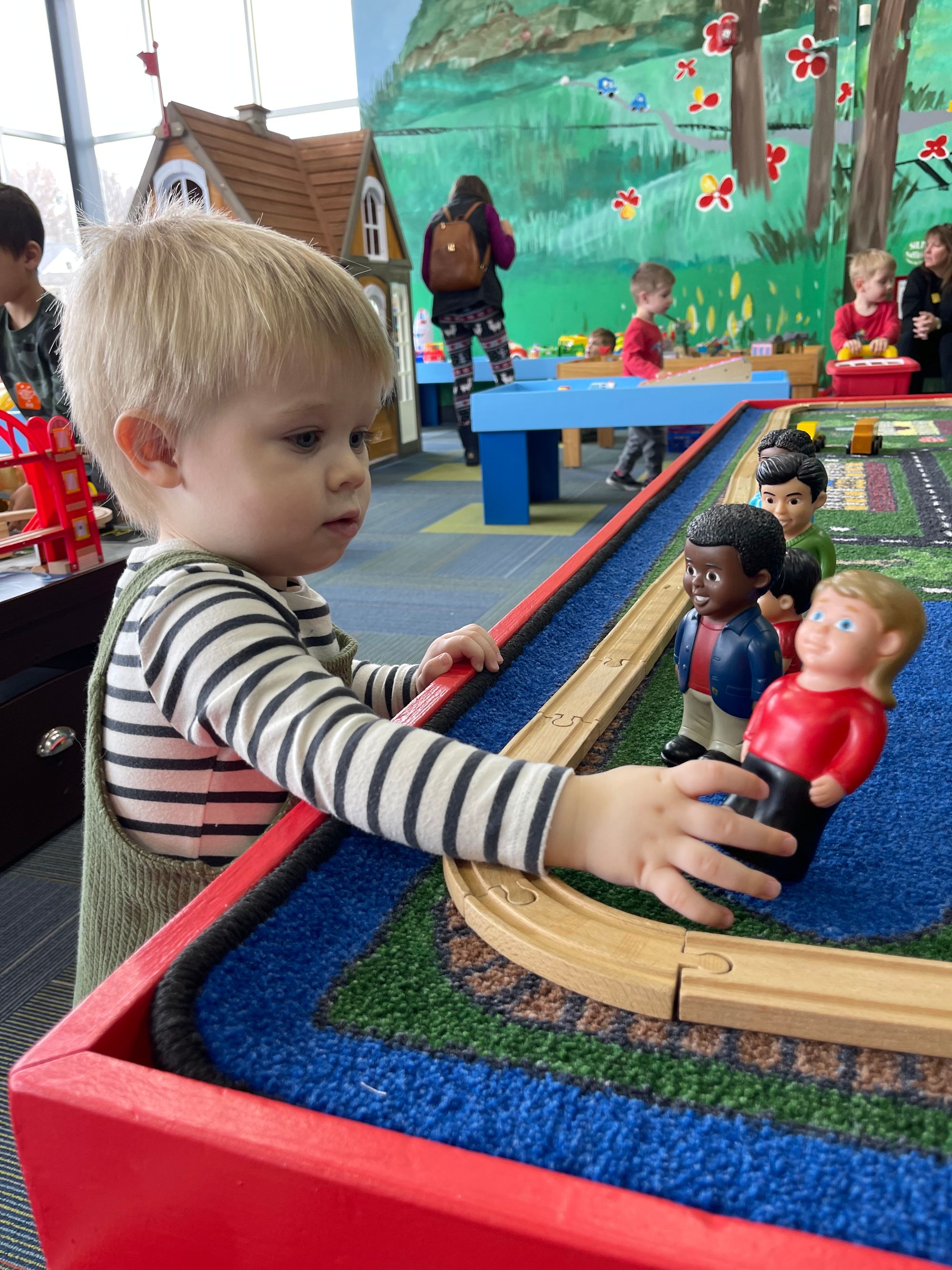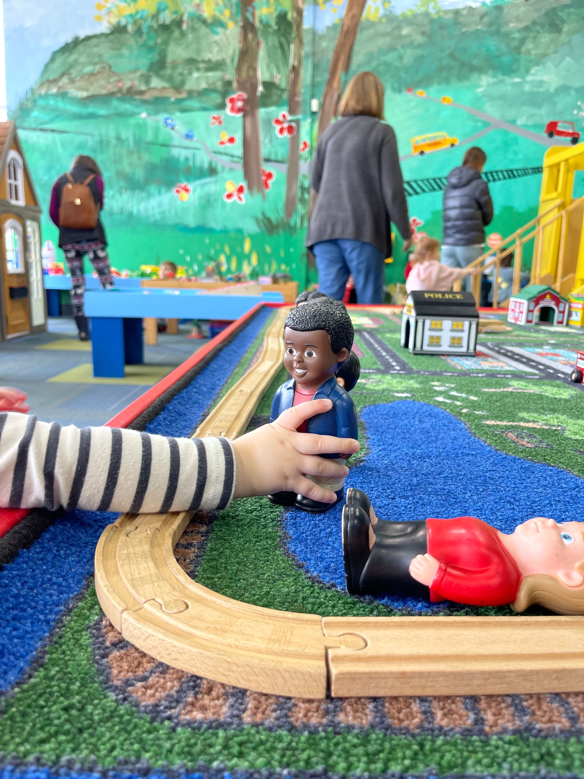 Another day out on the town! We met our neighbor Anne, and her grandson Noshad at the Department of Transportation Museum. They offer a kids corner where they can go play for 45 minutes. Benson had a great time and loved these funny little people!