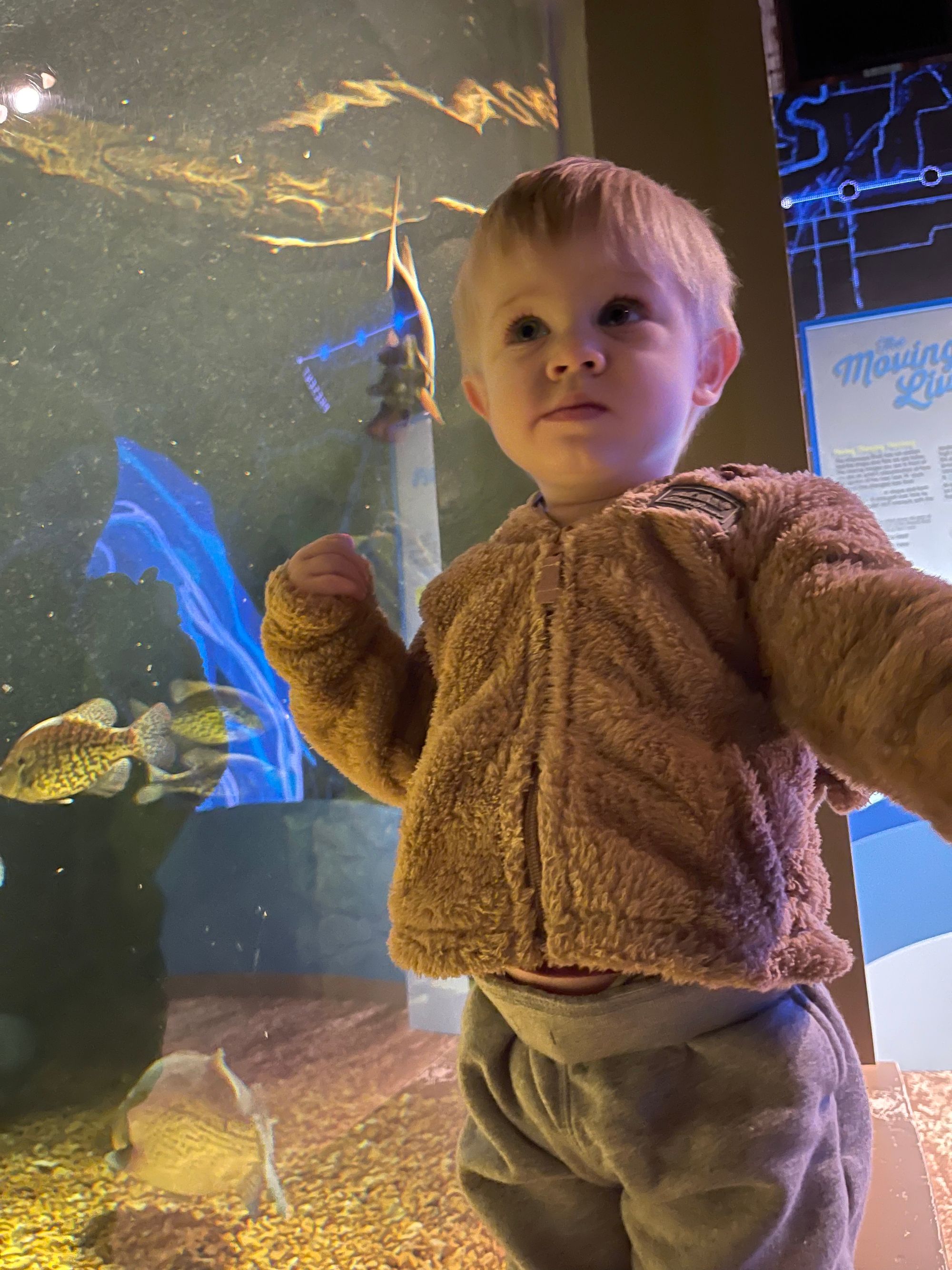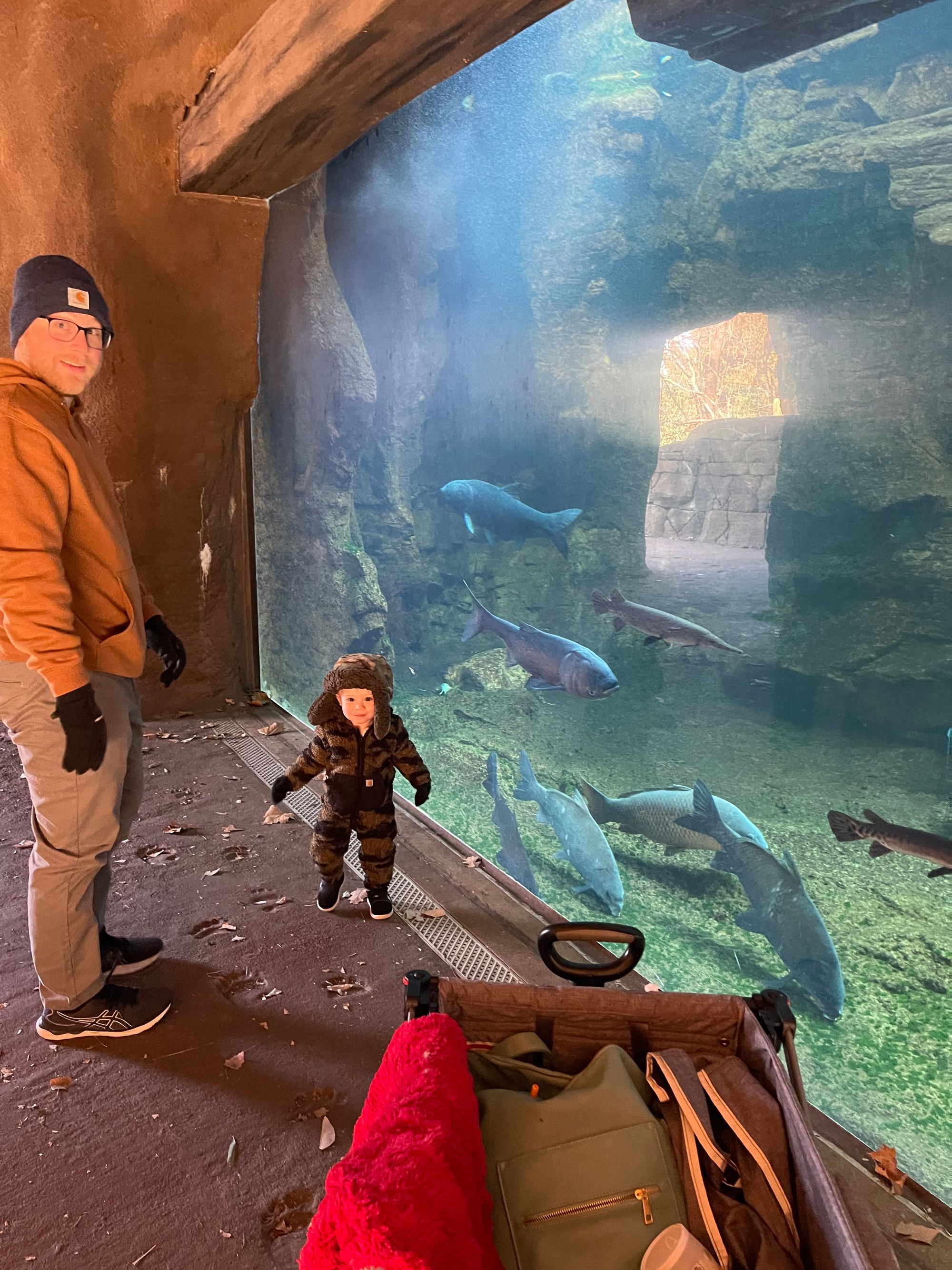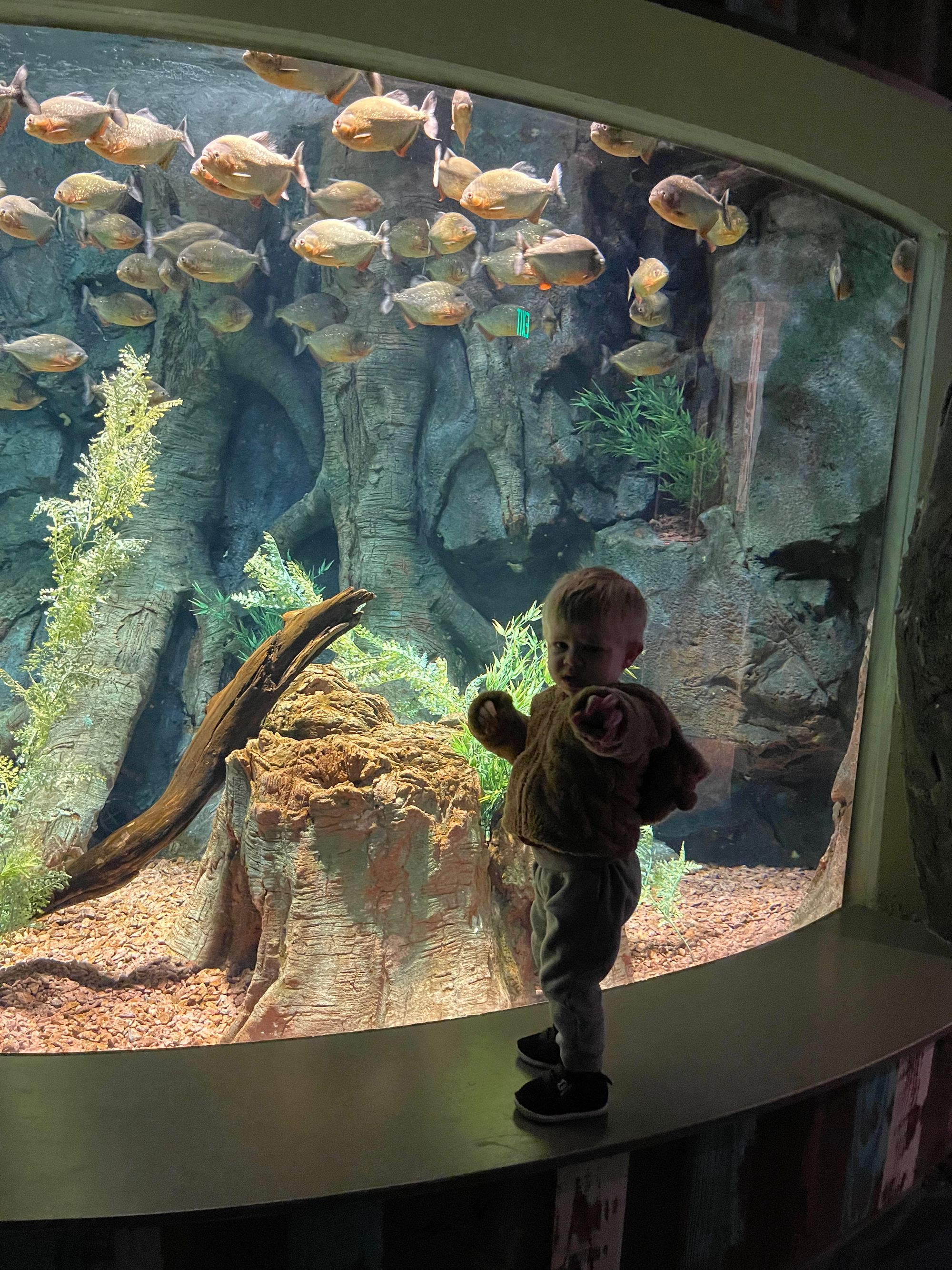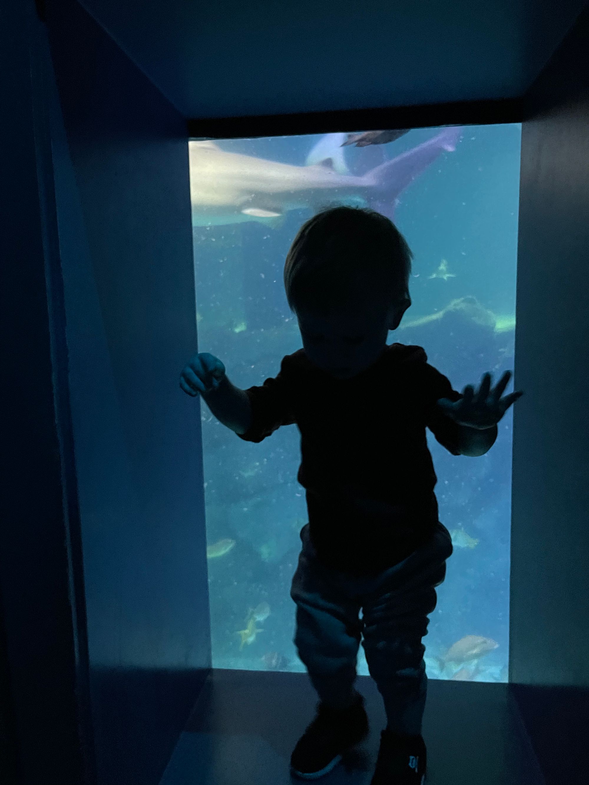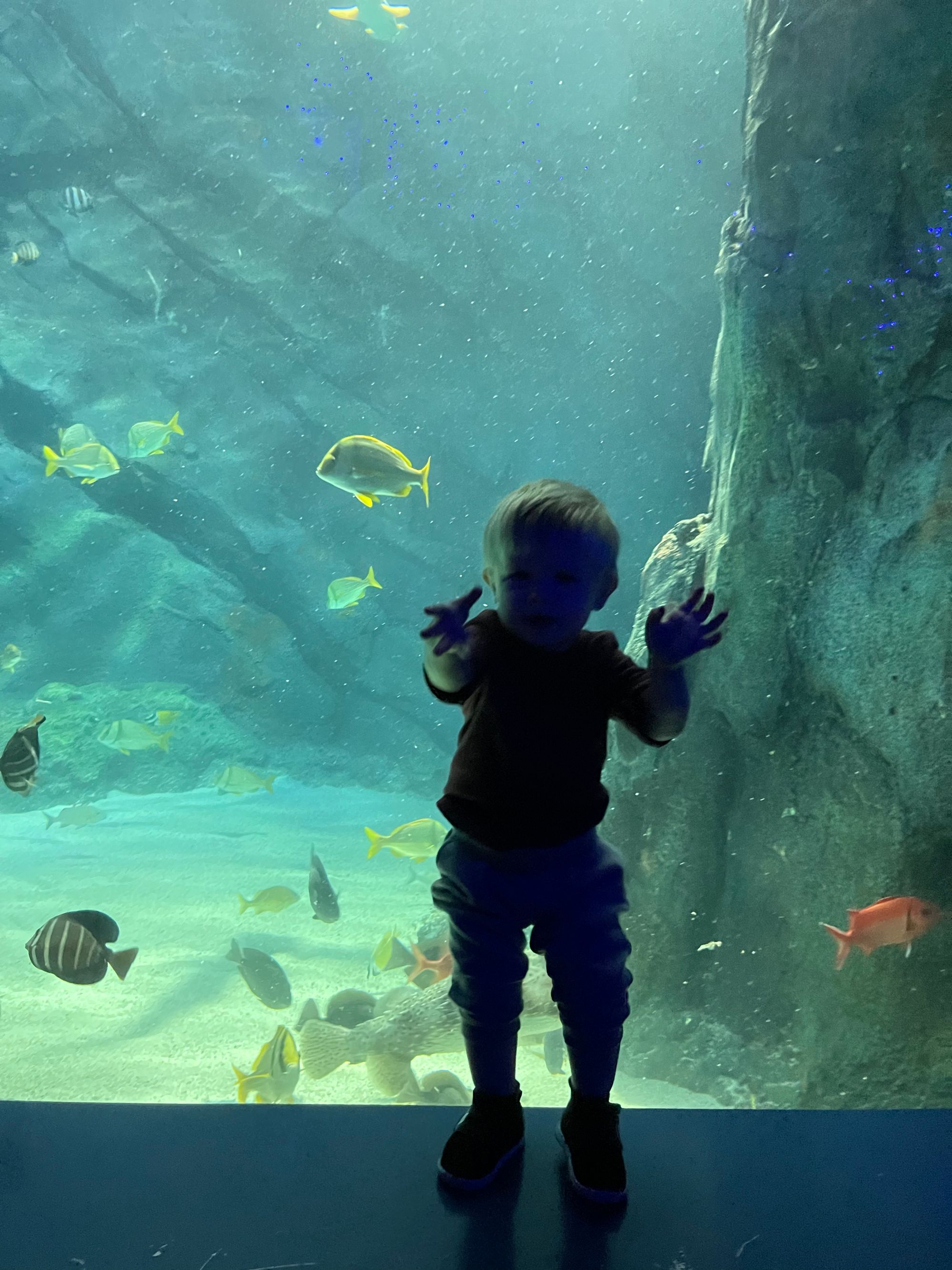 It's no question that motherhood is hard. Some days it's especially hard. I feel super isolated at times - it's really just Logan + I. So, I've been trying to make more efforts to leave the house, and break up the day. Today we went to the aquarium! Benson loved it. It wasn't busy at all, and I didn't feel anxious like I was worried I would.