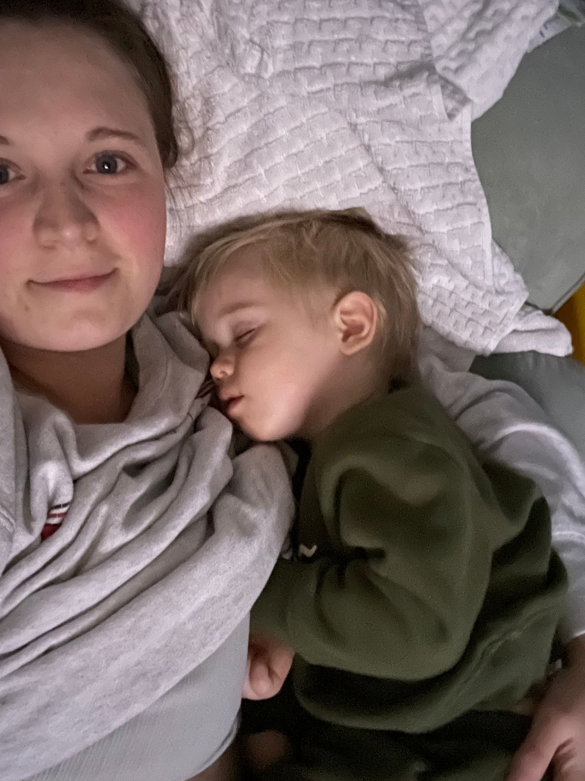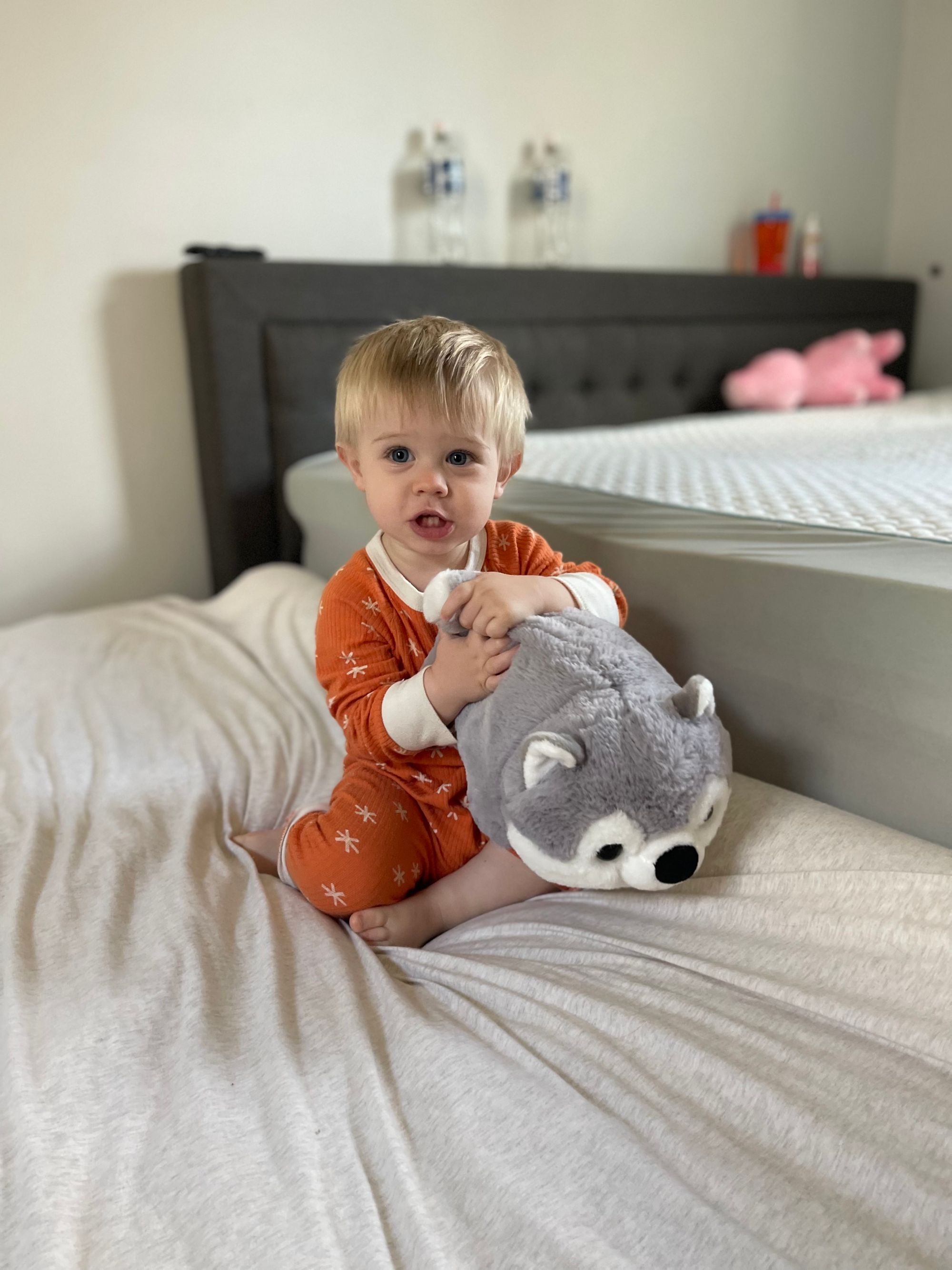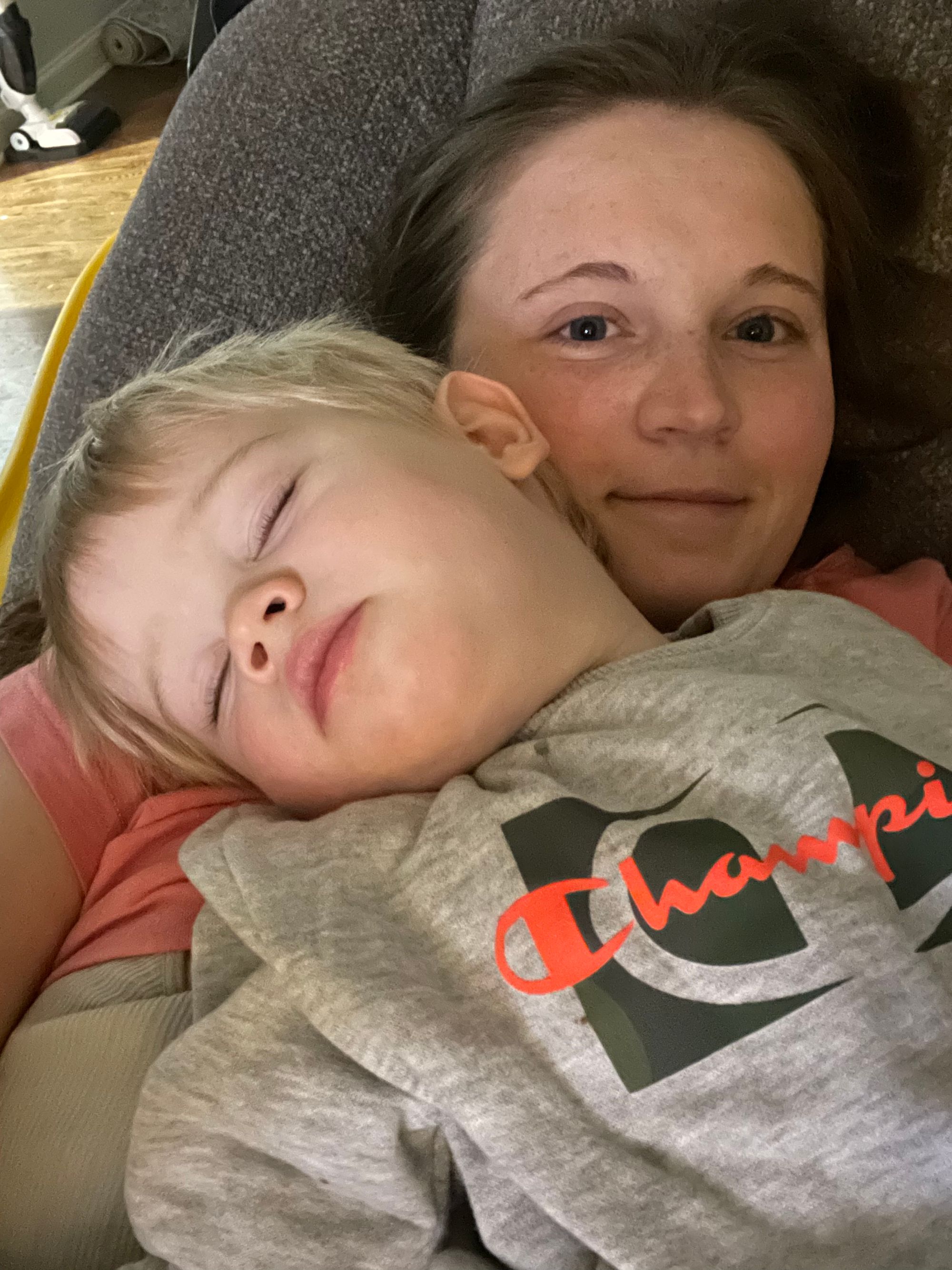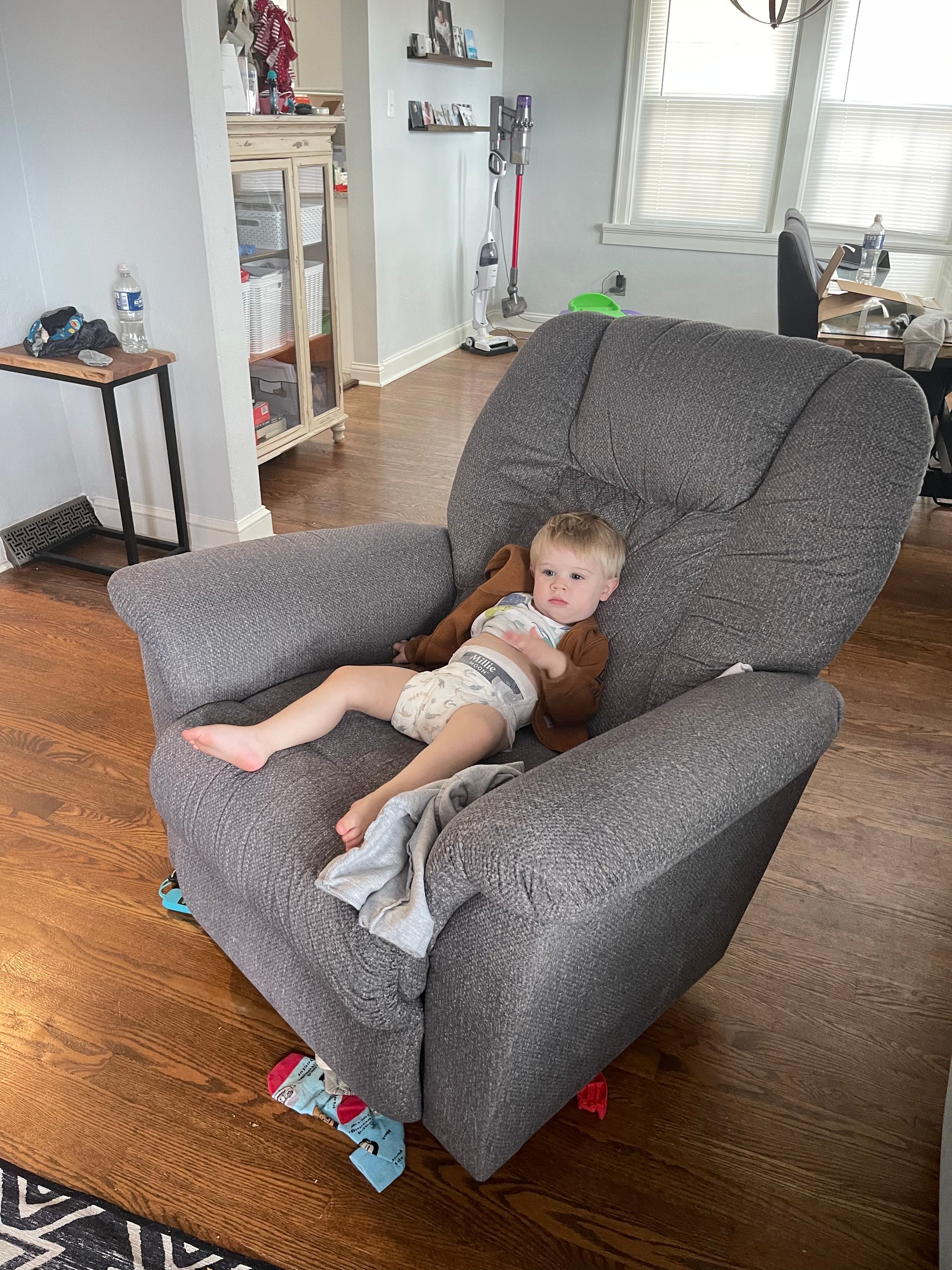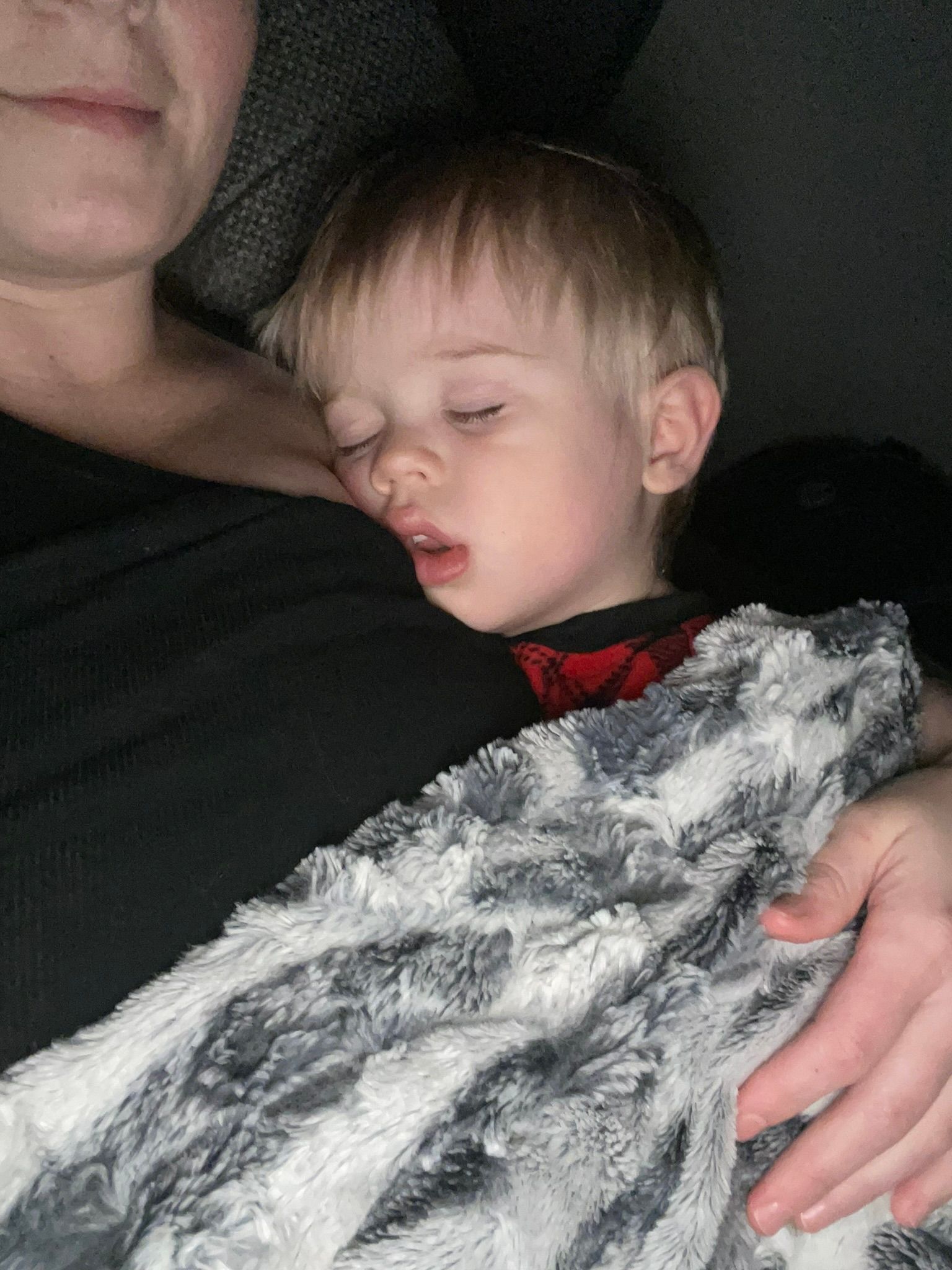 A long nap, and a little longer nap with snuggles from mom and dad. He woke up jazzed!