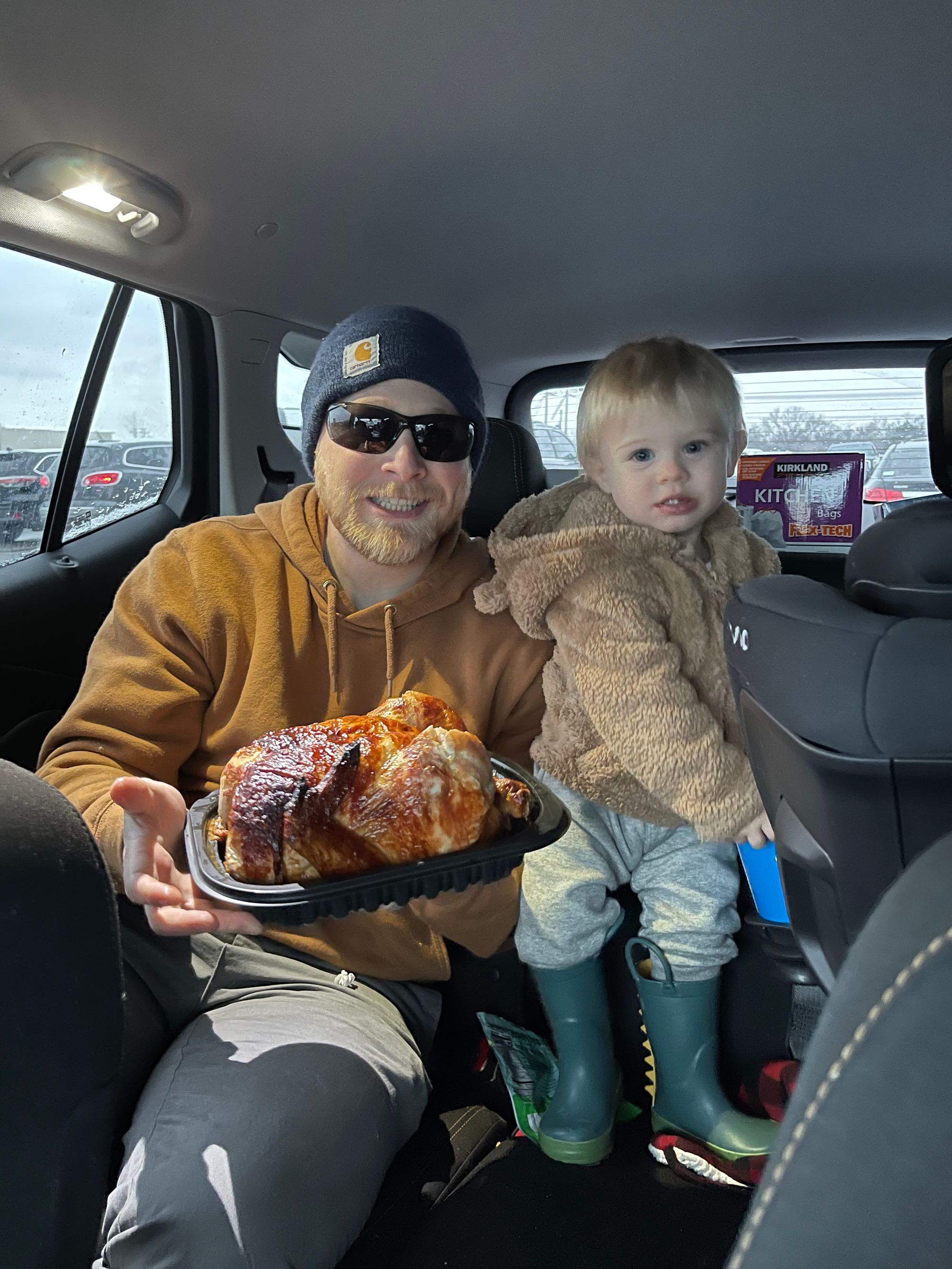 The day after Christmas we relaxed, and went to Costco! Logan got a rotisserie chicken and Benson demanded to eat it as soon as we got in the car. So that's what they did!
