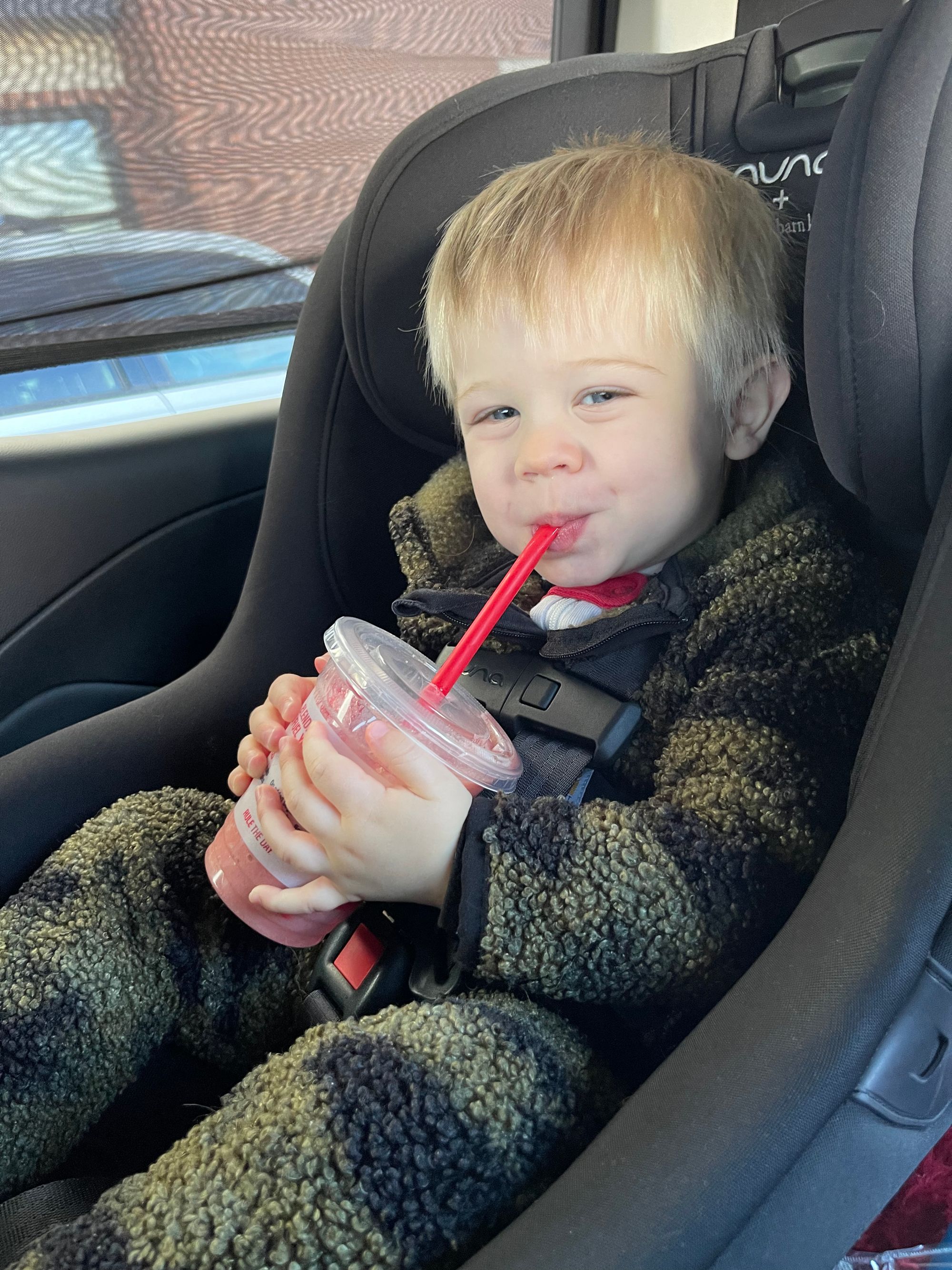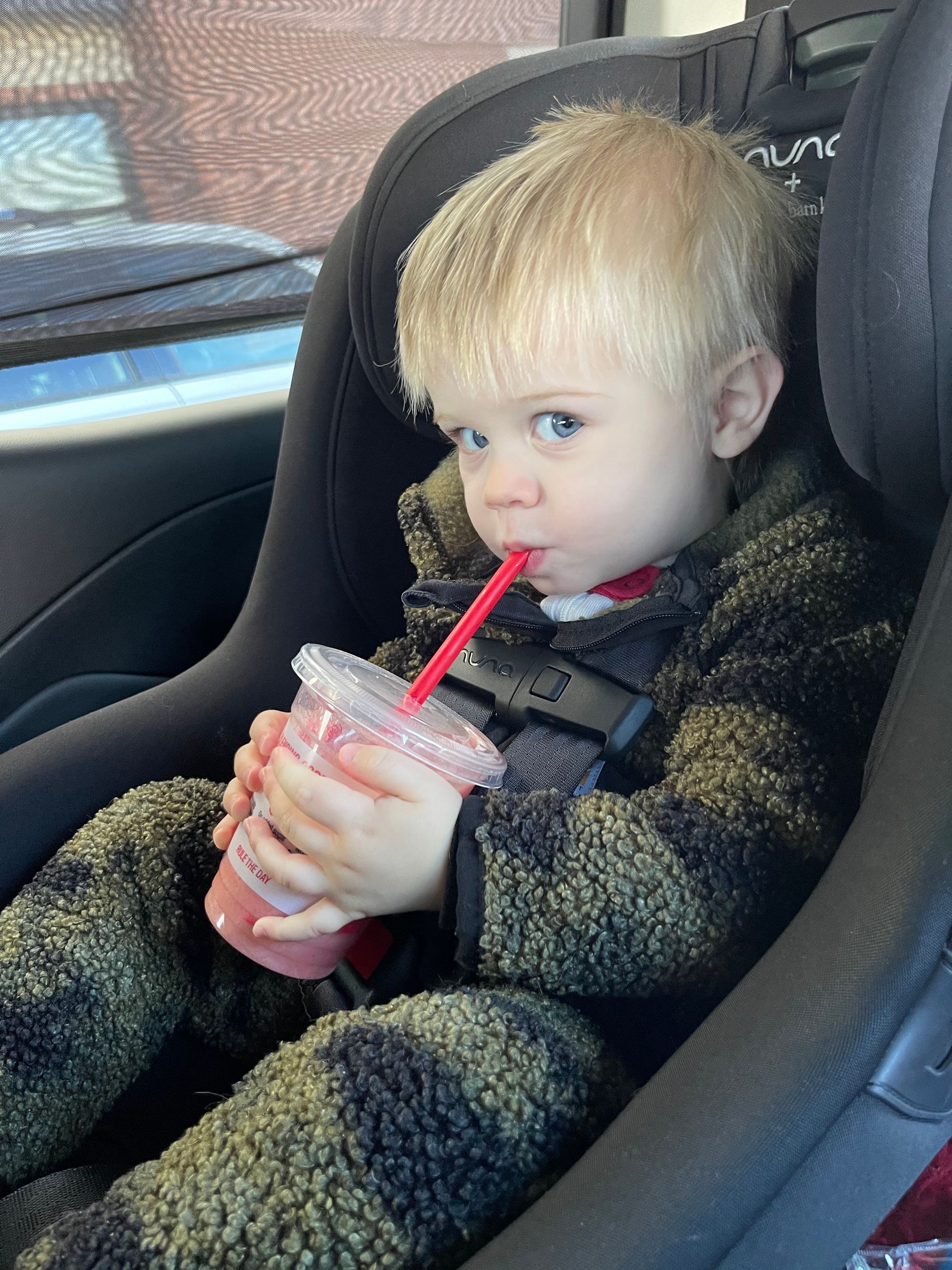 Teething man. Story of our lives! We decided to go get smoothies for breakfast and Benny was a fan!