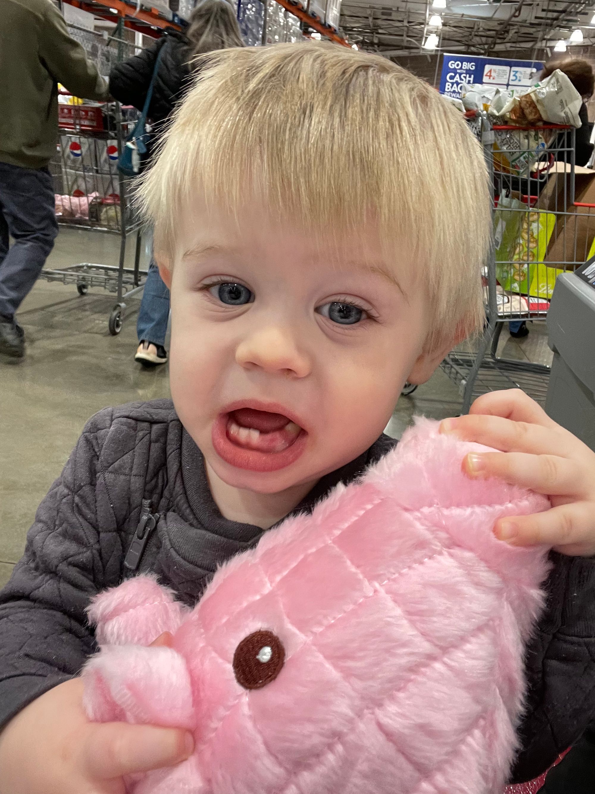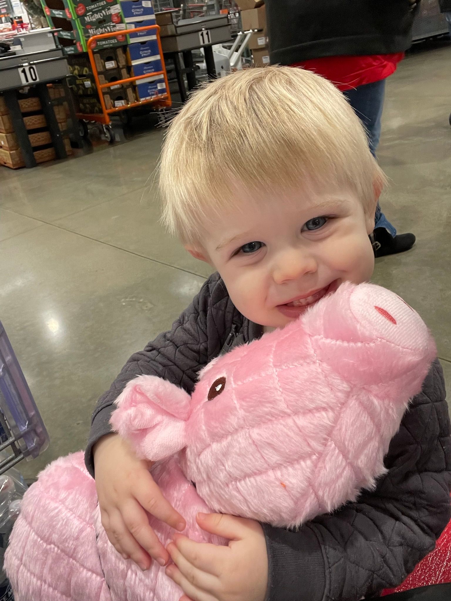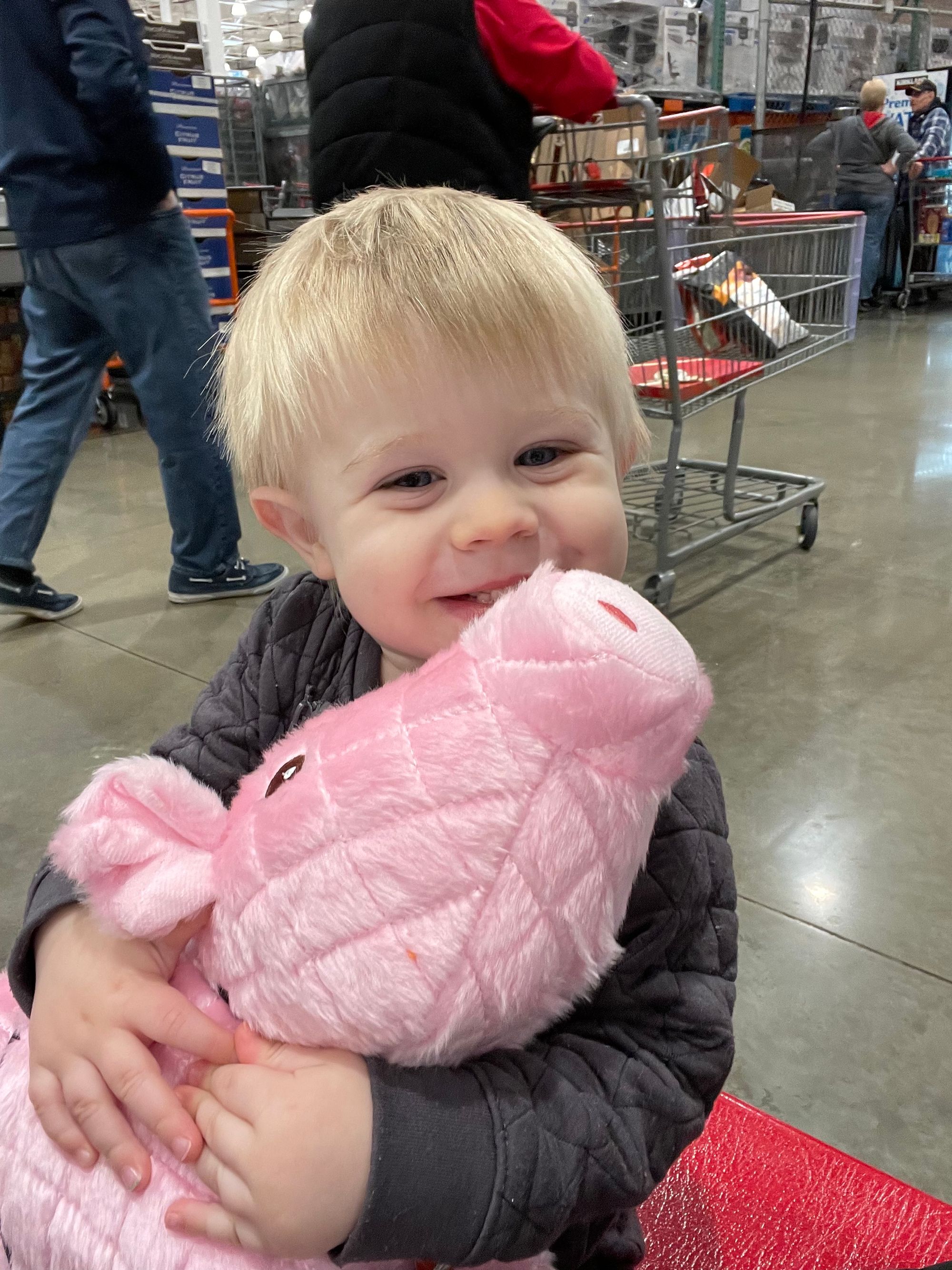 Benson and I woke up Monday morning and took off to Costco. As we were going to check out he spotted some dog toys and decided he could not live without this pig. Meet Wilbur.
