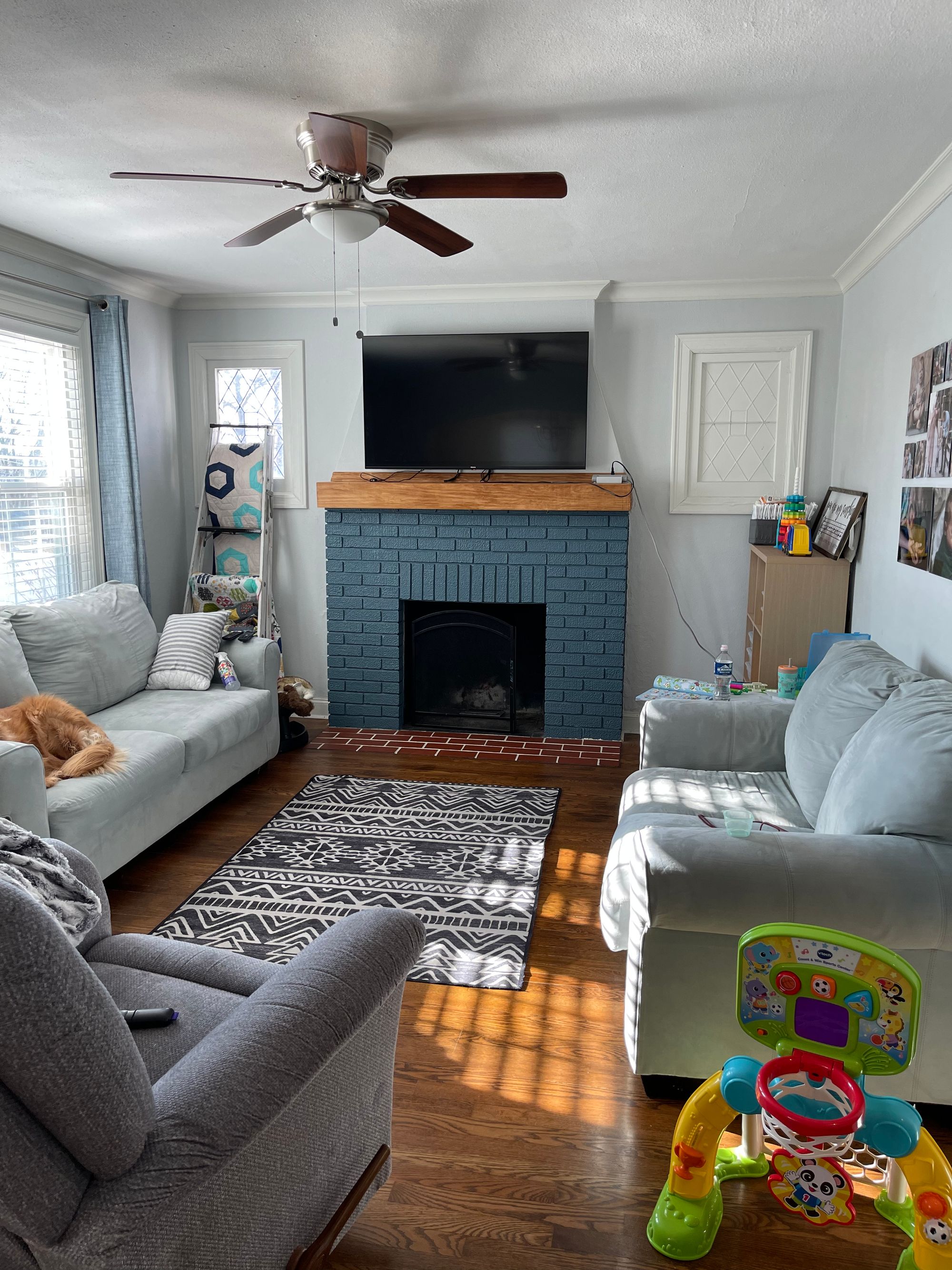 Long story short - this guy came to do the railing, and it was quite the mess. Spray painted railing... Every day Logan would come home I would have more of the story to tell him and we laughed and rolled our eyes! It's in... just don't look to close. ;)