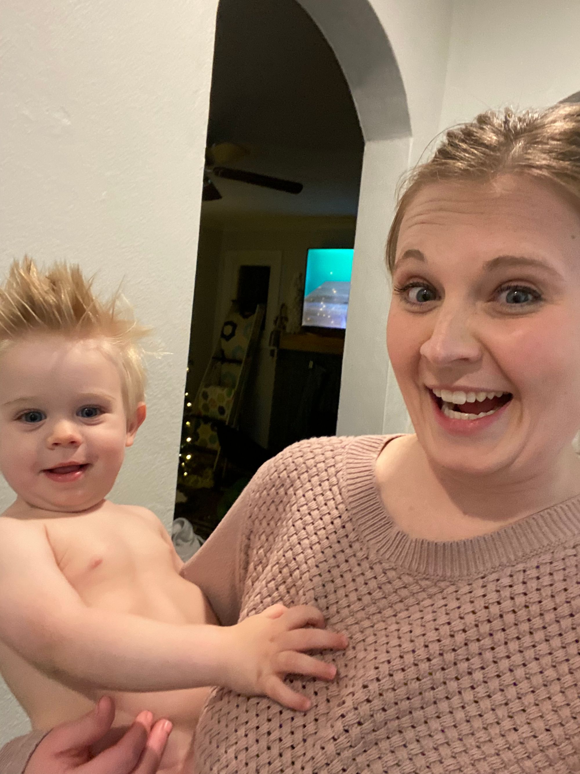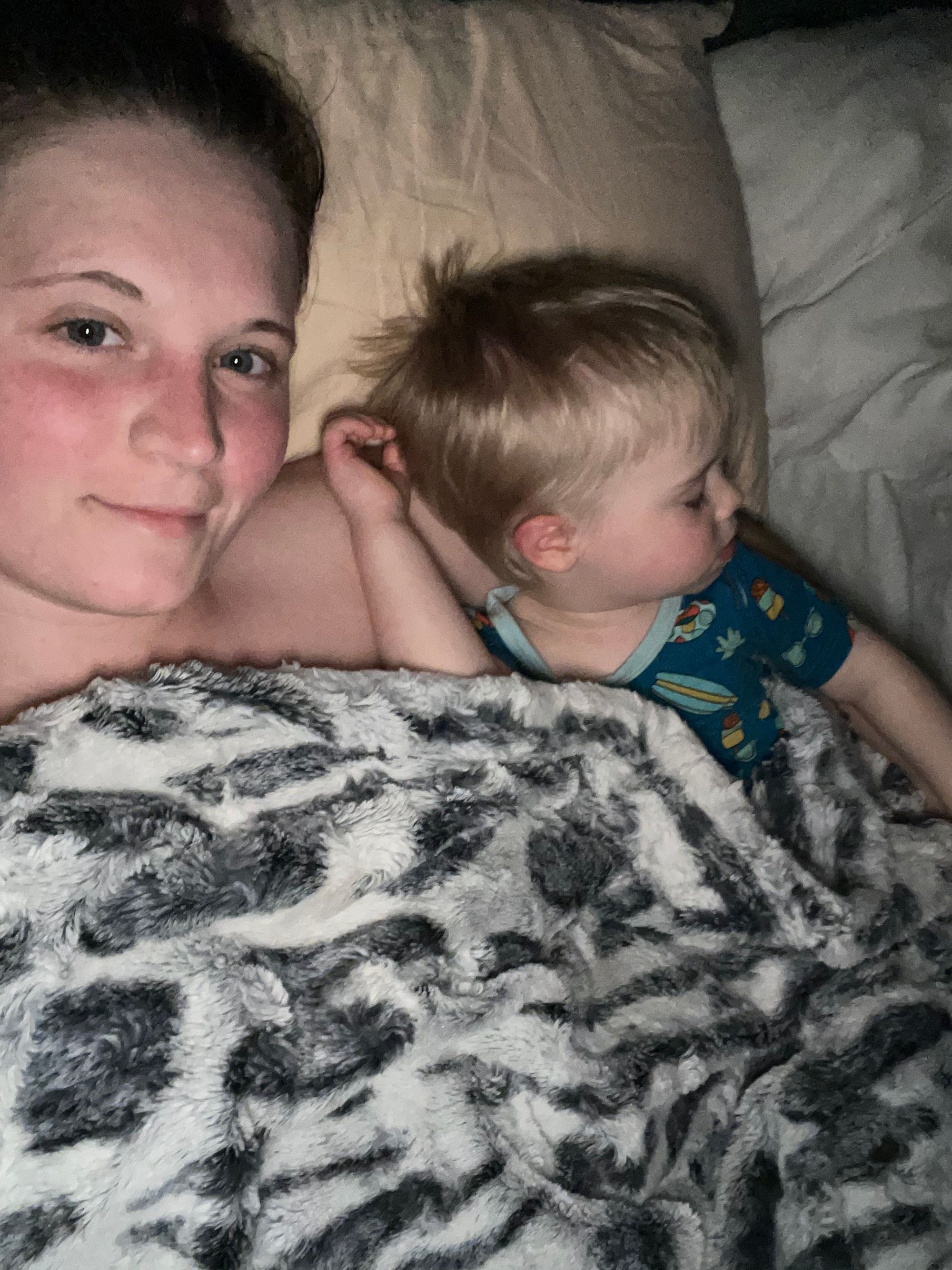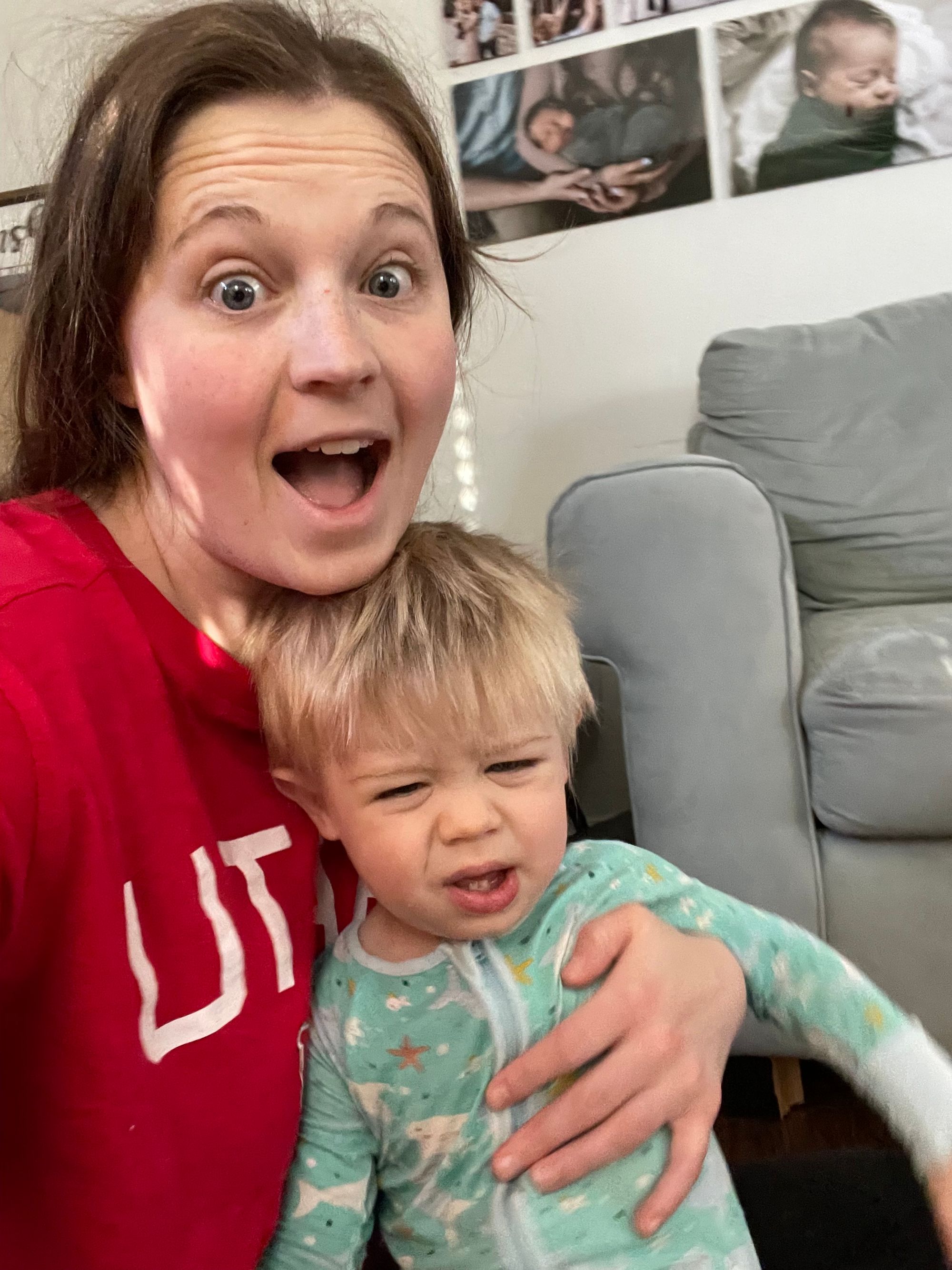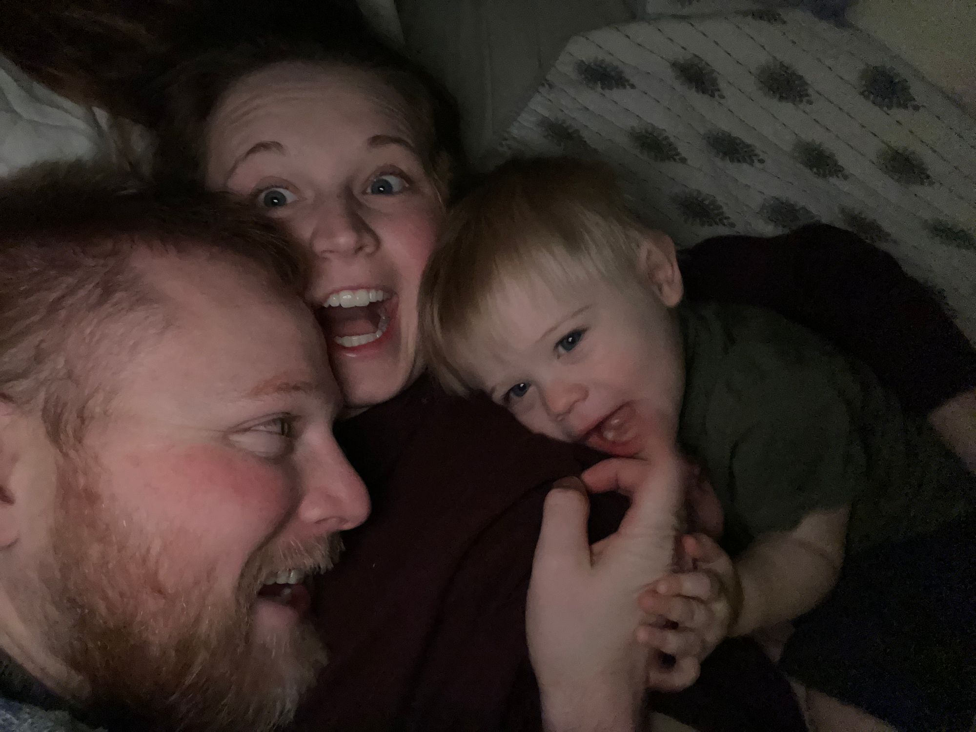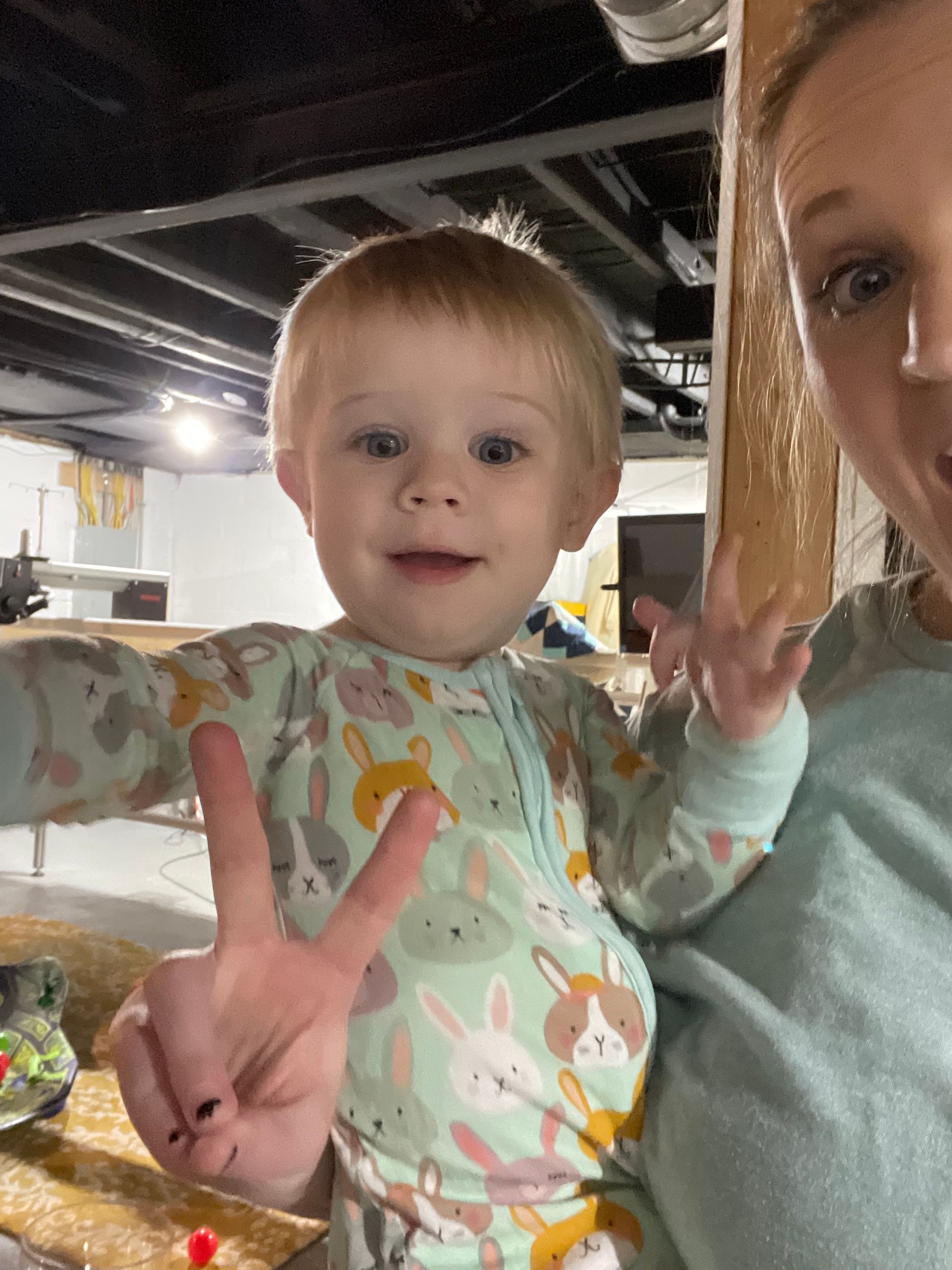 We all went to sleep long before midnight. Logan + I both woke up with fireworks going off like crazy. We both hate them!