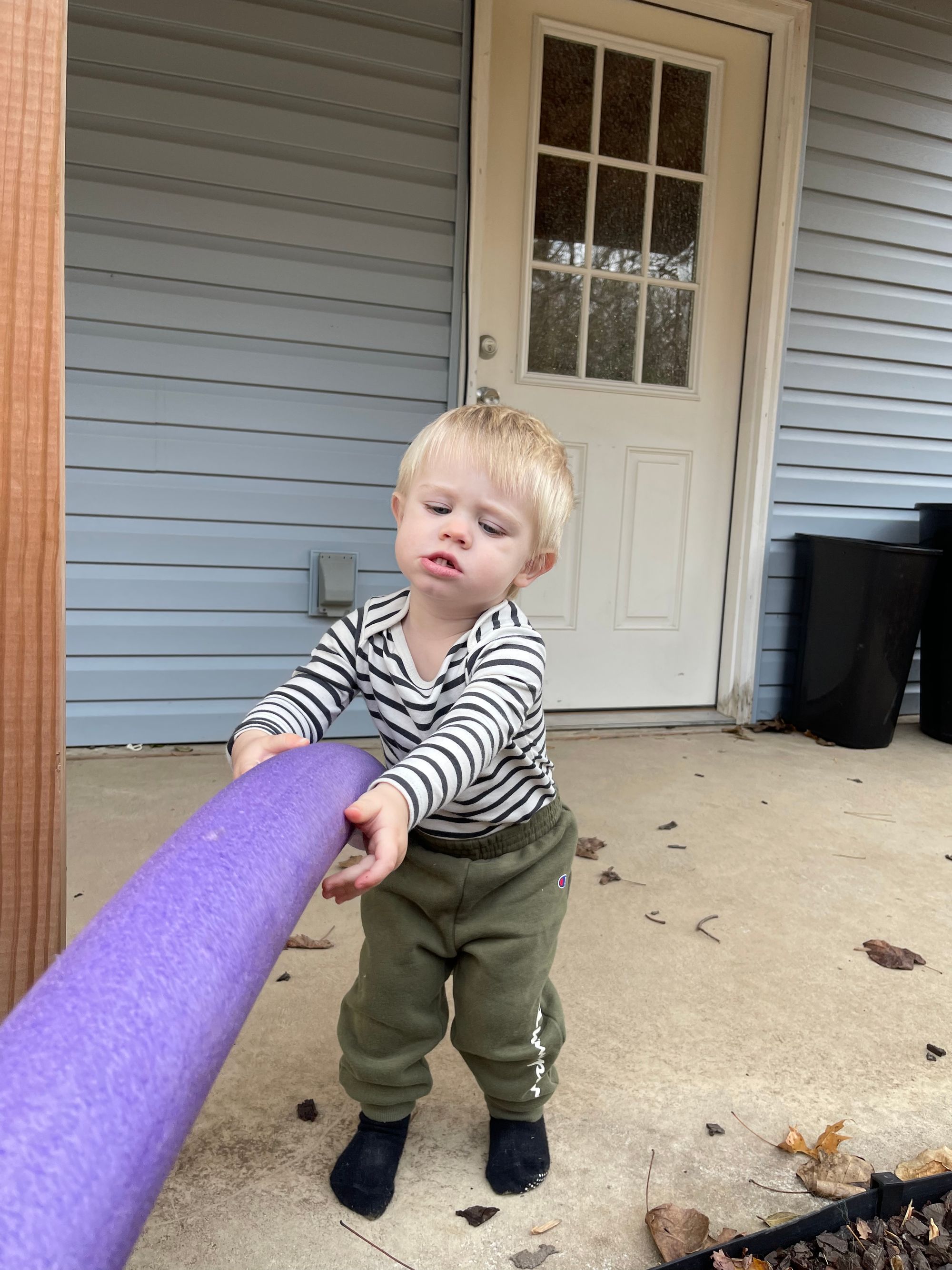 Benson has discovered how much he likes hanging out with Logan and is constantly yelling or looking for "Daddy!".