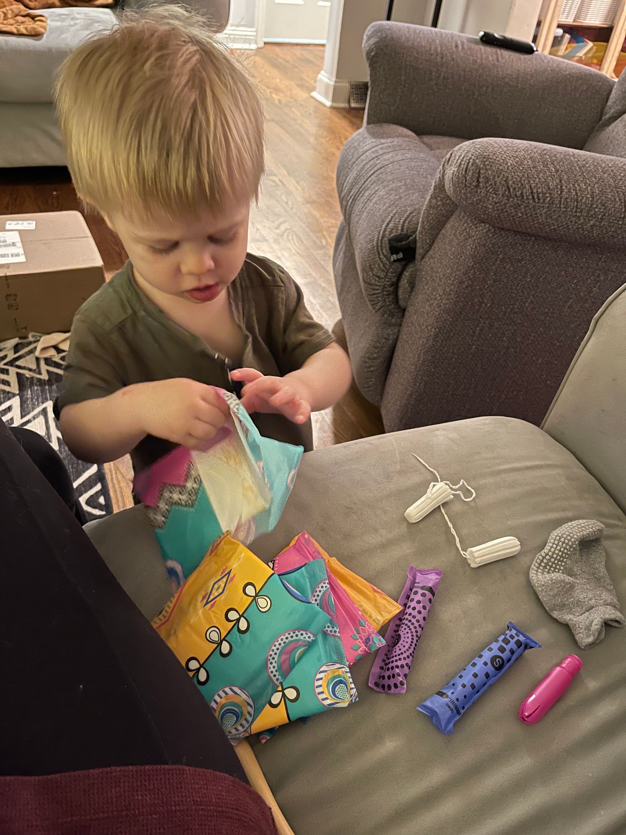 Nothing like unloading some tampons and maxipads. I did something very similar as a child... :)
