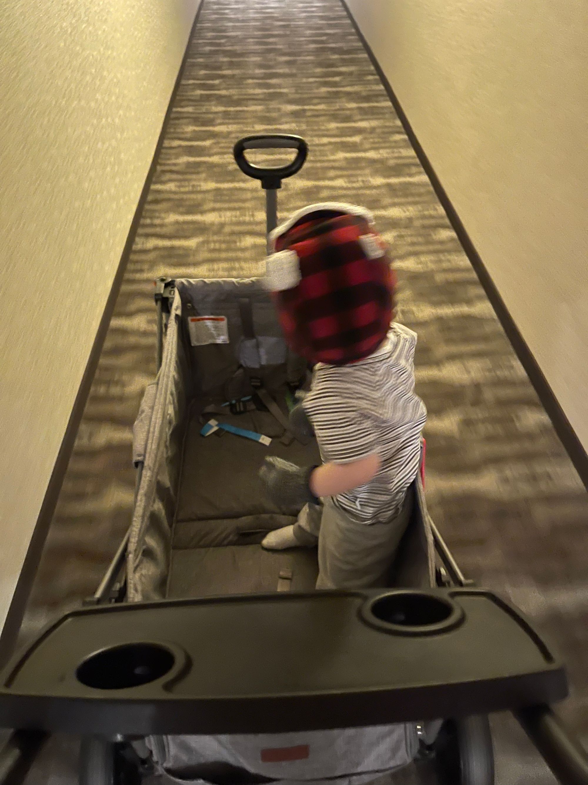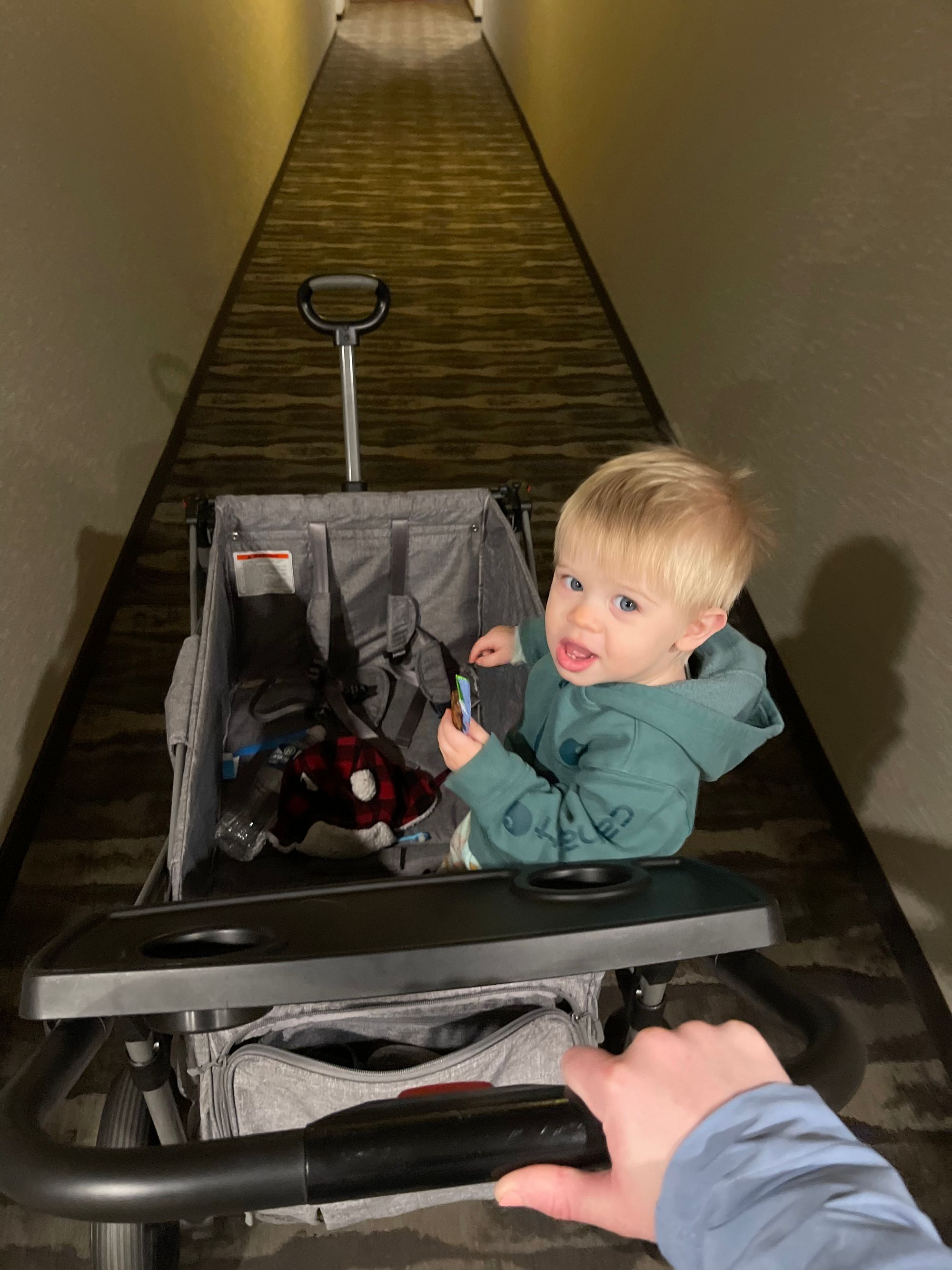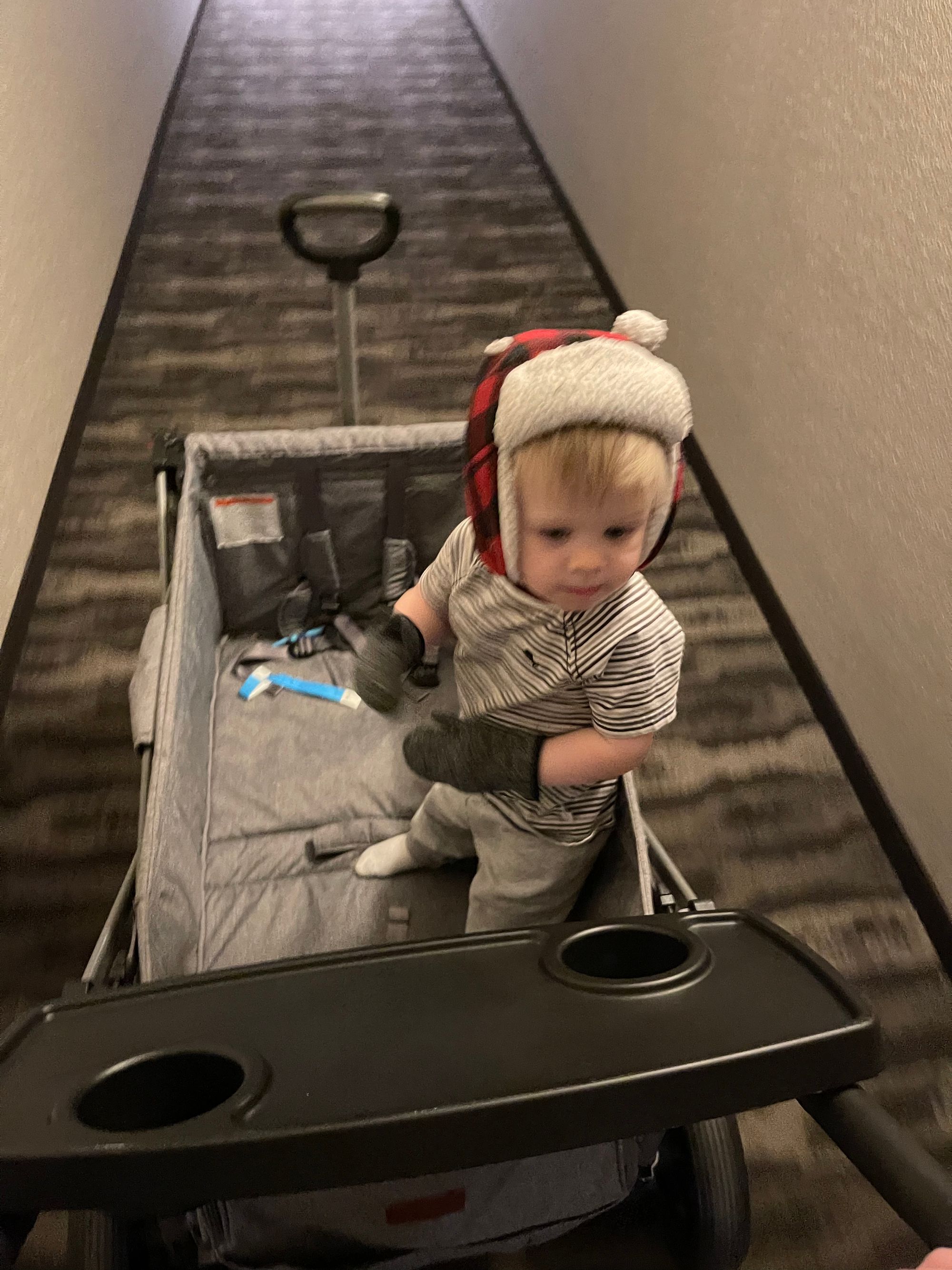 The next morning we got up and dropped Logan off! This was a huge part of getting the hotel - so Benny and I had somewhere to hang out while he was under the laser! We did a few wagon laps, played outside, packed up, got donuts and went over to wait for Logan!