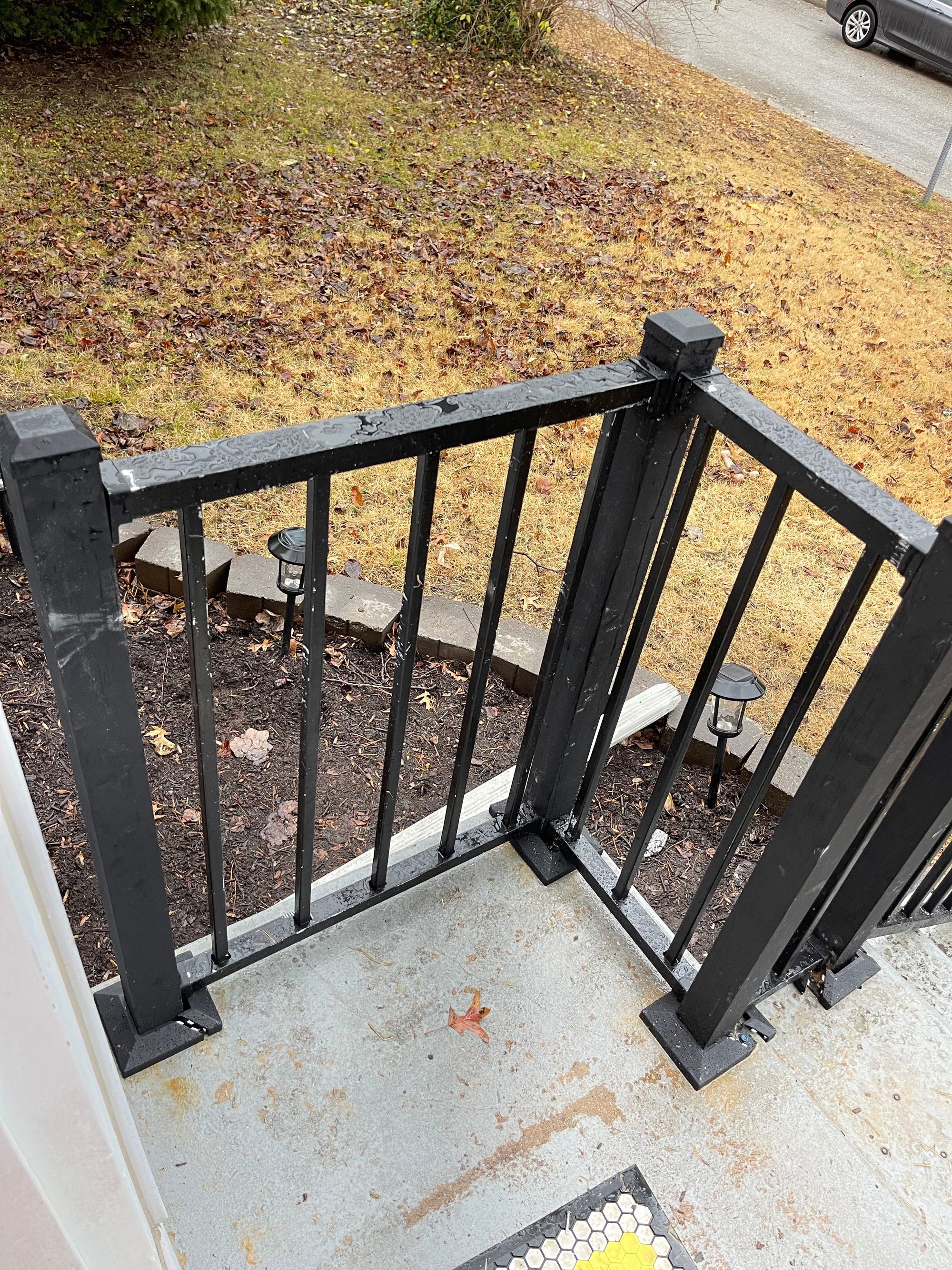 When the railing was put on our front porch in 2020 - it didn't include the side... I have no idea why. We've had a few close calls with Benson falling off so we asked to have it put on. They agreed to look into it but we didn't hear anything else.