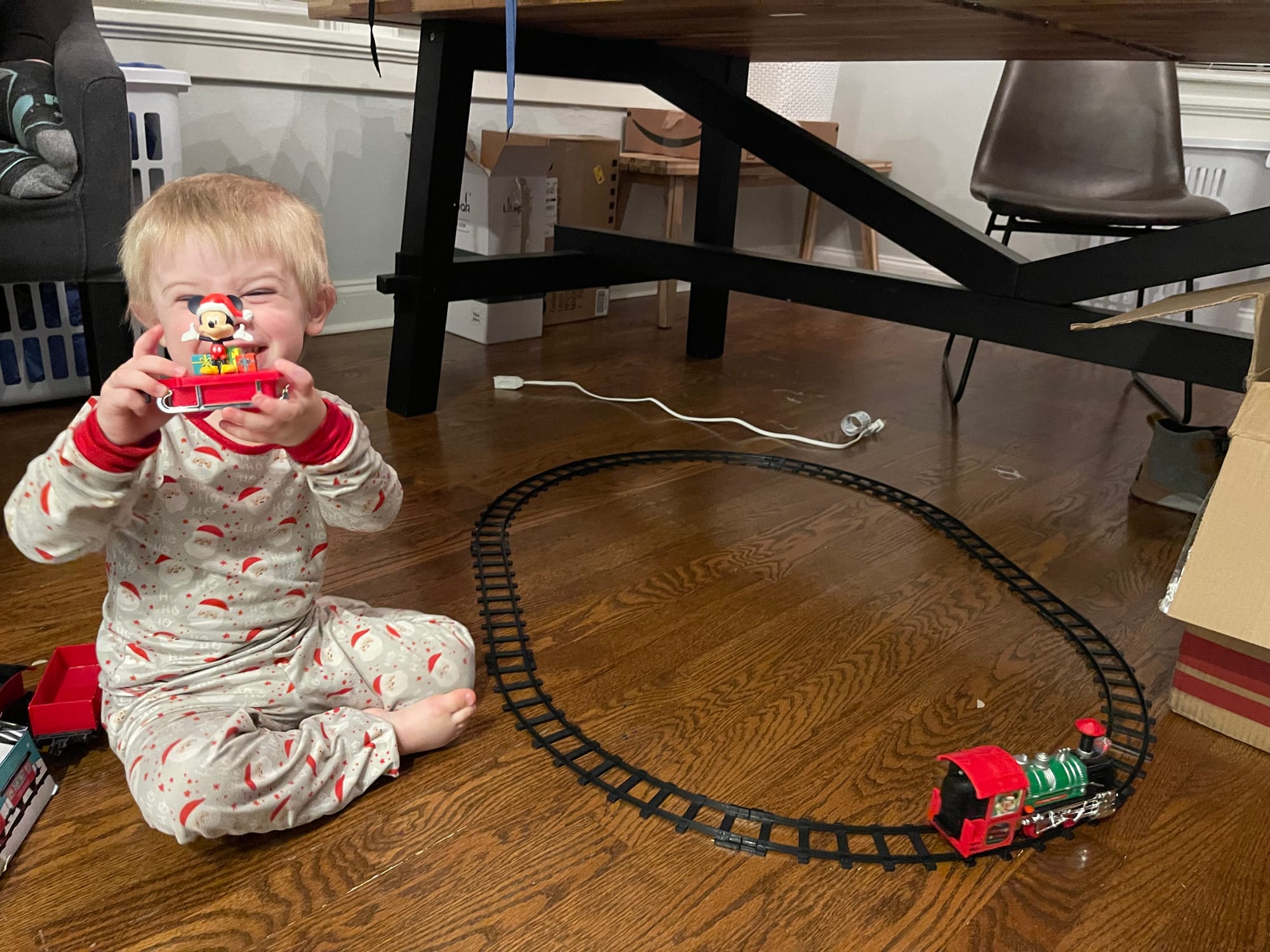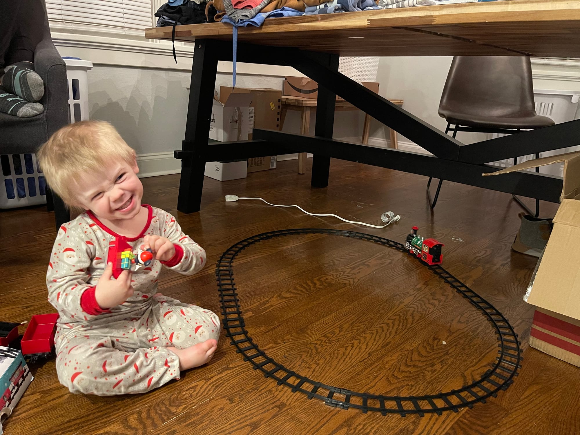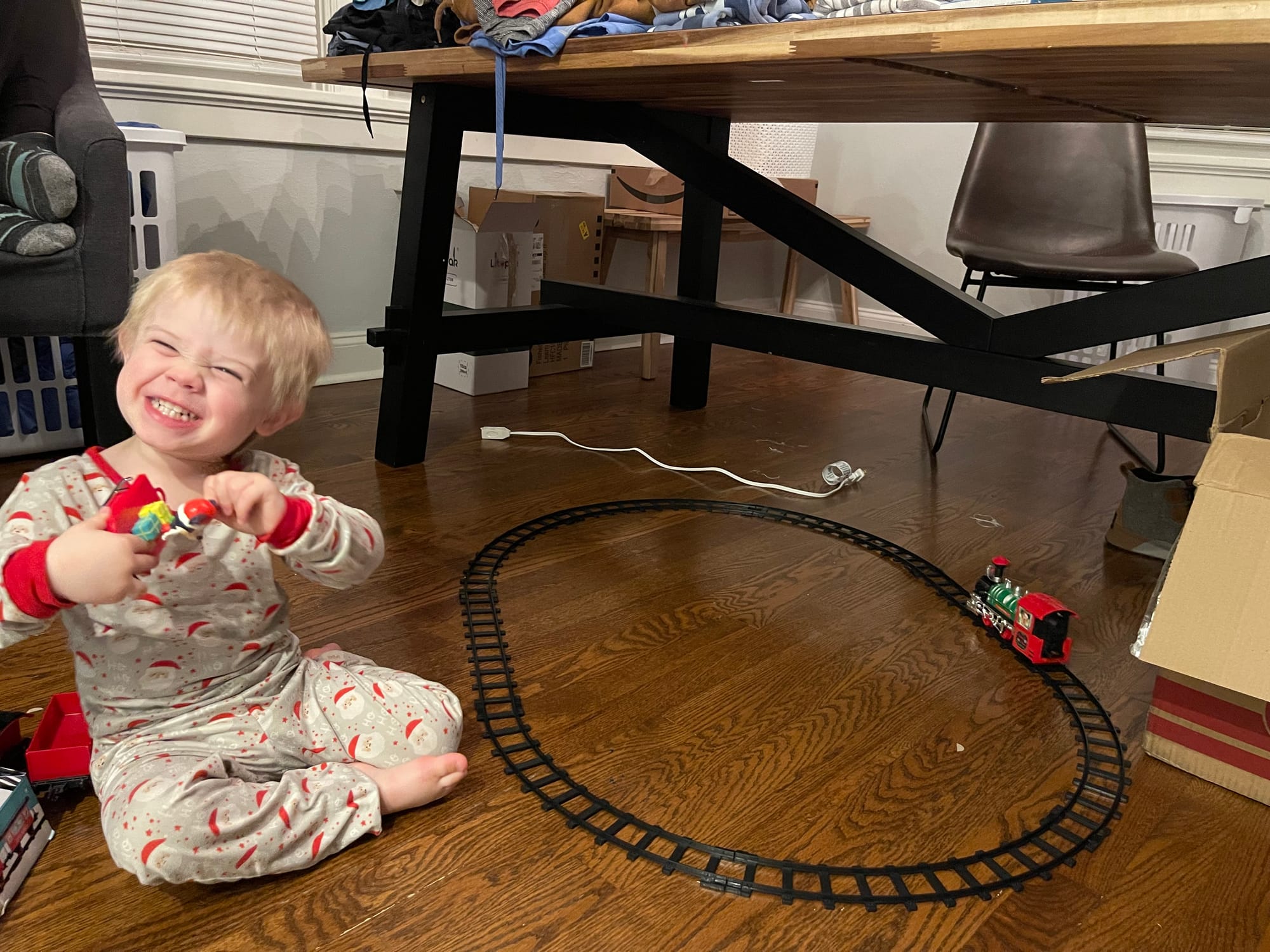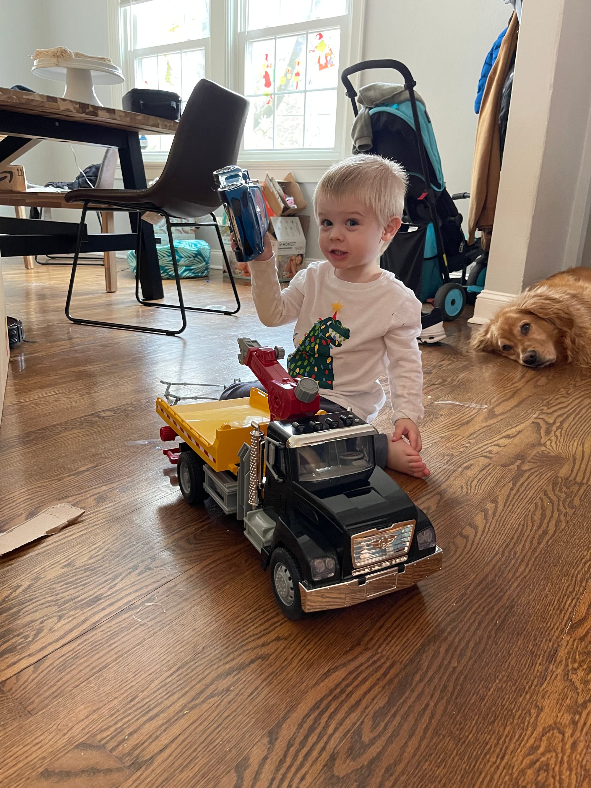 More and more presents show up by the moment! Benson knows everything comes from the mail man or PPP (UPS) … not Santa. Haha!