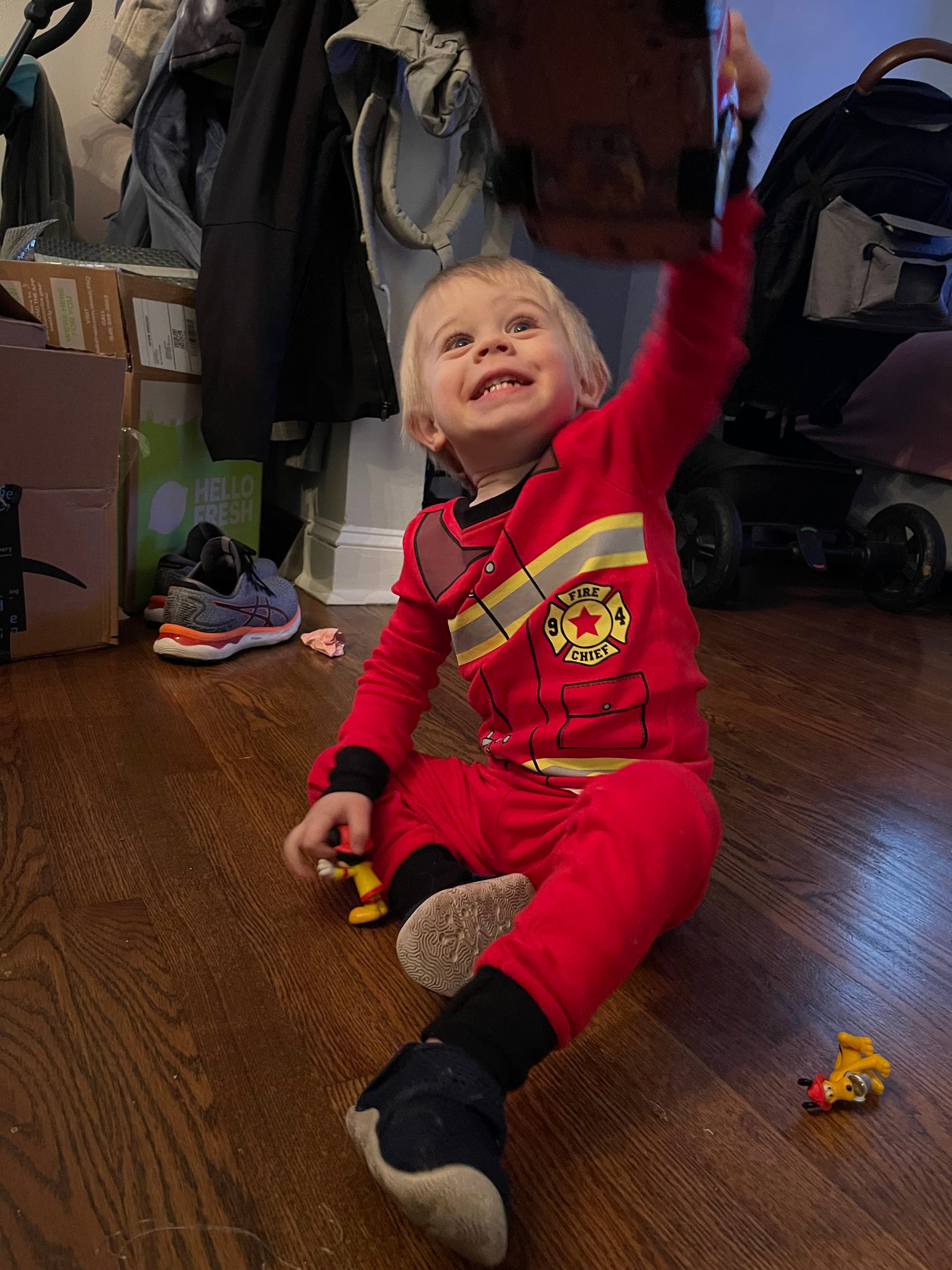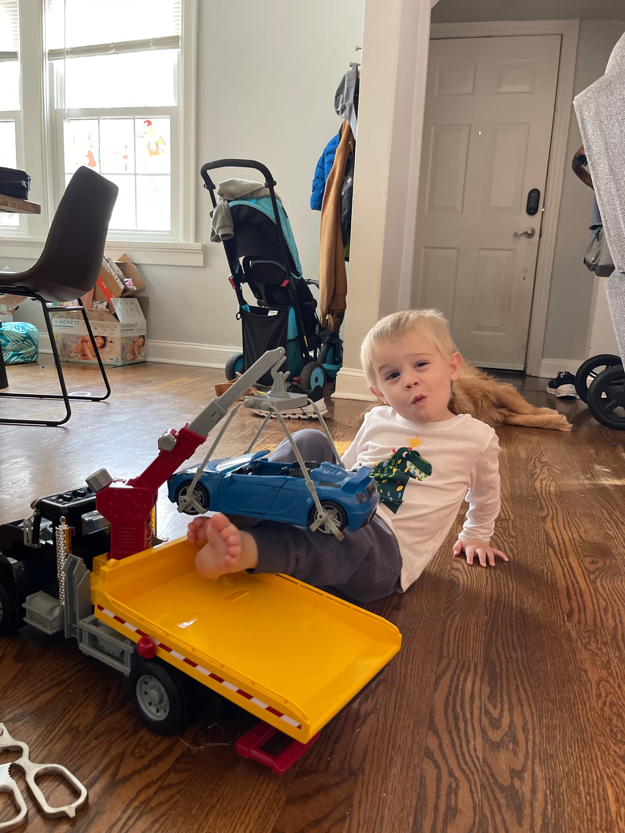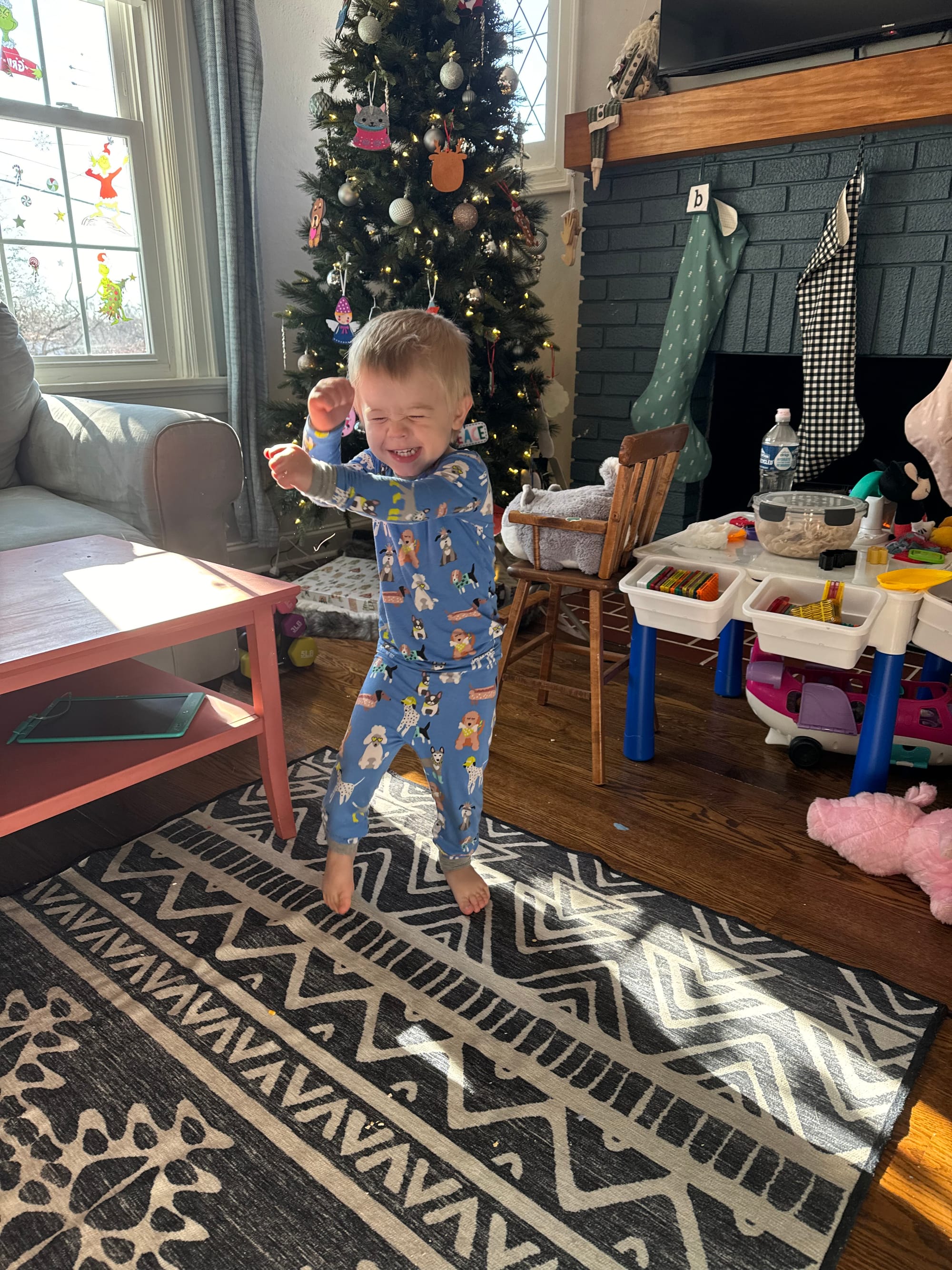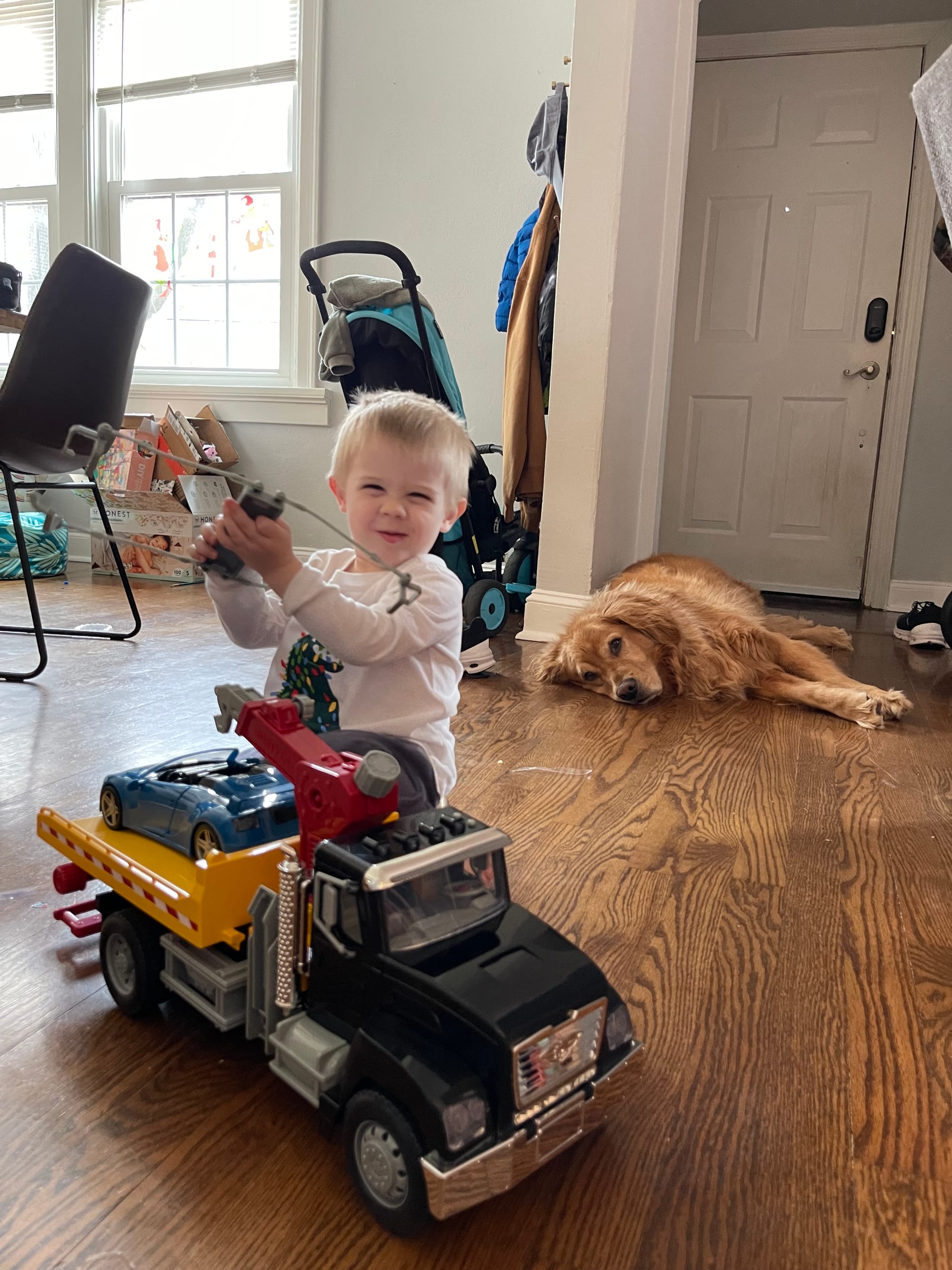 More and more presents show up by the moment! Benson knows everything comes from the mail man or PPP (UPS) … not Santa. Haha!