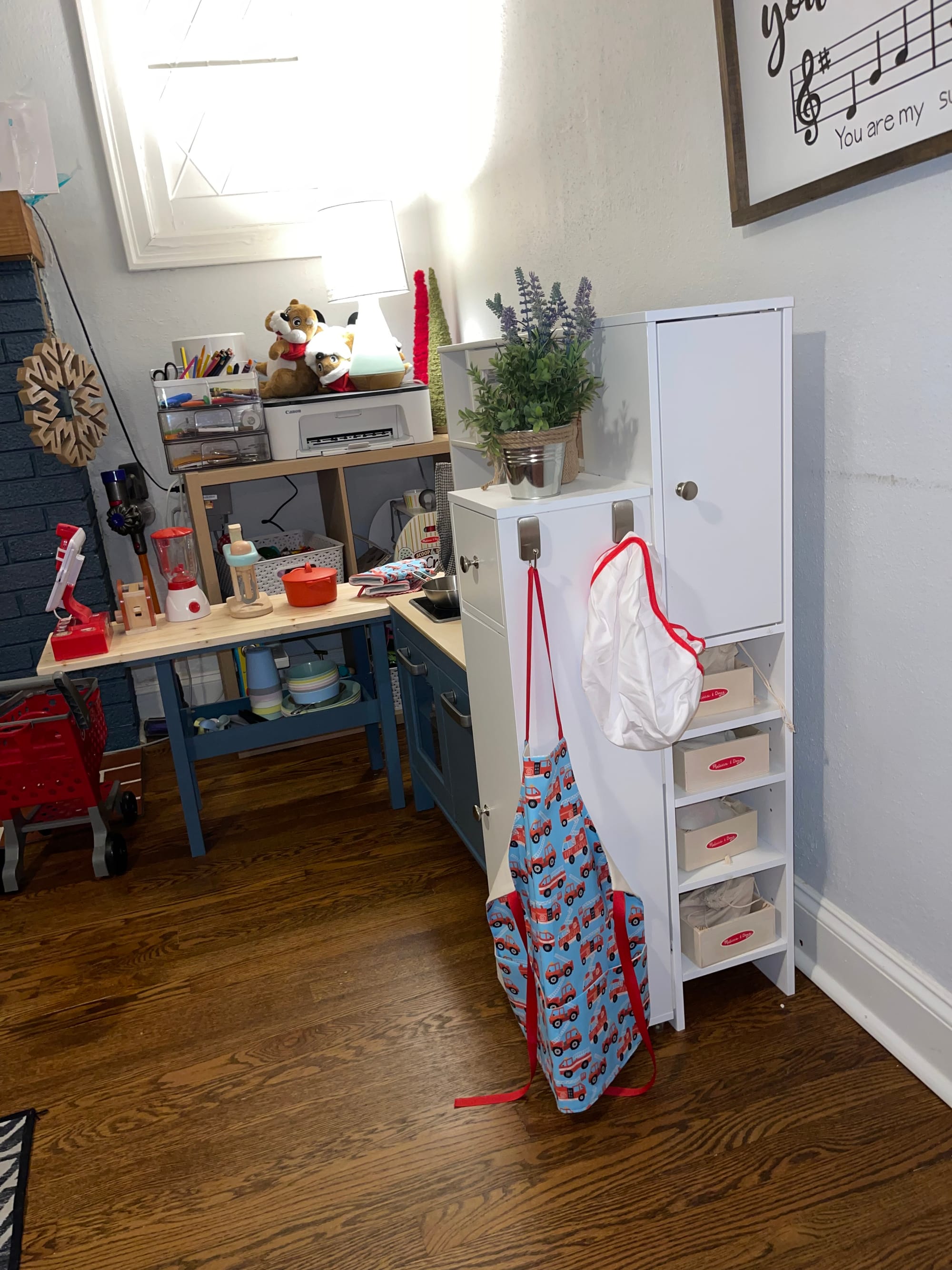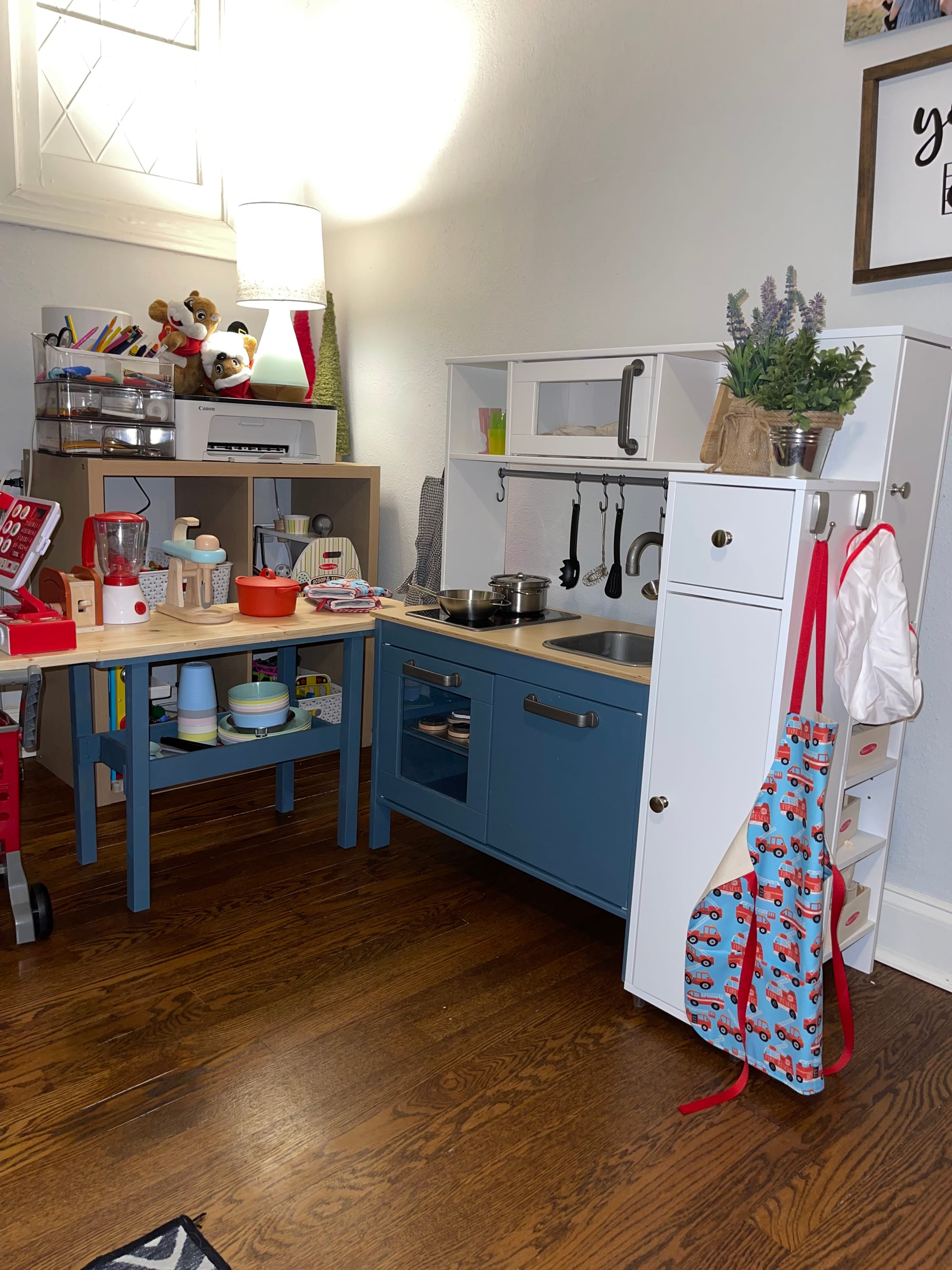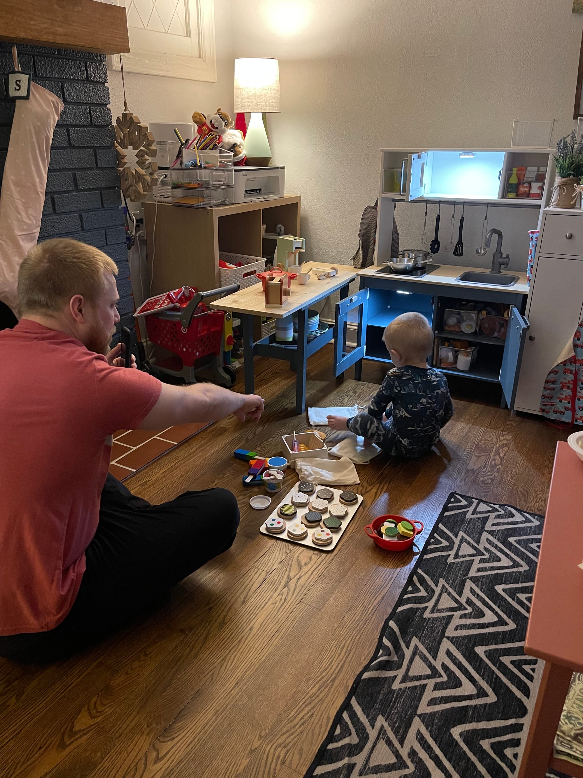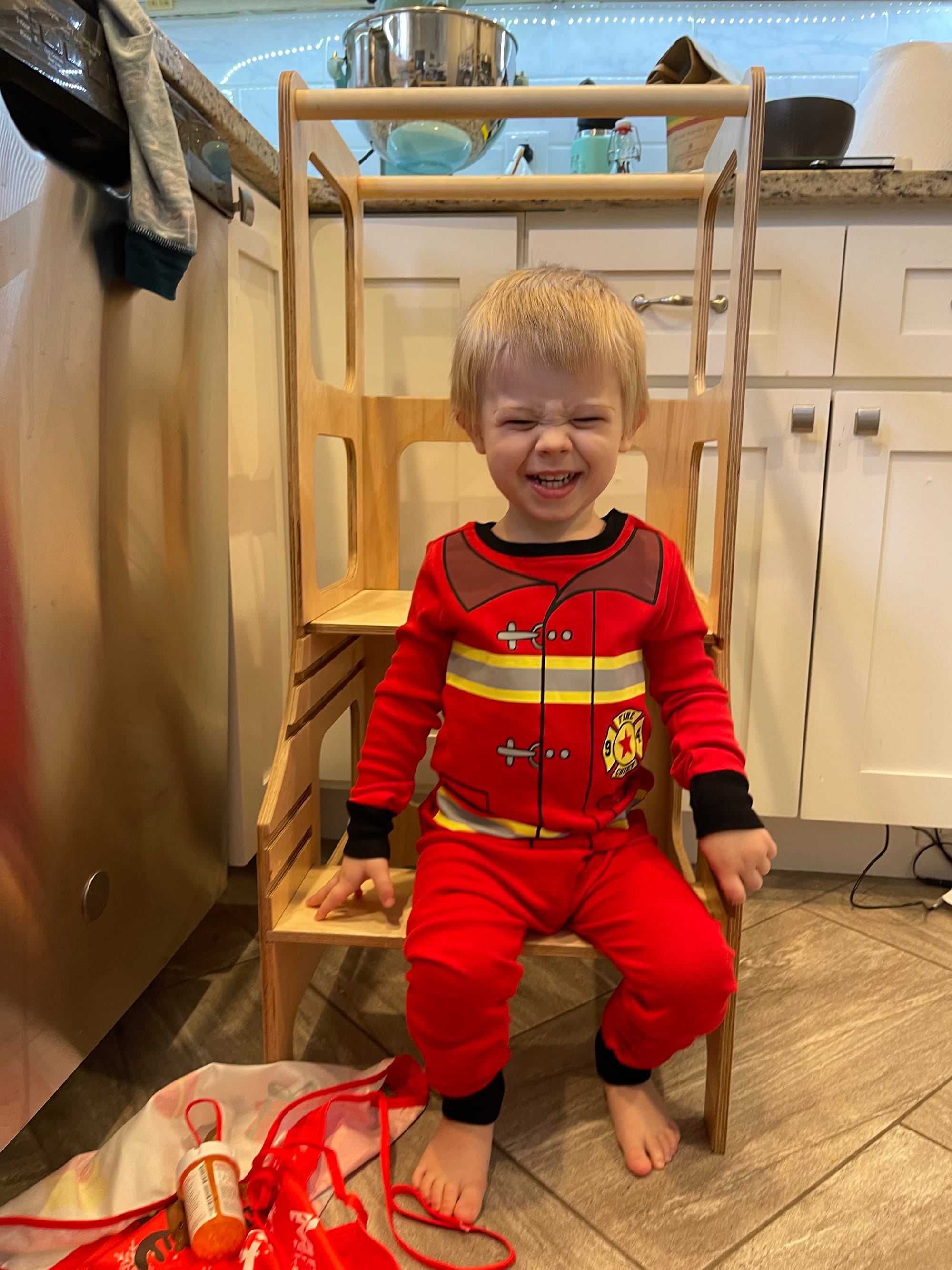 We spent the evening working on Benson’s Christmas present, a toy kitchen, playing dress up and a trip to the park.