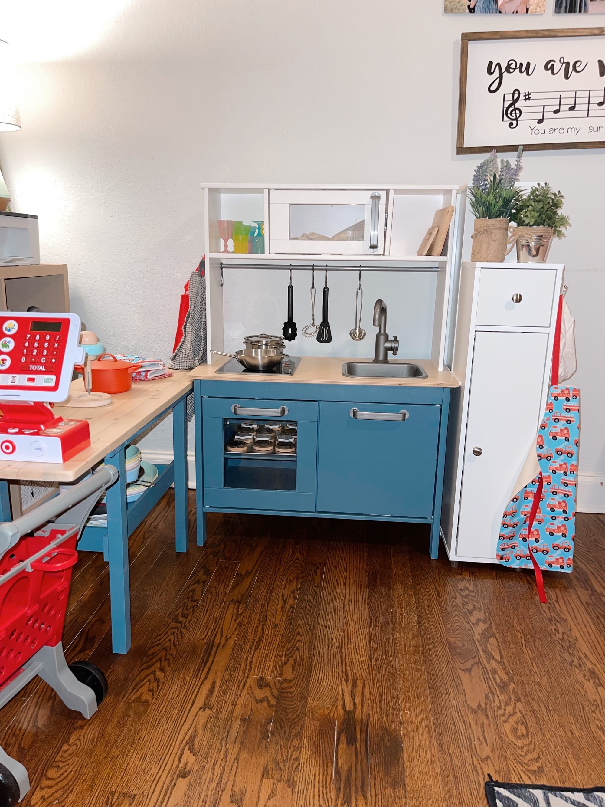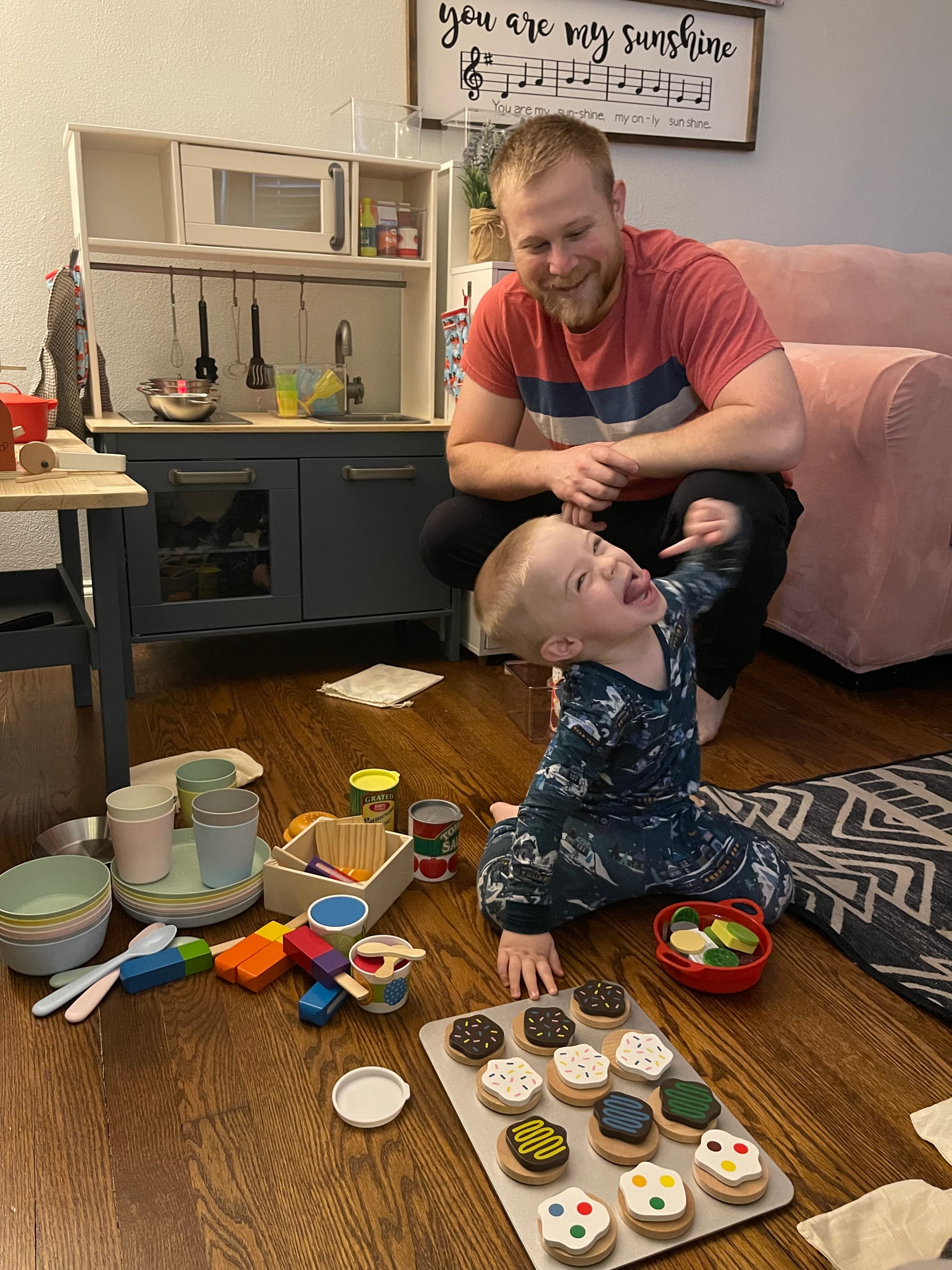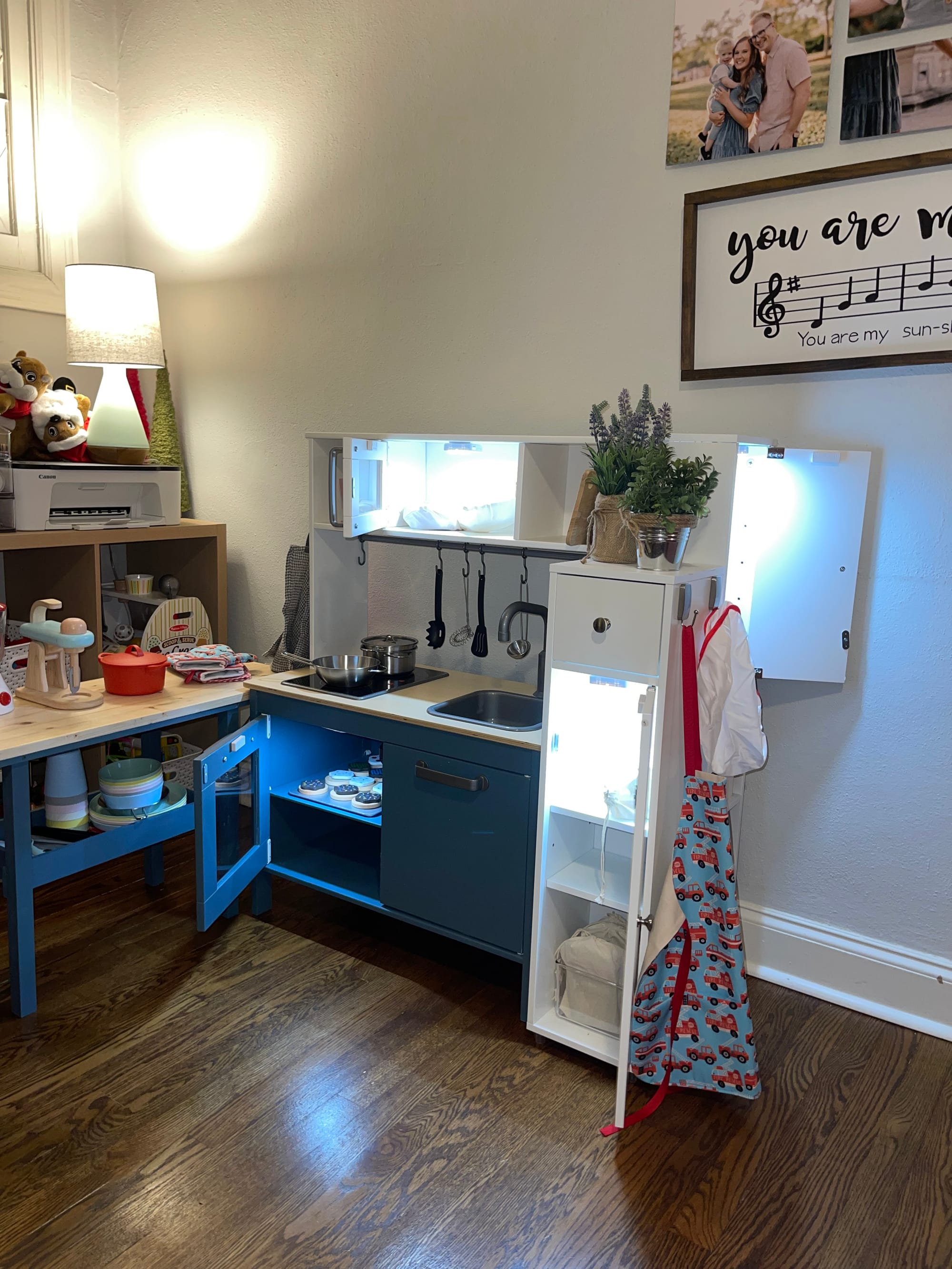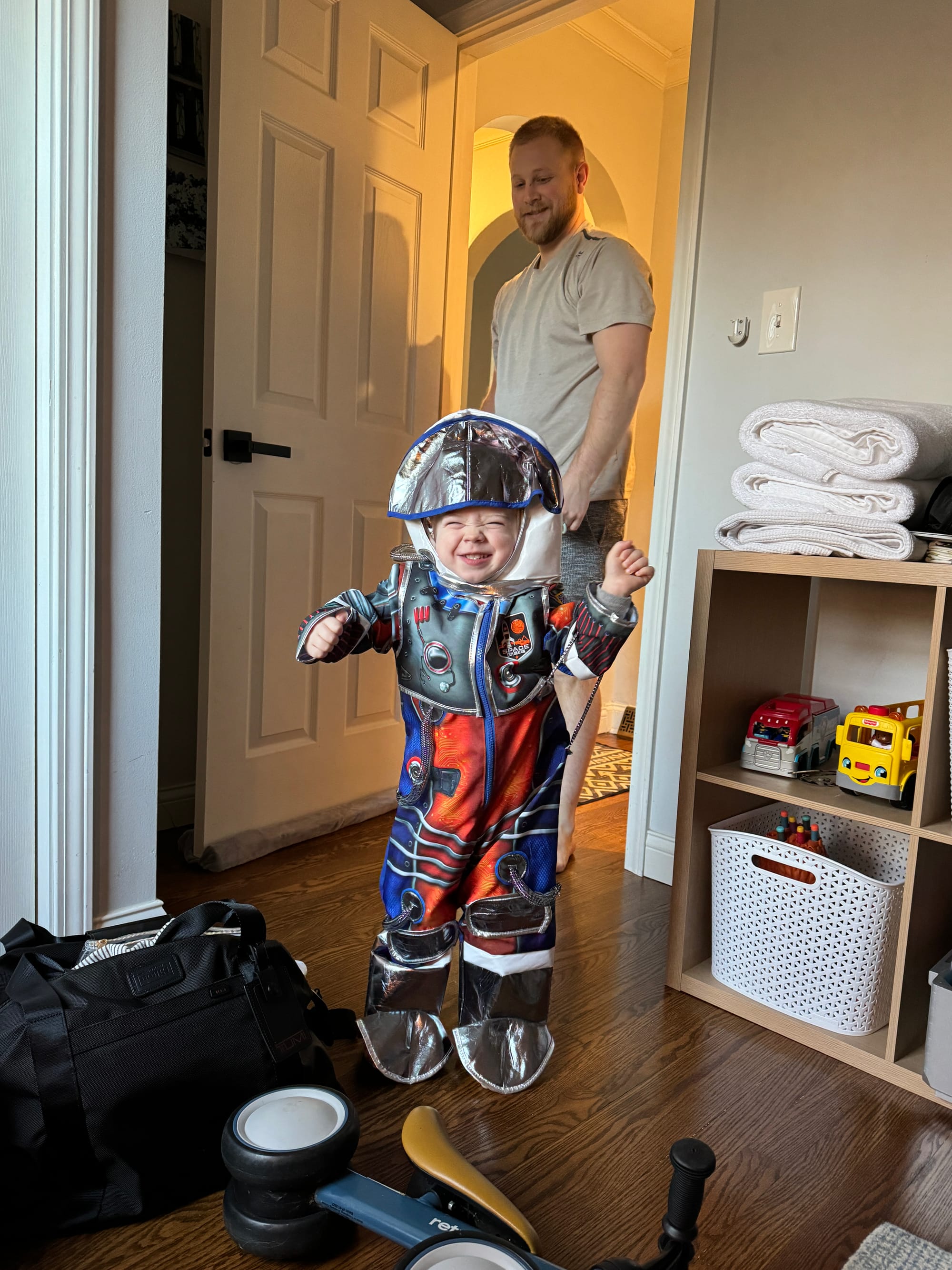 We spent the evening working on Benson’s Christmas present, a toy kitchen, playing dress up and a trip to the park.