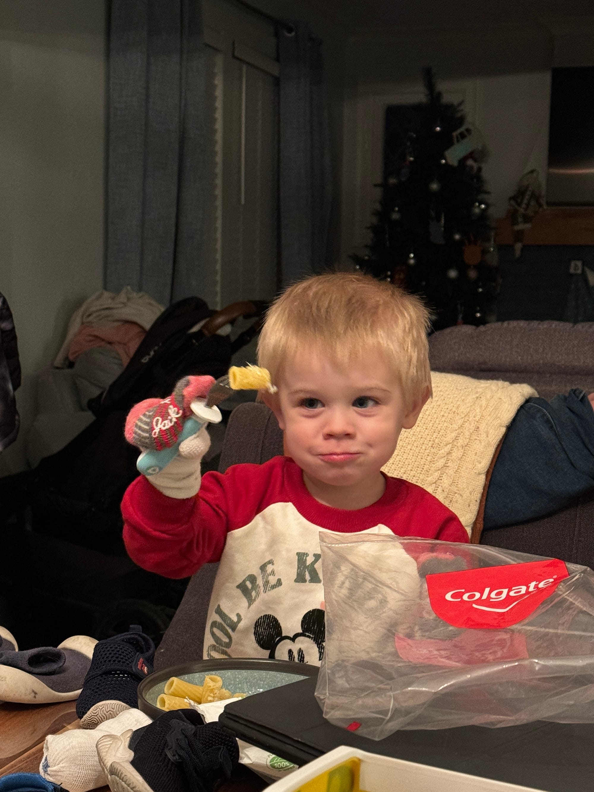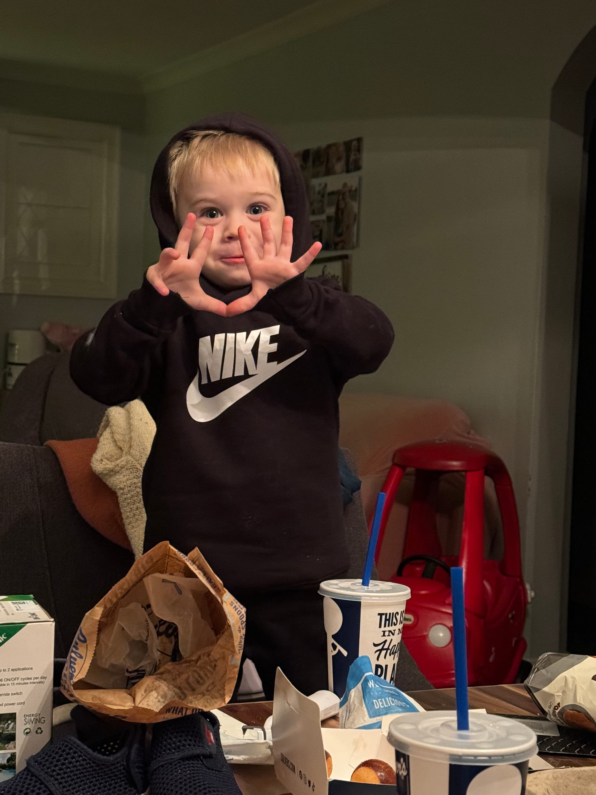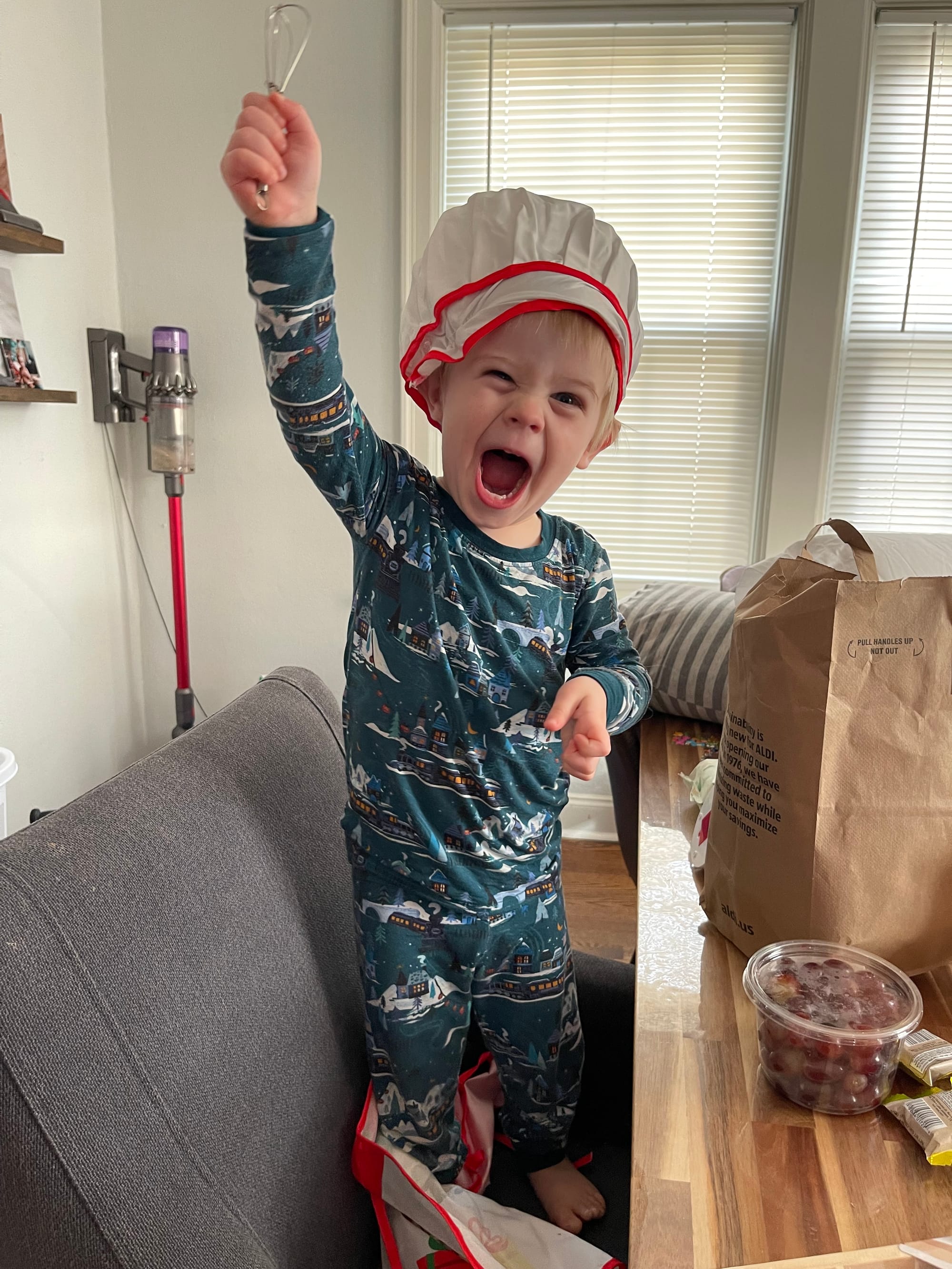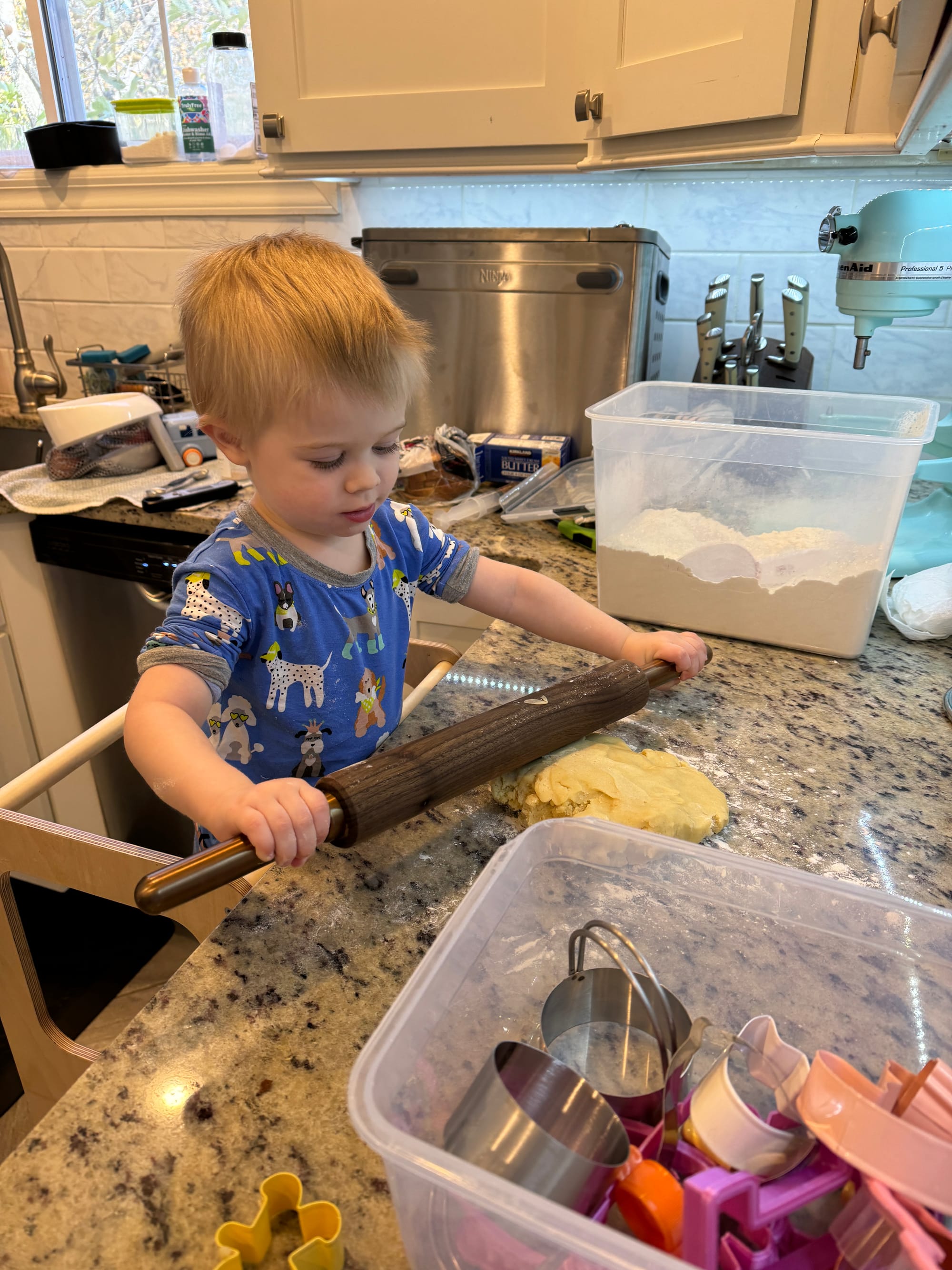 Around 10:30 Benson was telling me to “make dinna” he inhaled a plate of buttered noodles! This kid has the craziest metabolism.