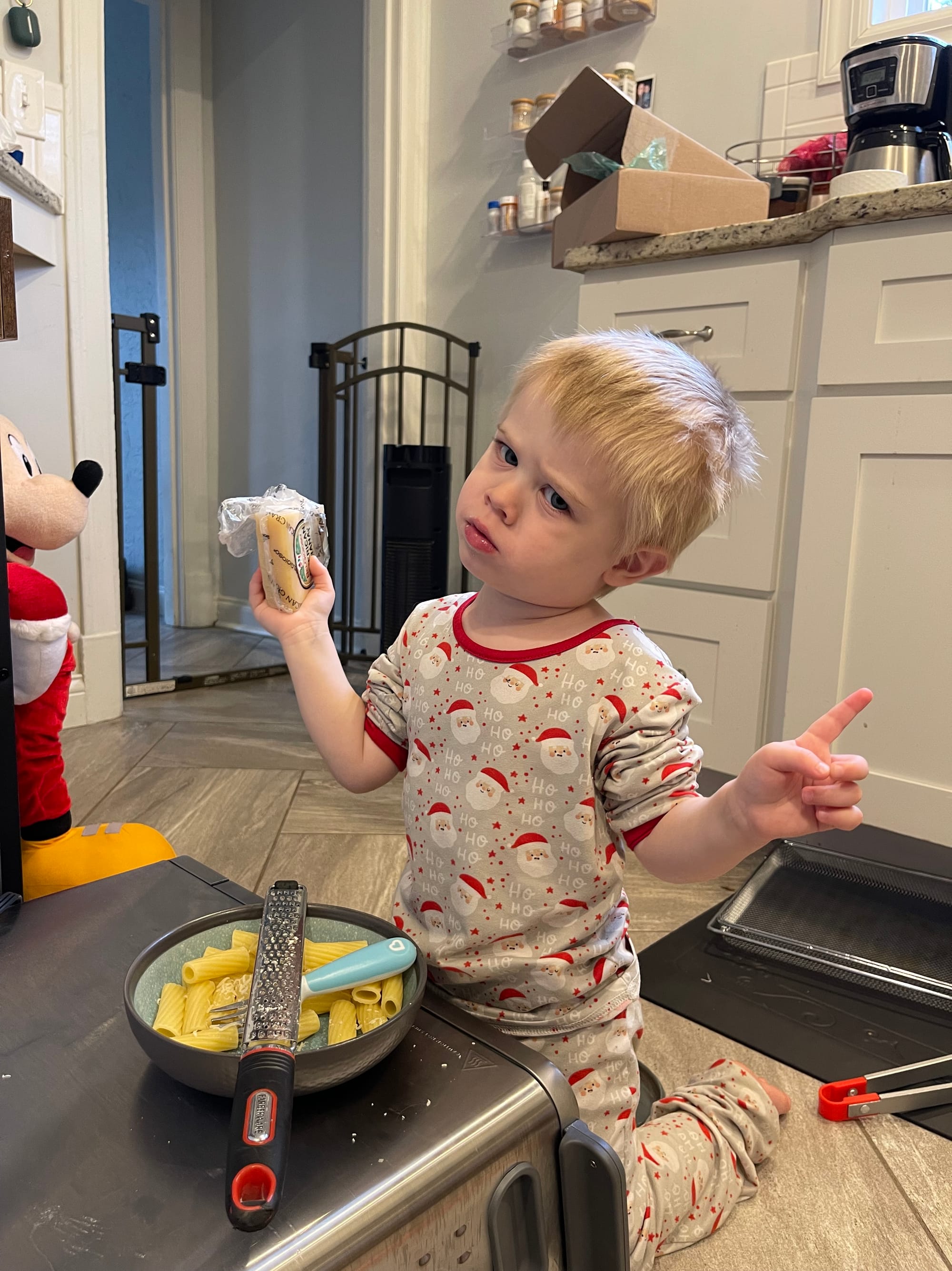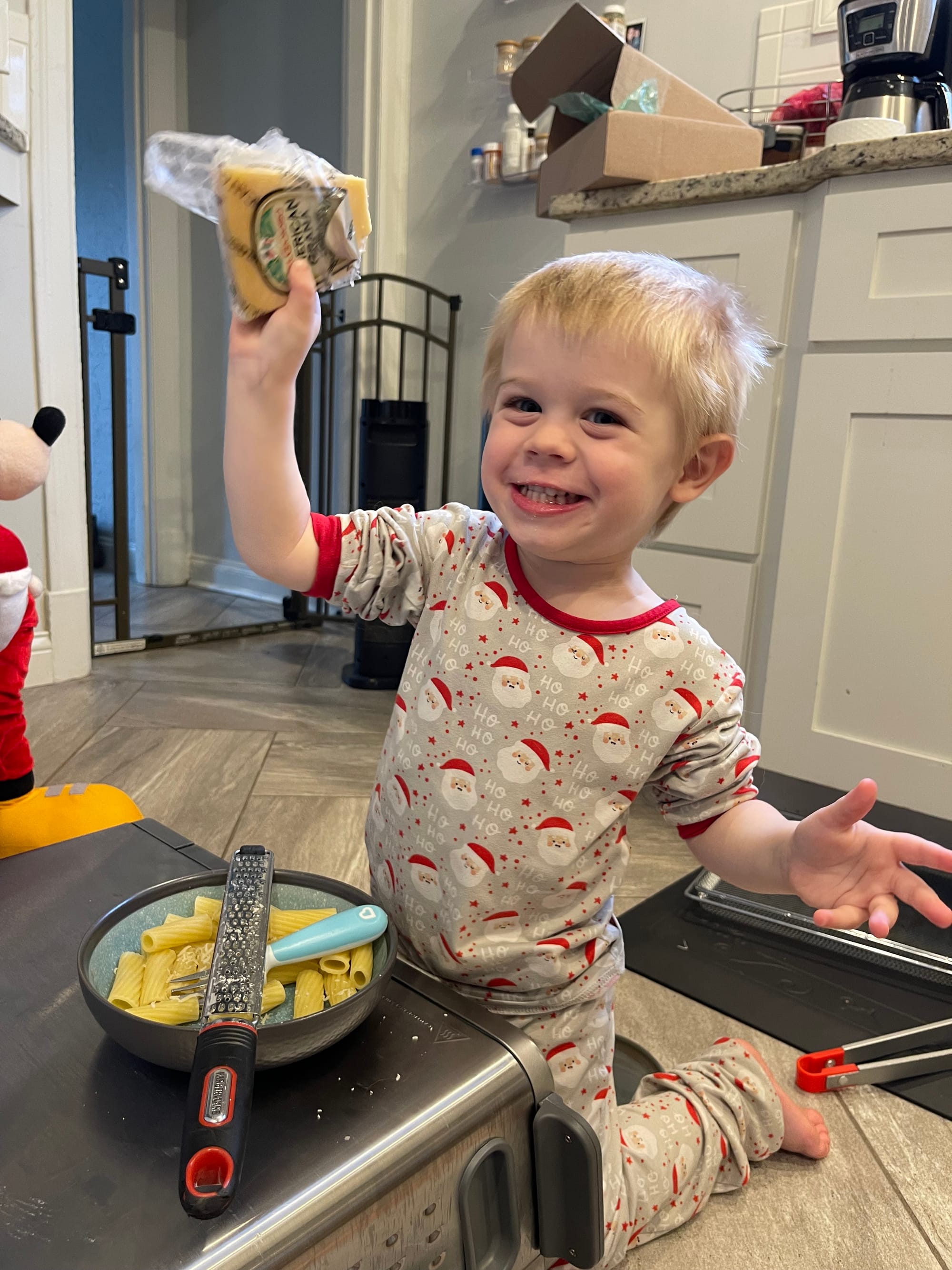 Kinley sent some Christmas gifts and inside one was a mini Hot dog (Mickey mouse). Benson died with excitement!