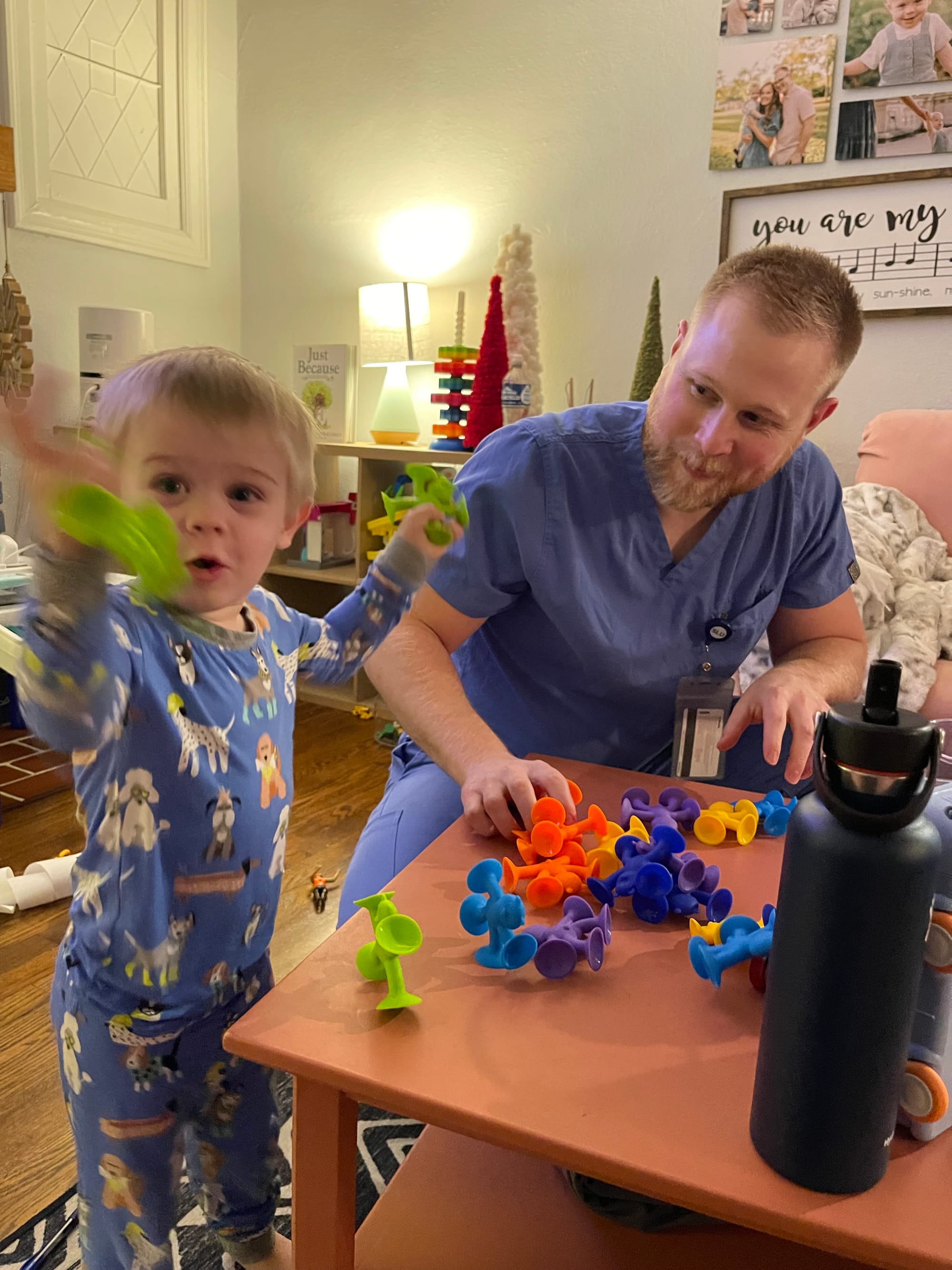 Of course trying out all of the toys. :)