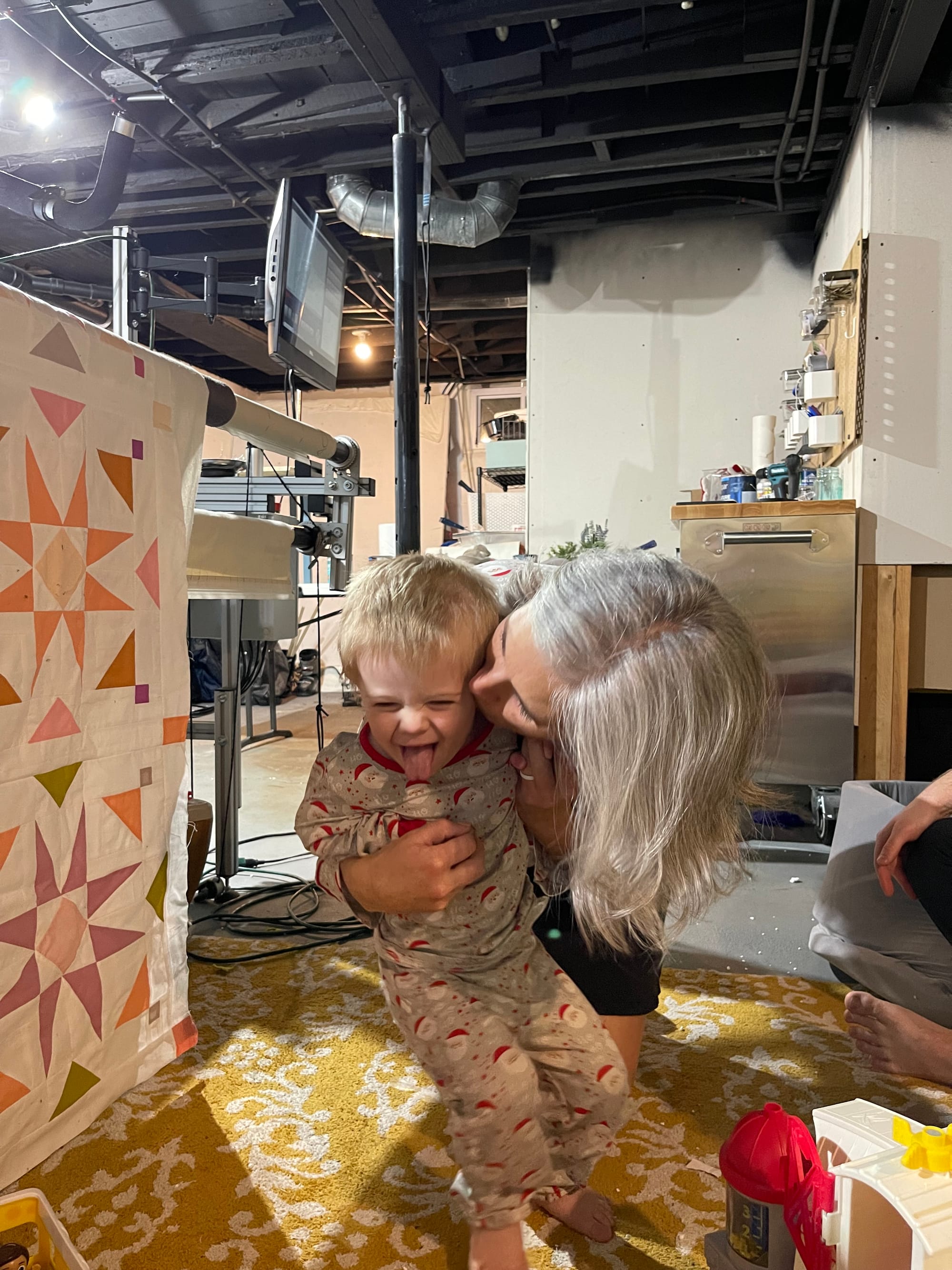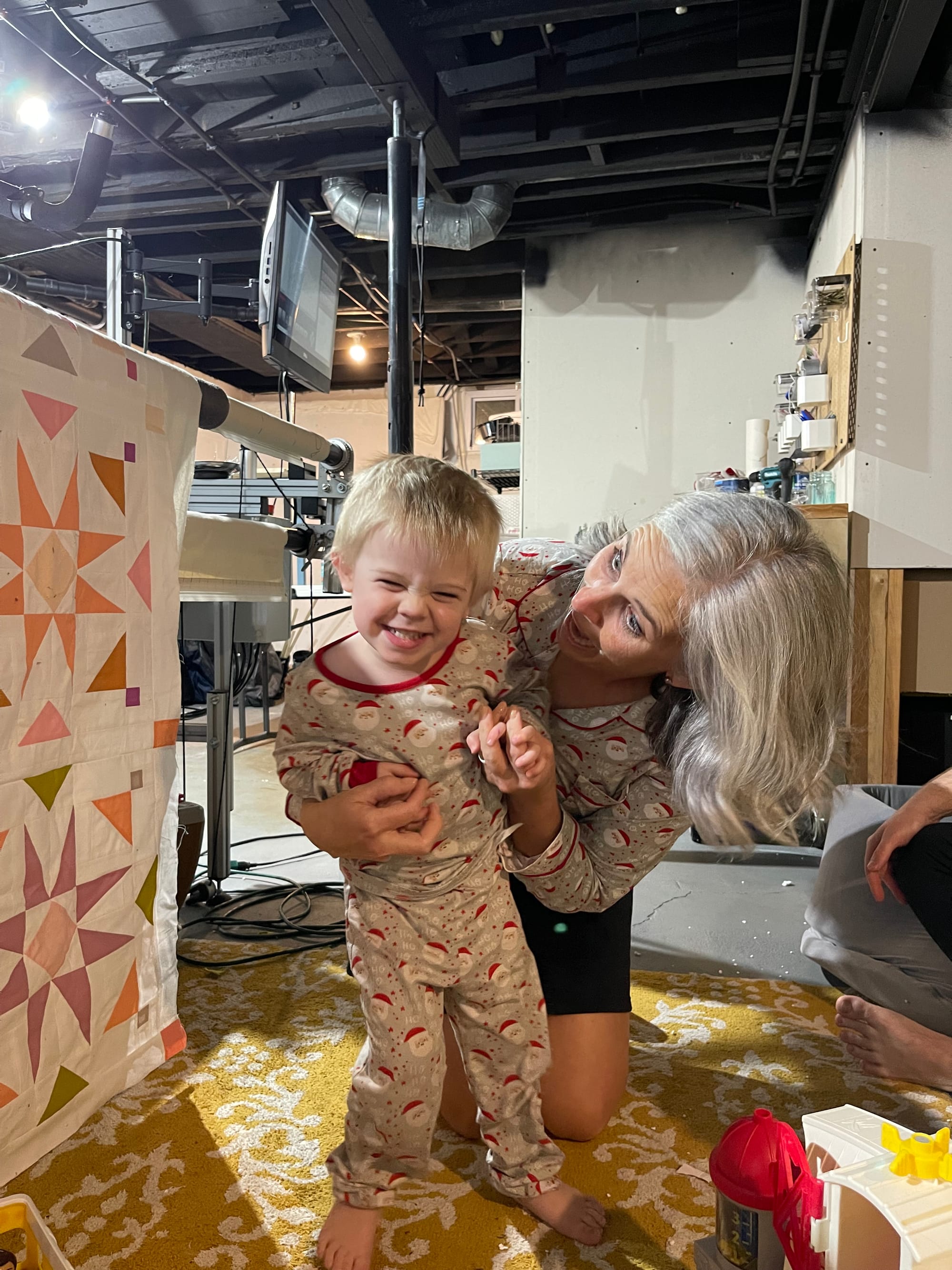 Some fun in the basement while we quilted! Haha!