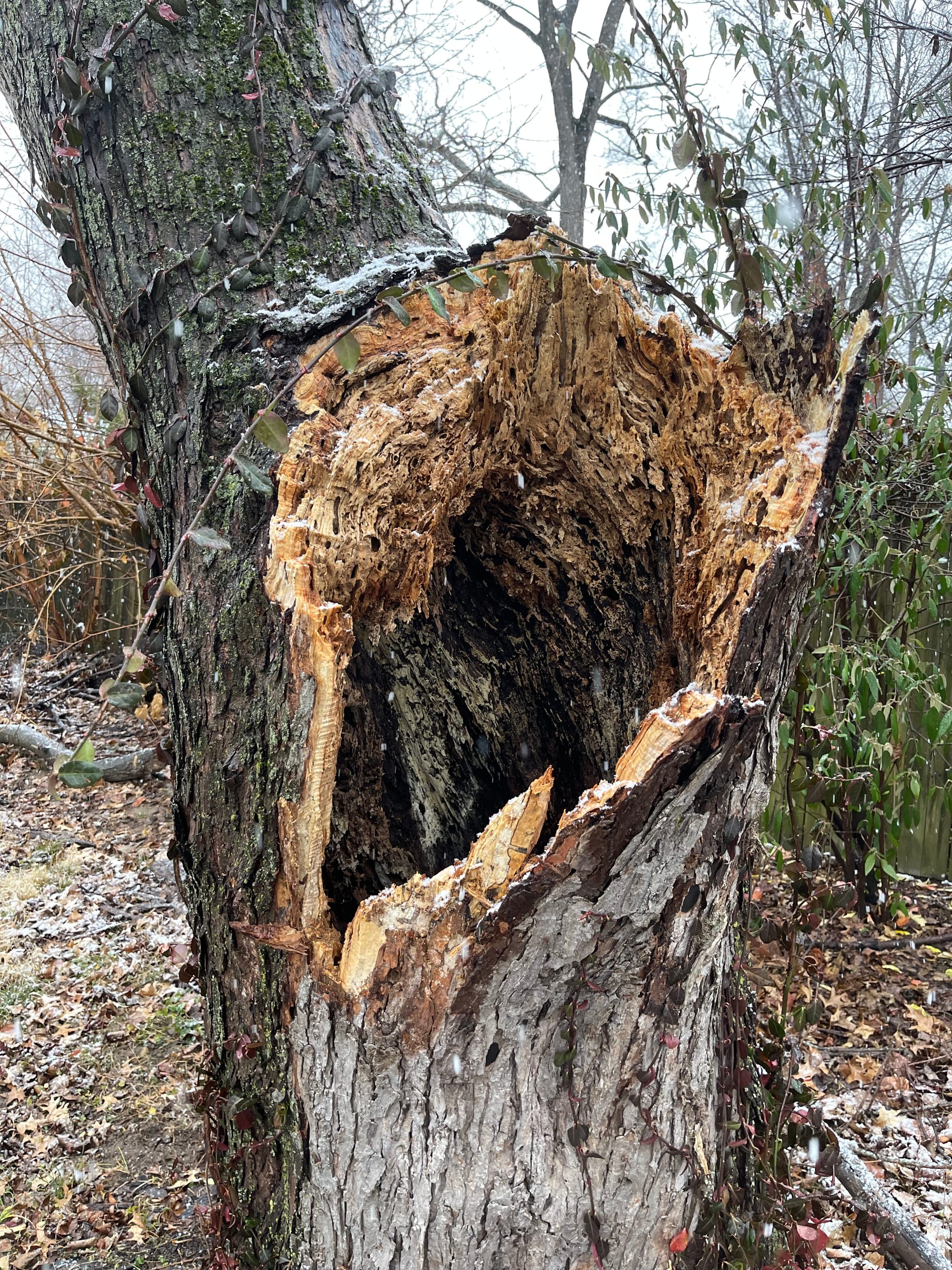 Logan has wanted to chop this tree down with a chain saw MANY times… to which I have said NO. Thank goodness because the entire tree was hollow!