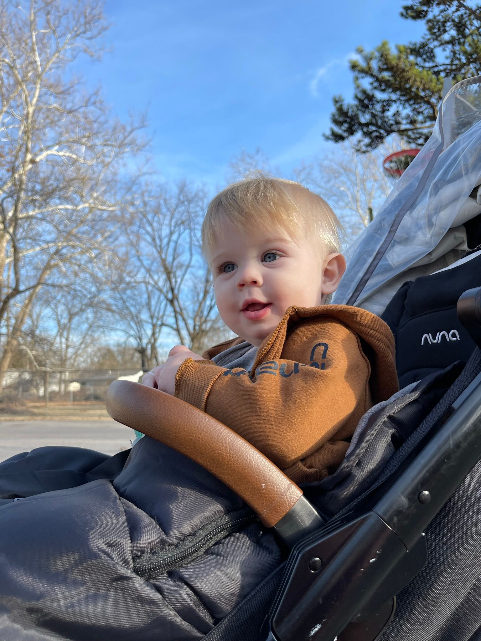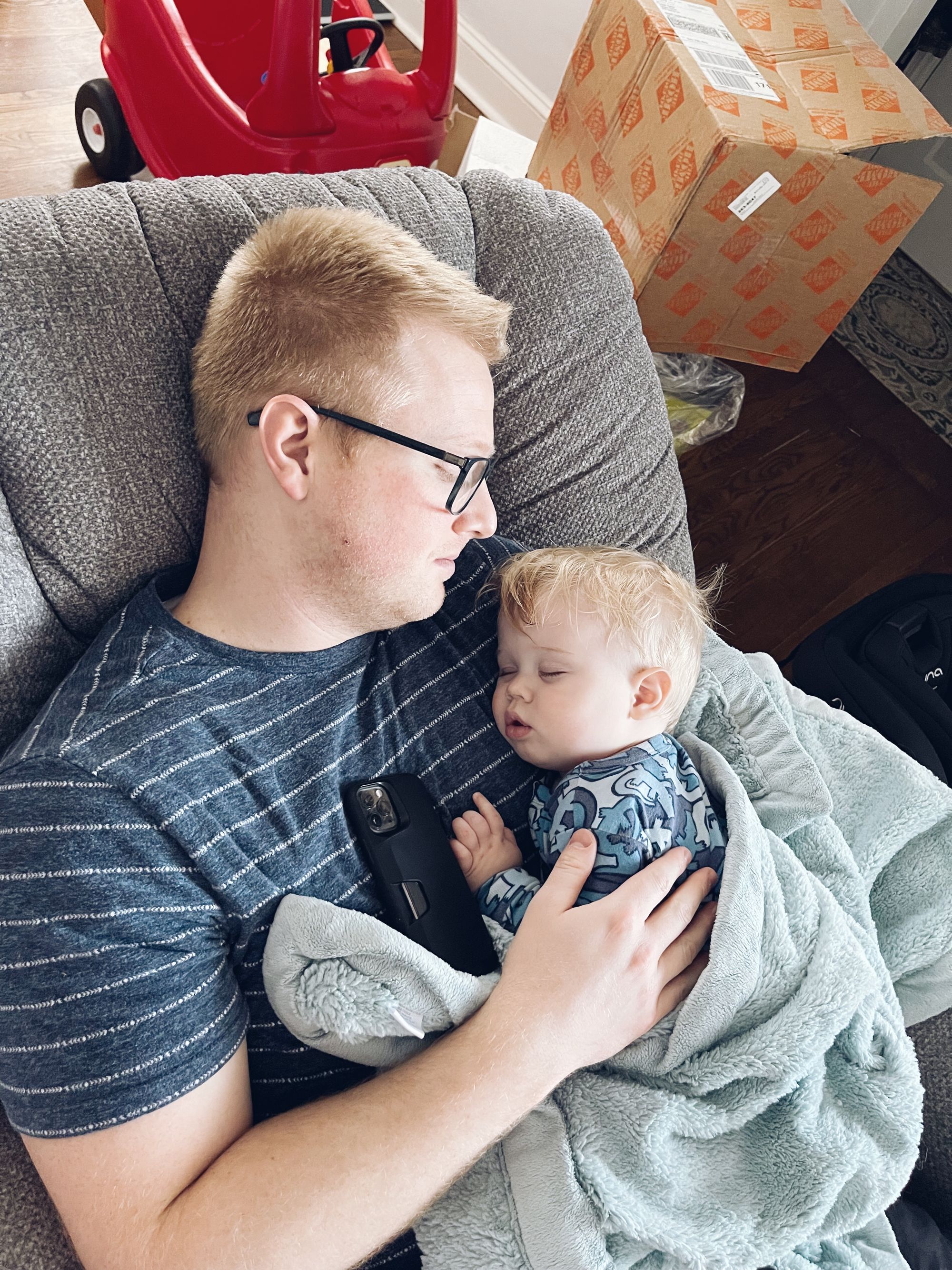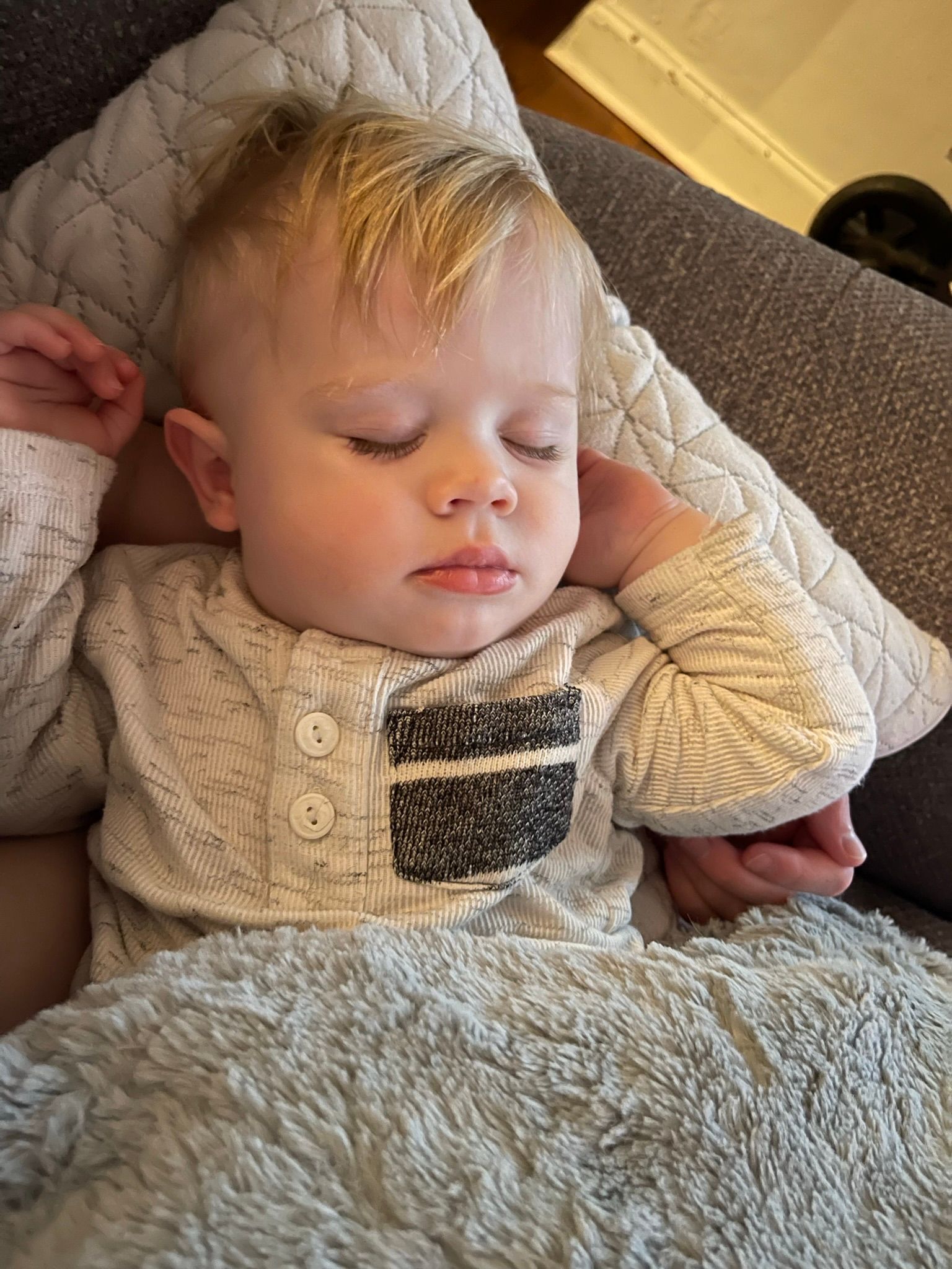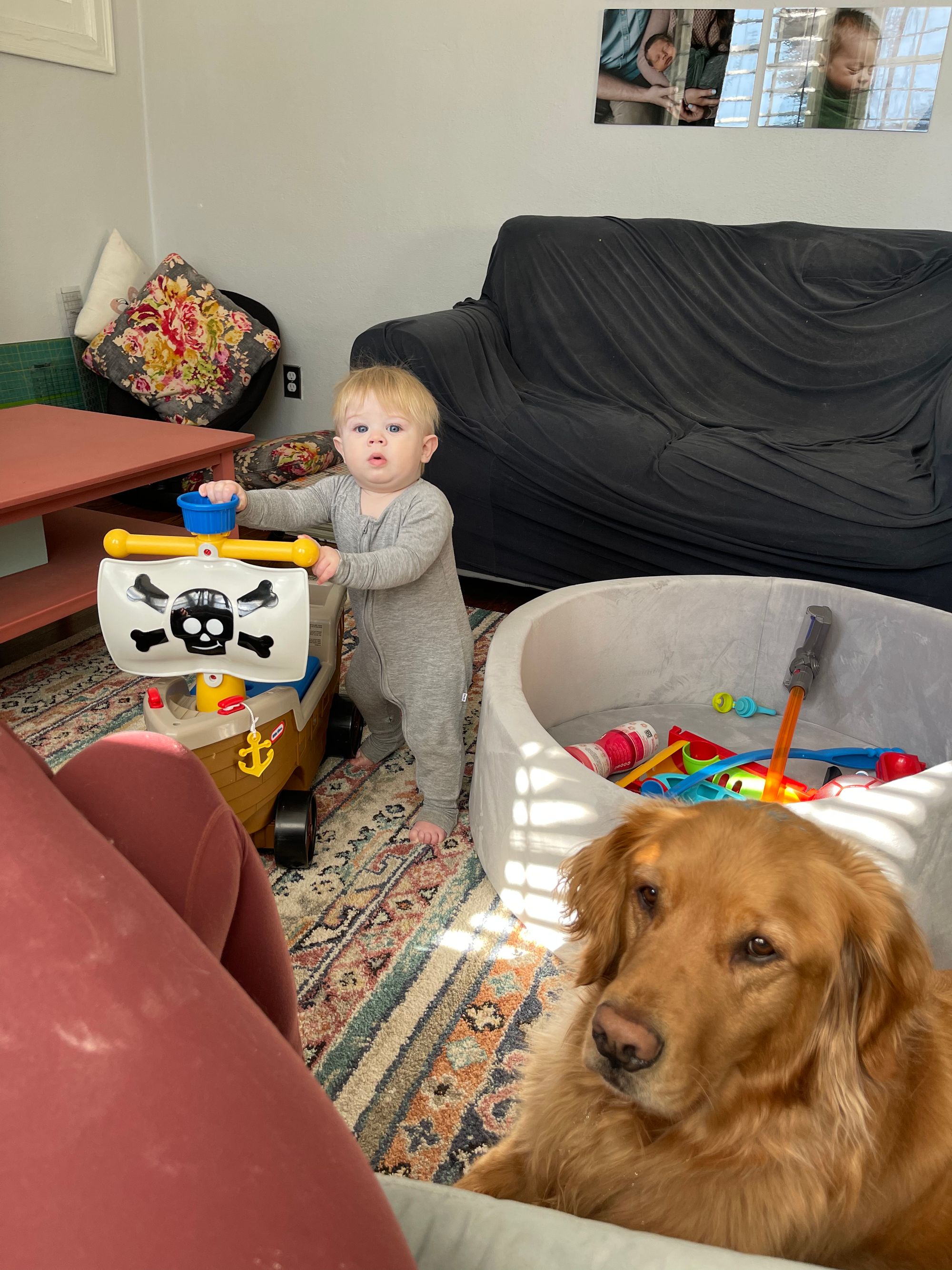 Benson fell asleep on our walk today with this strainer in his hand - I thought it was hilarious!