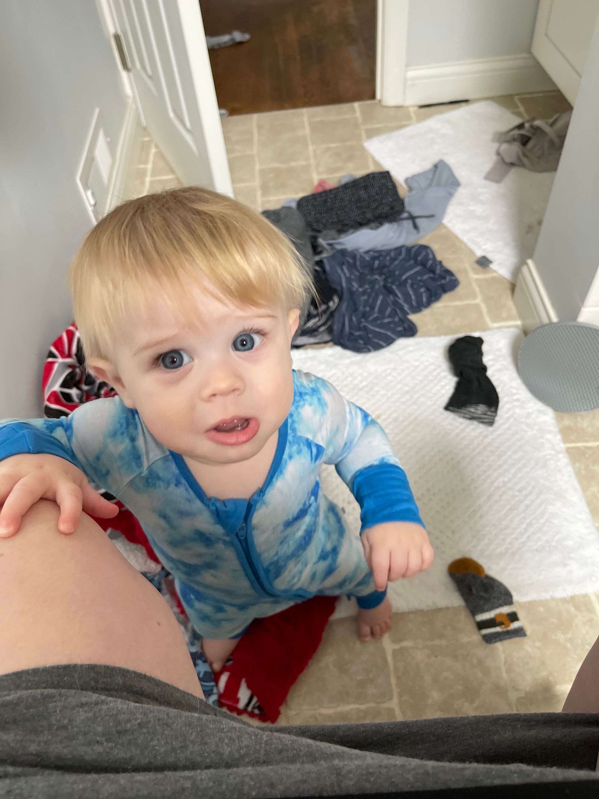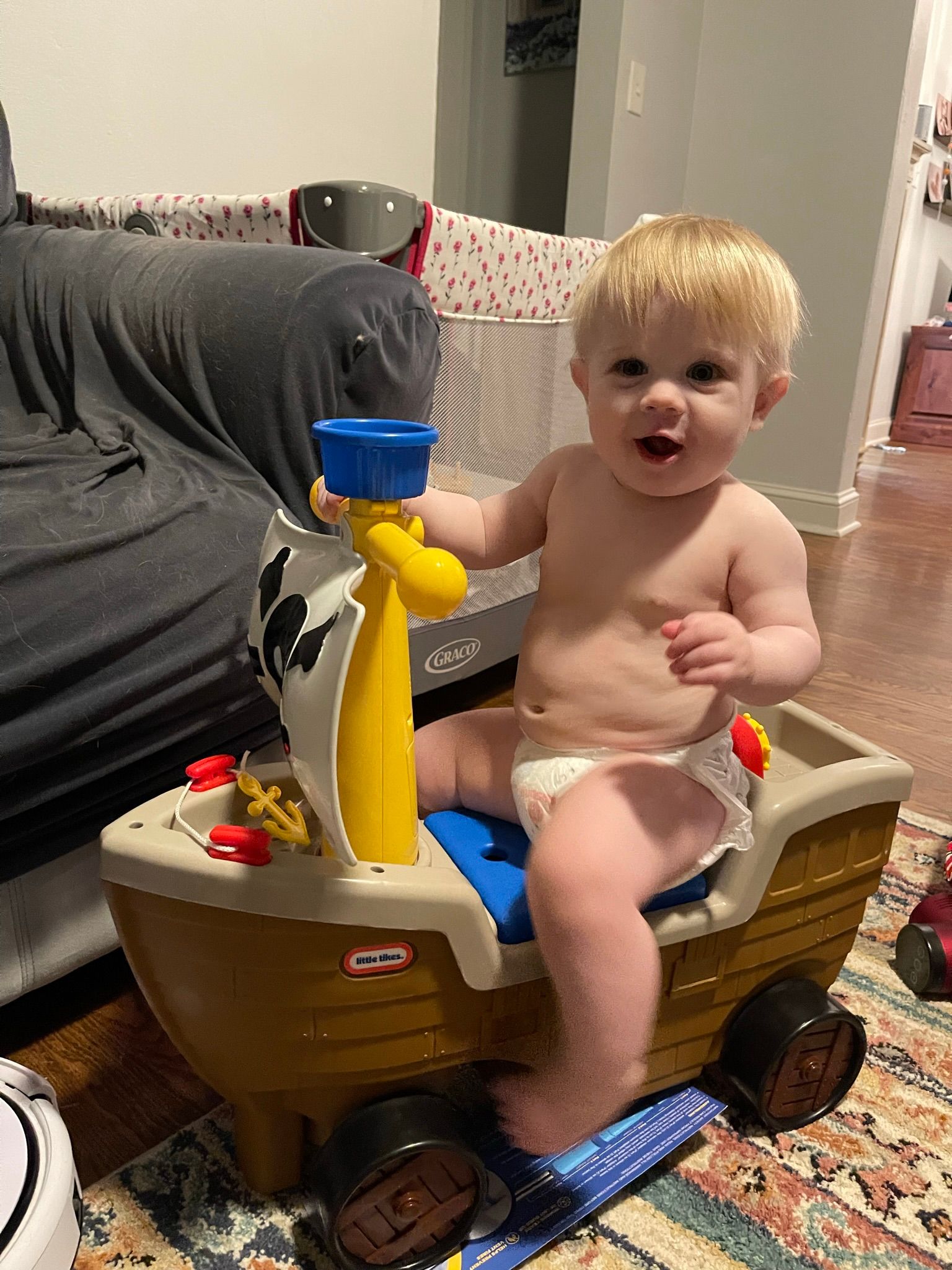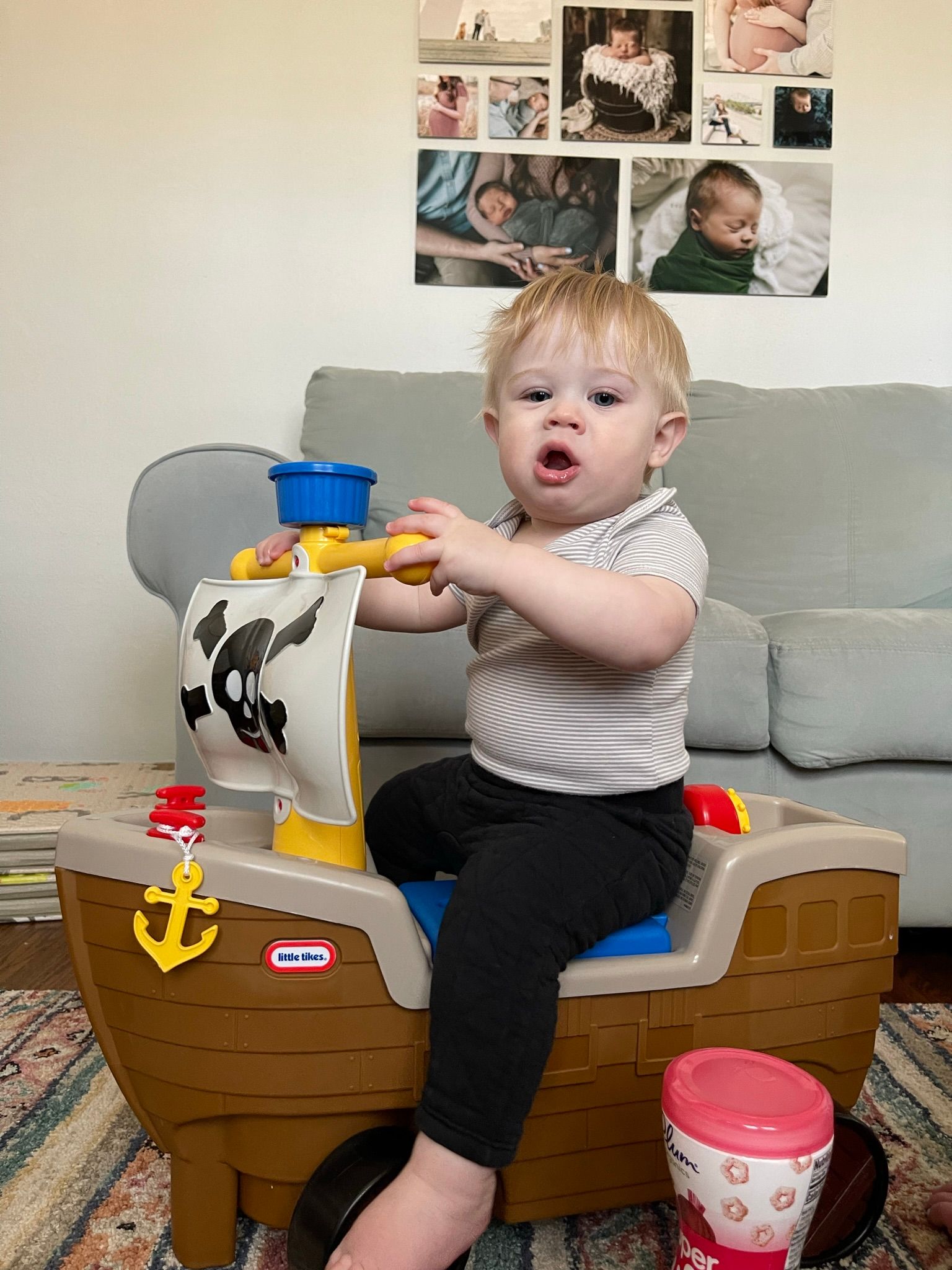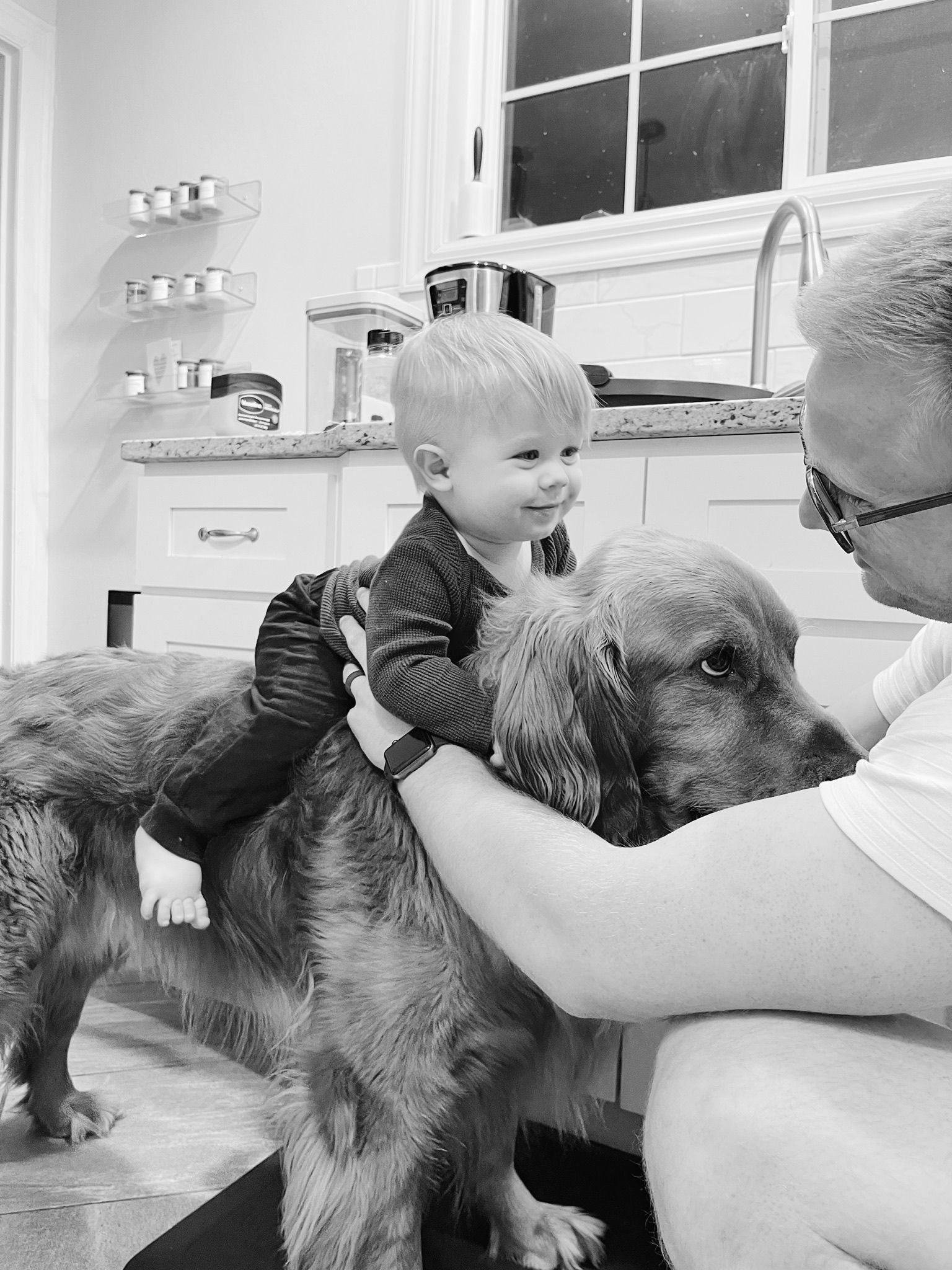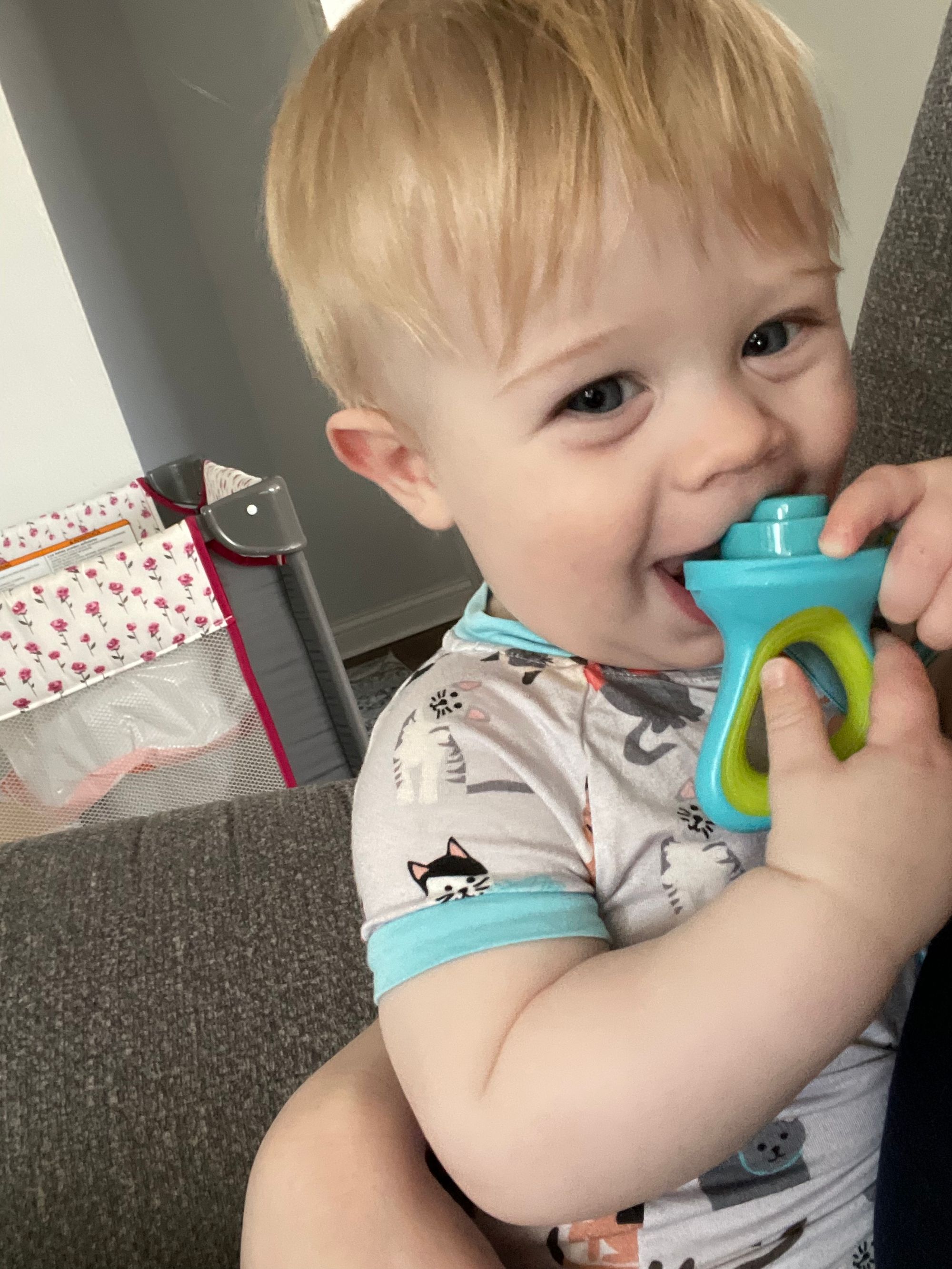Benson fell asleep on our walk today with this strainer in his hand - I thought it was hilarious!