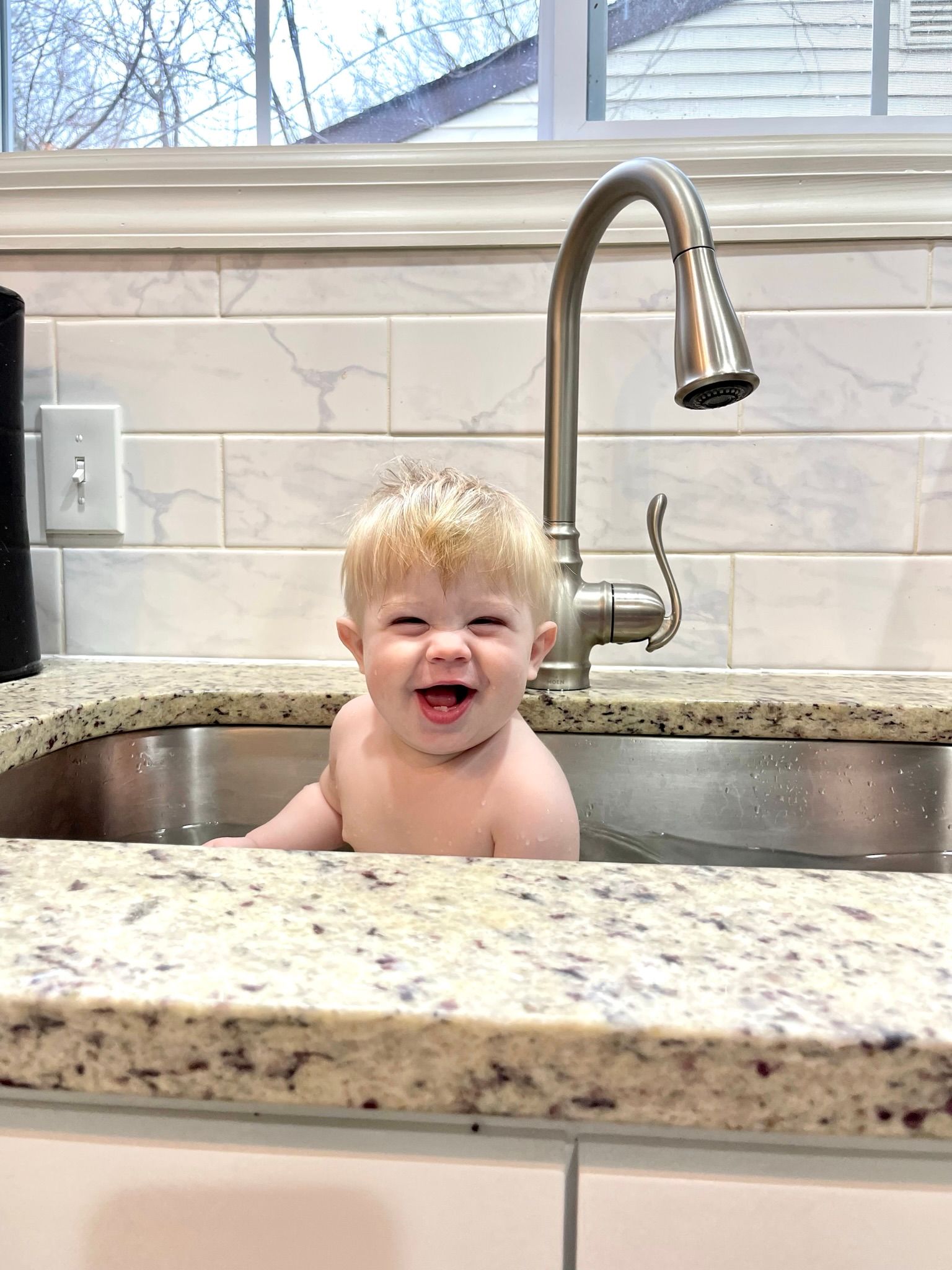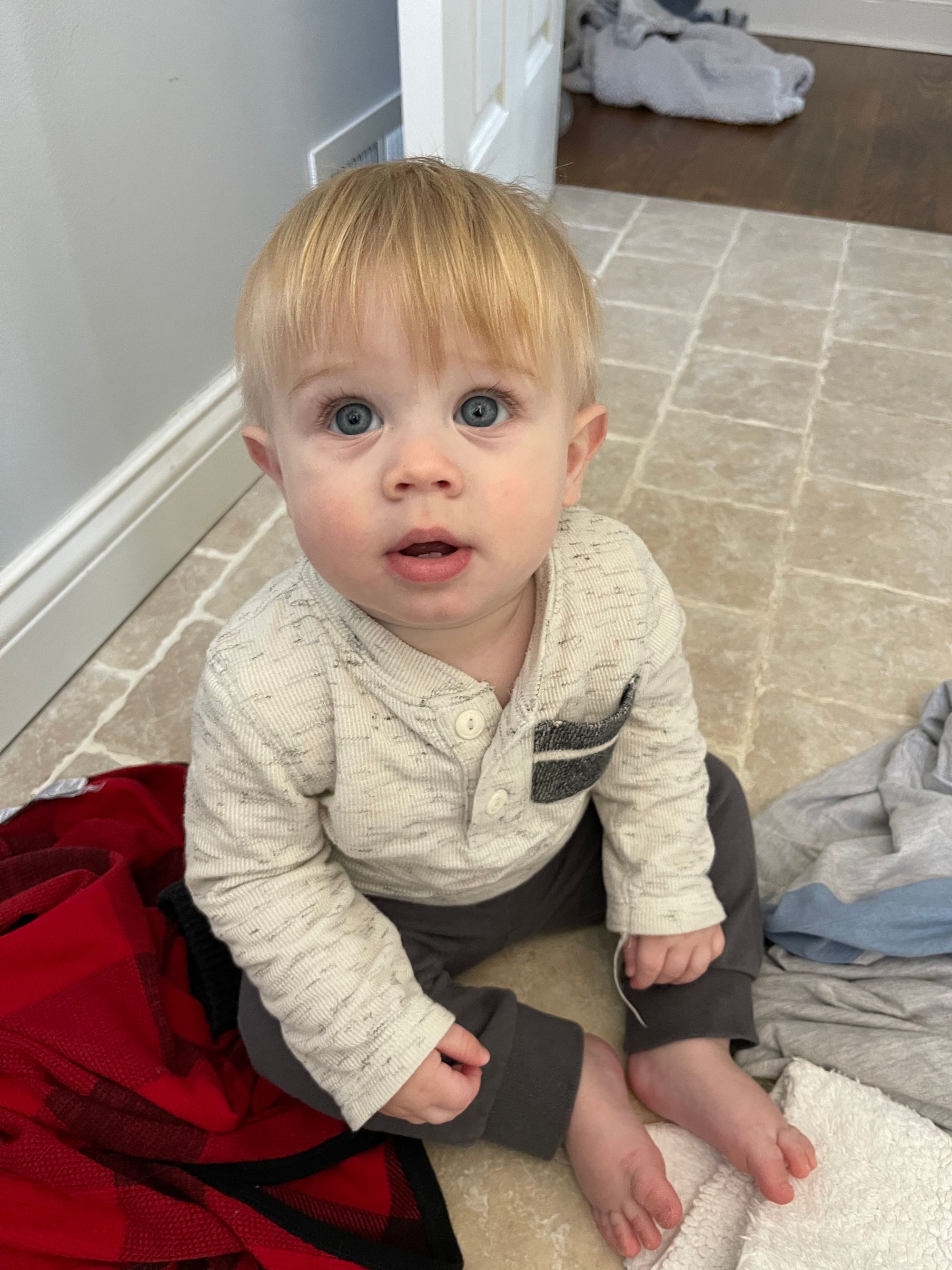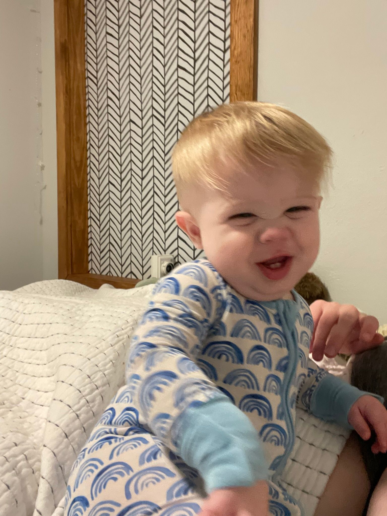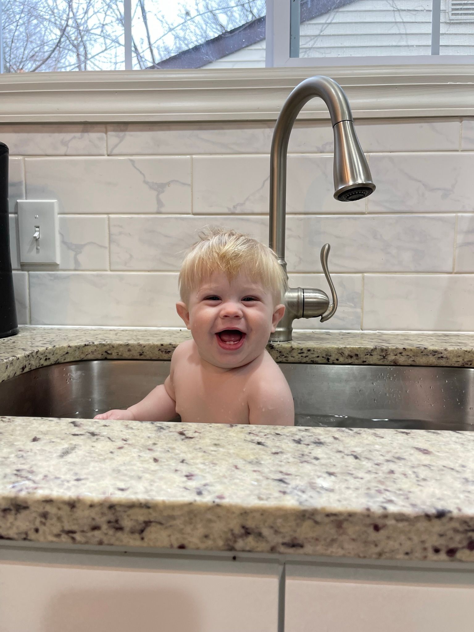 Benson fell asleep on our walk today with this strainer in his hand - I thought it was hilarious!