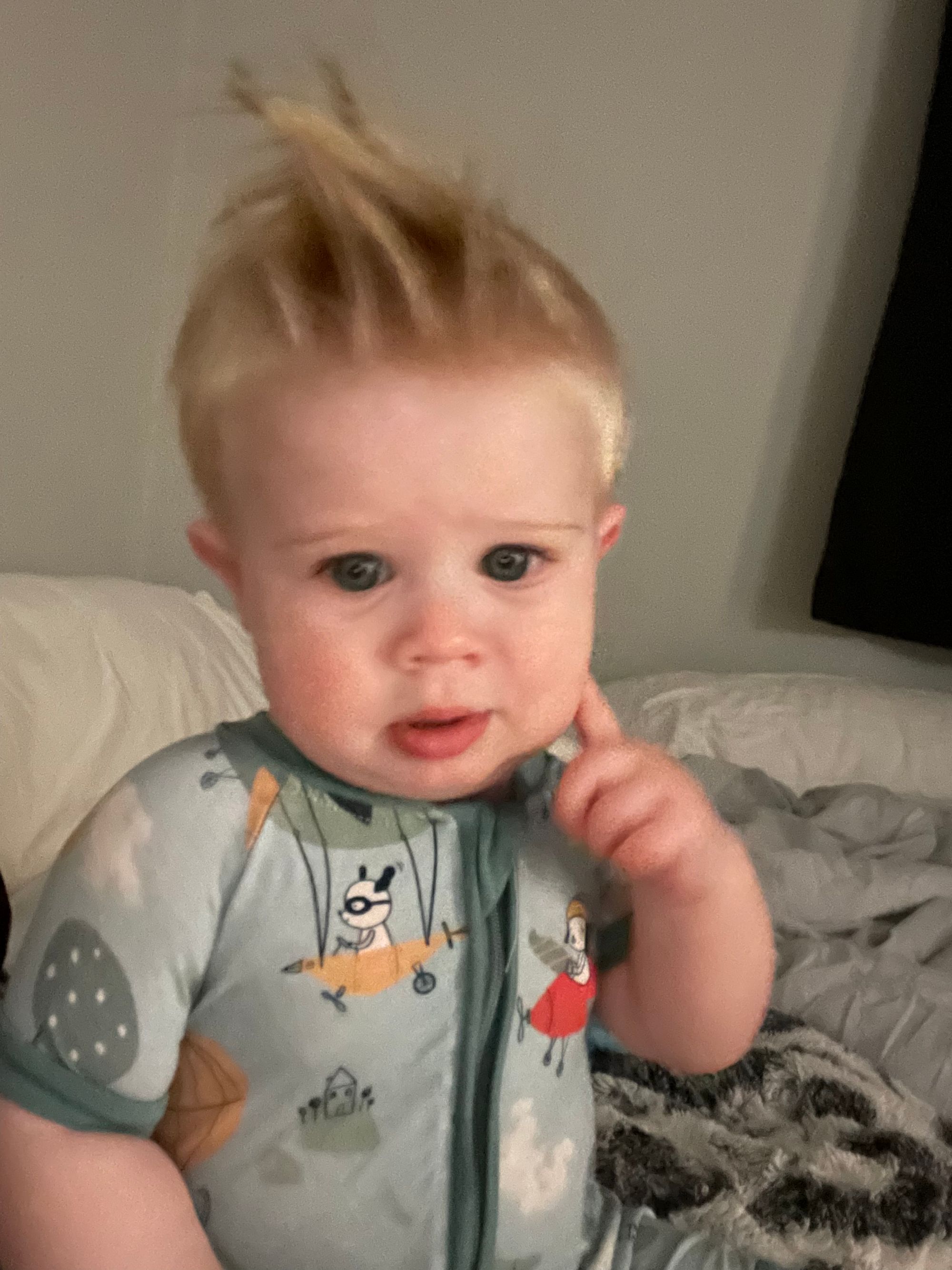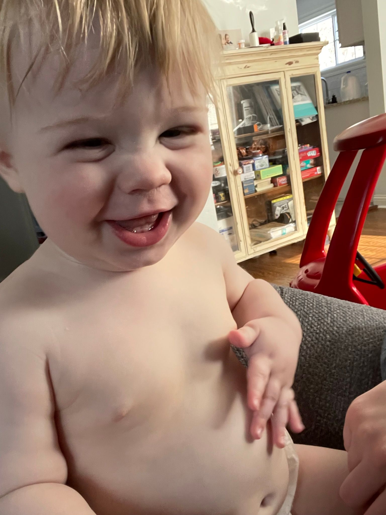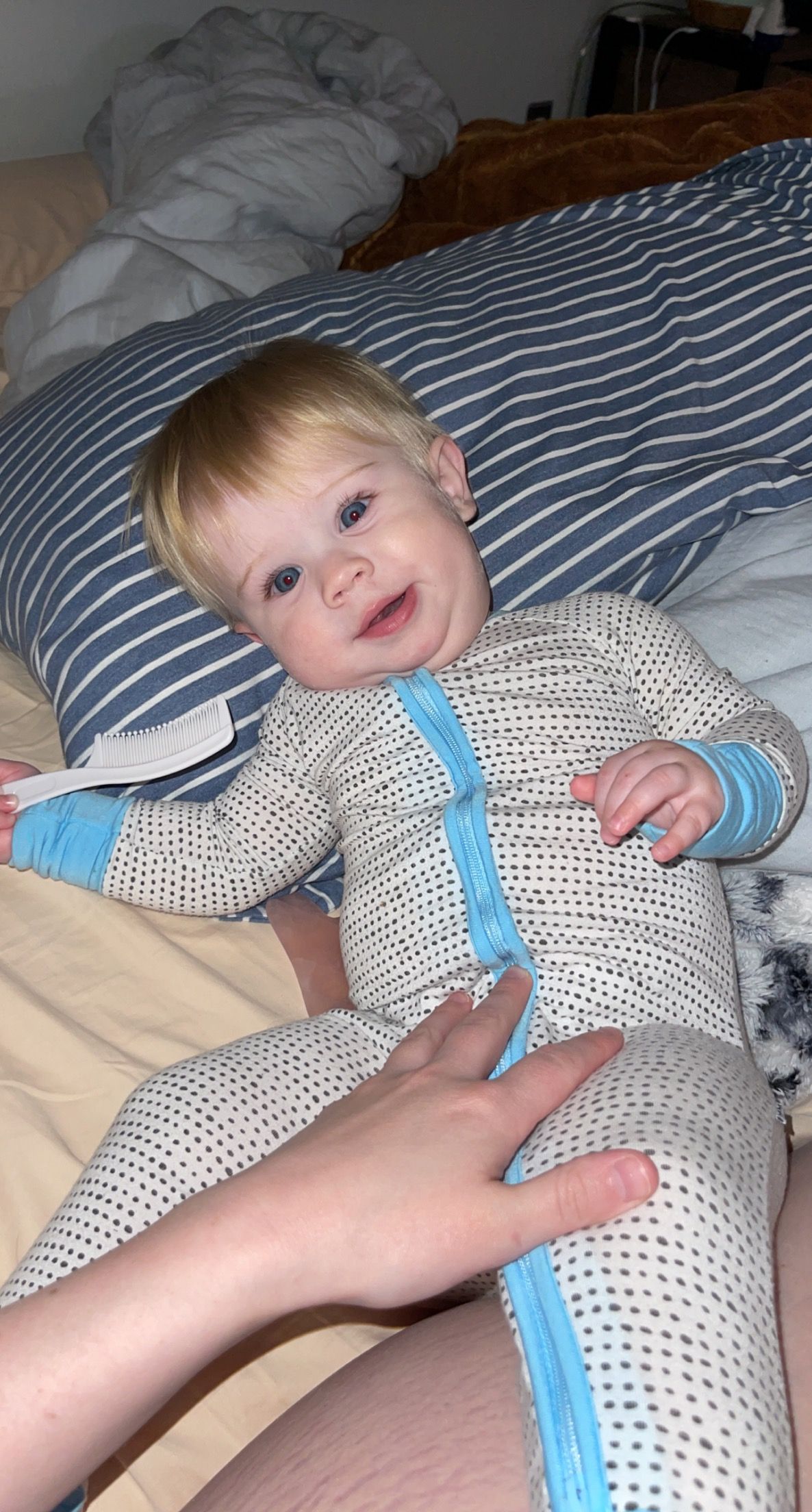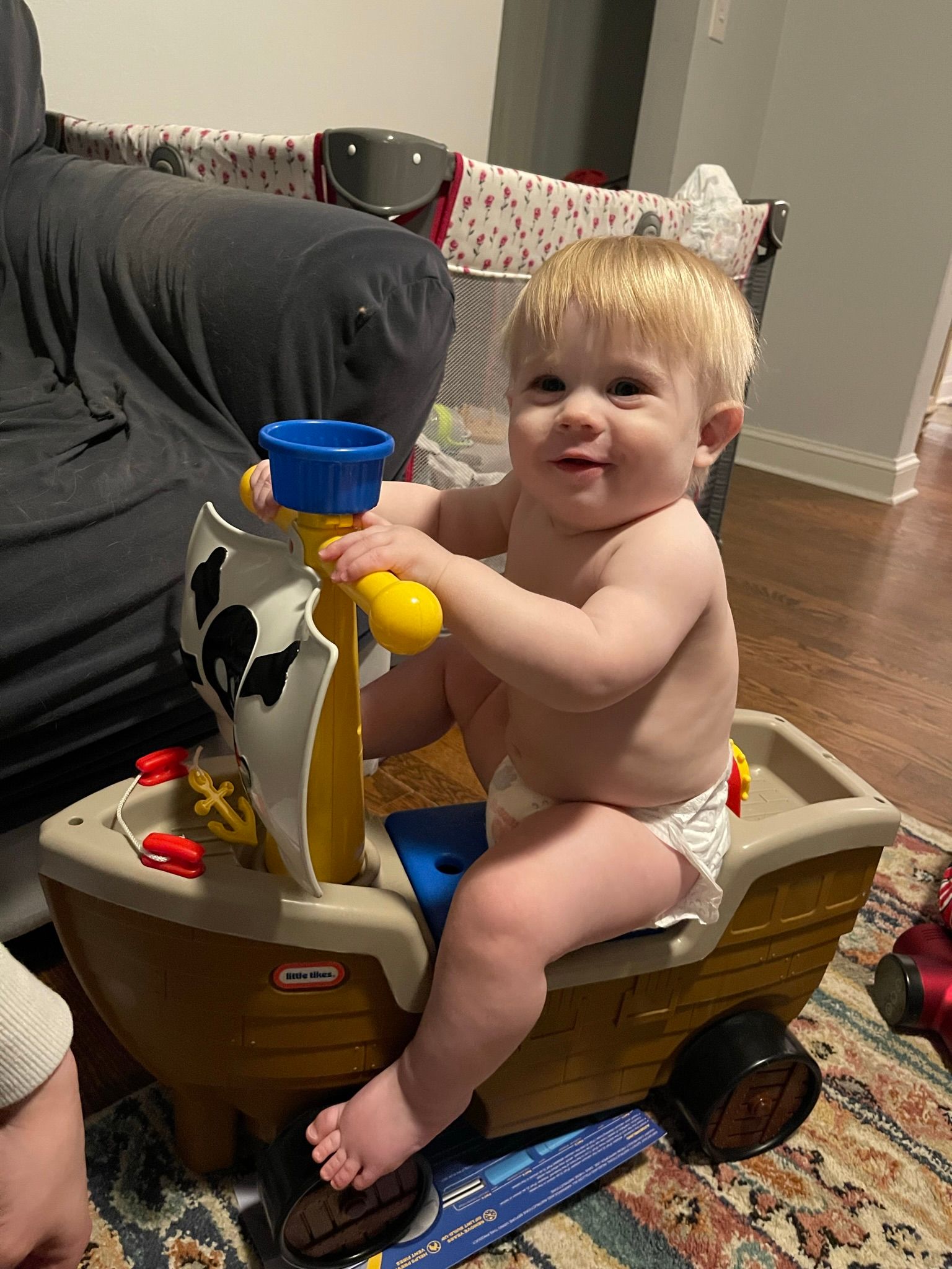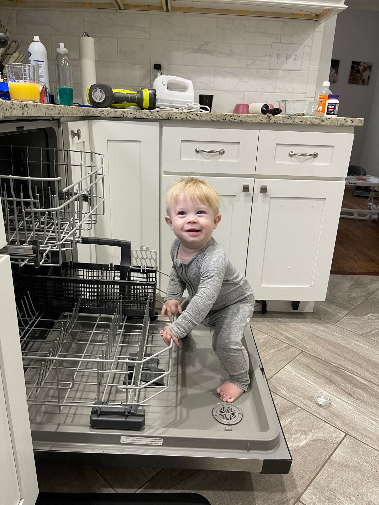 Benson fell asleep on our walk today with this strainer in his hand - I thought it was hilarious!