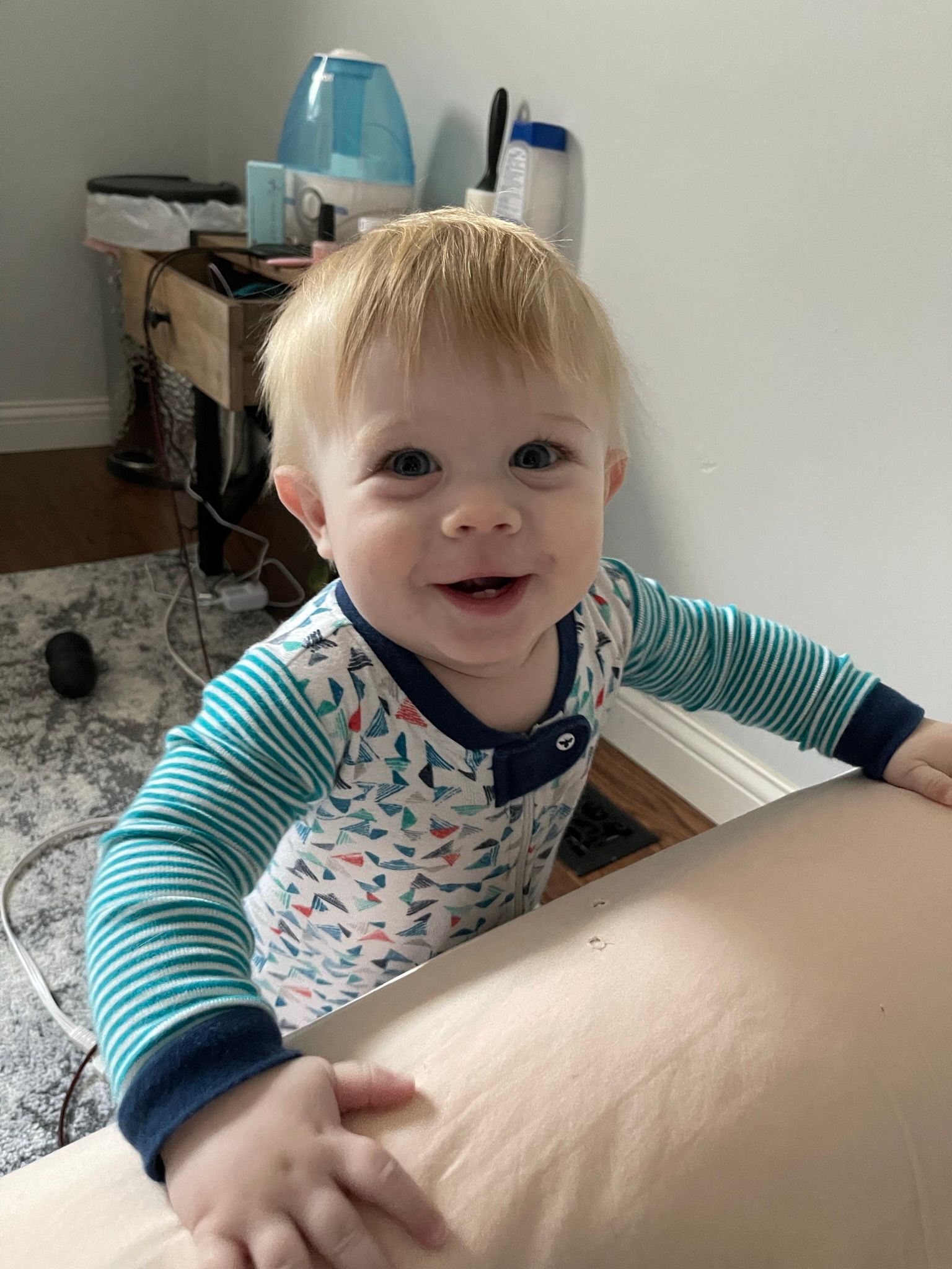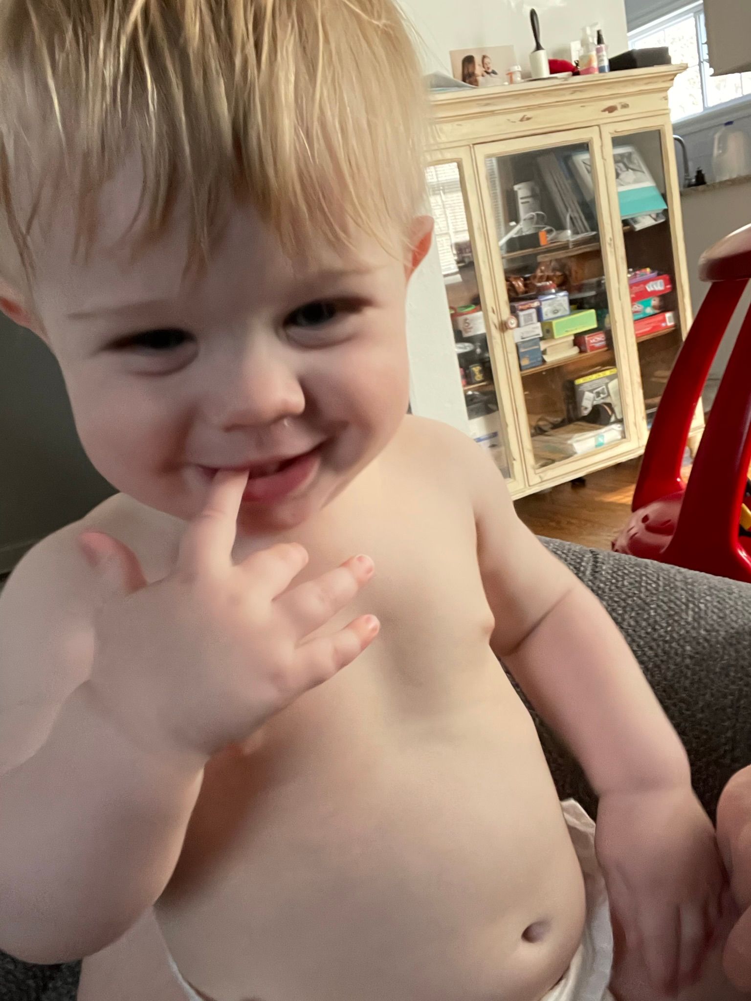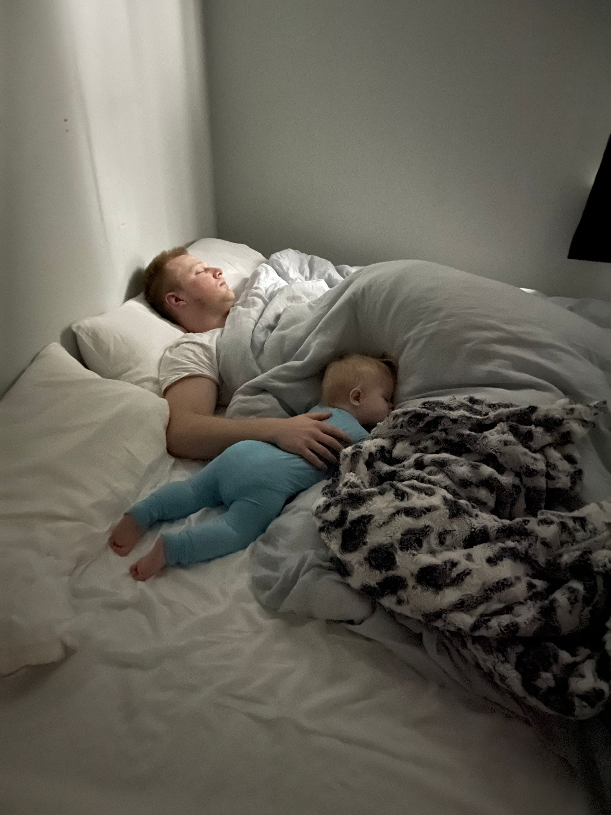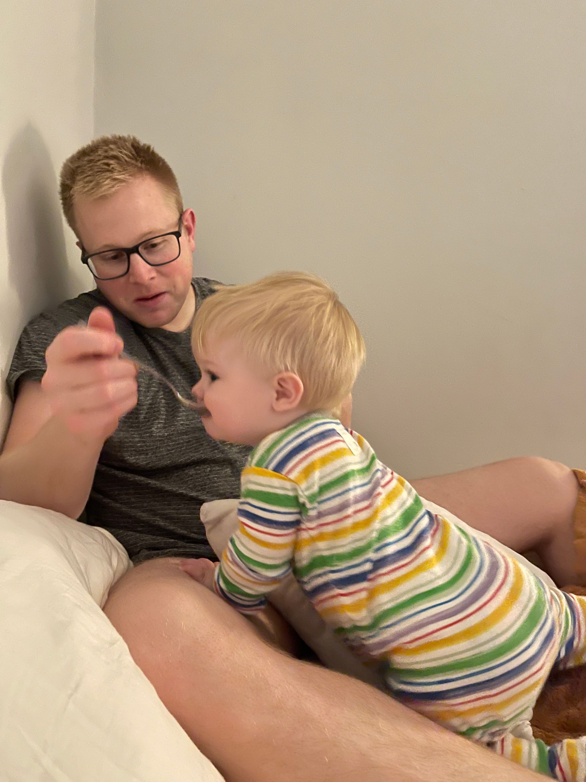 Benson fell asleep on our walk today with this strainer in his hand - I thought it was hilarious!