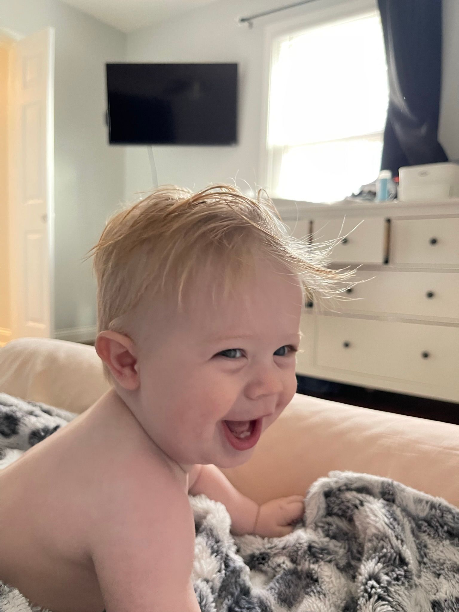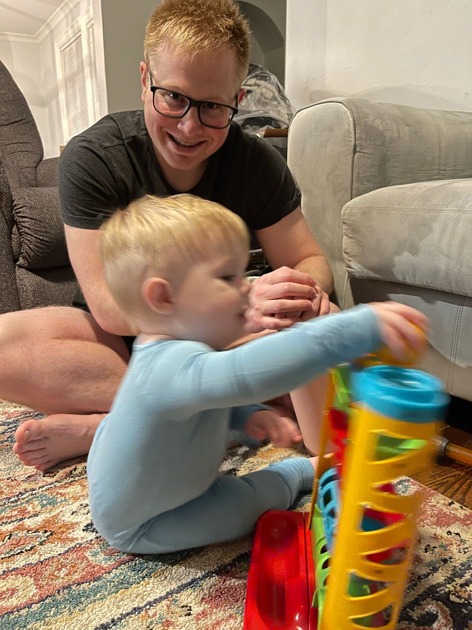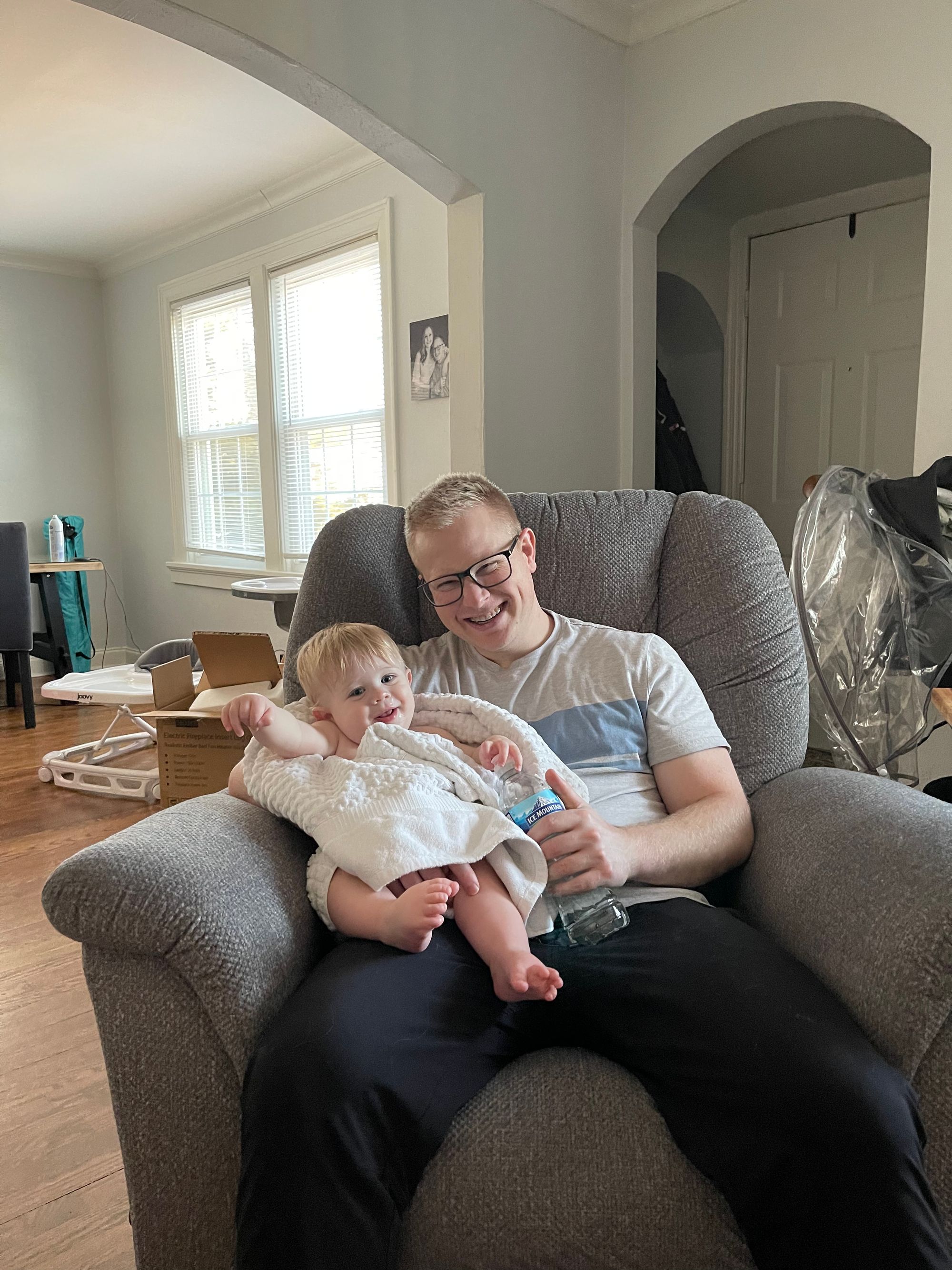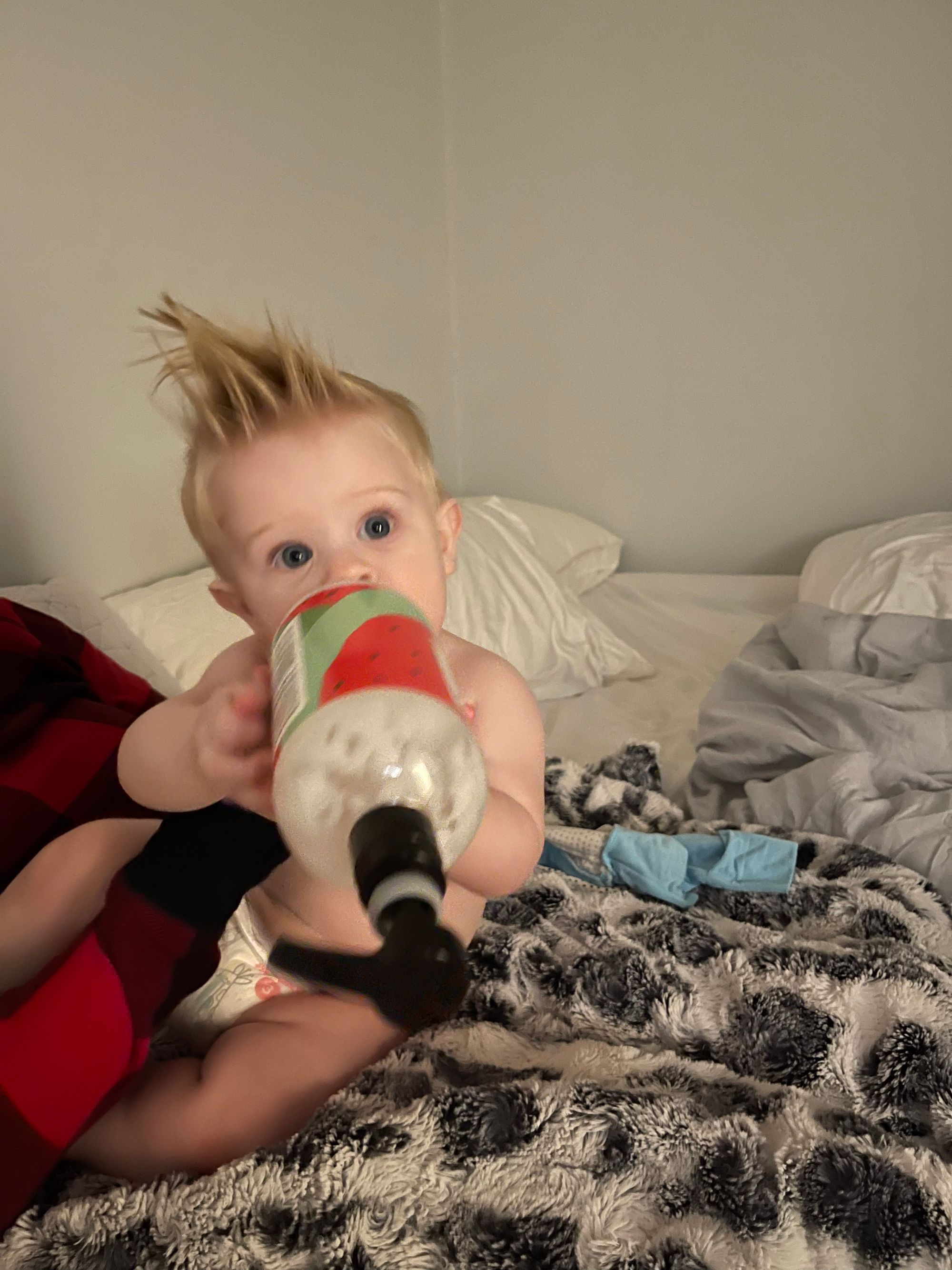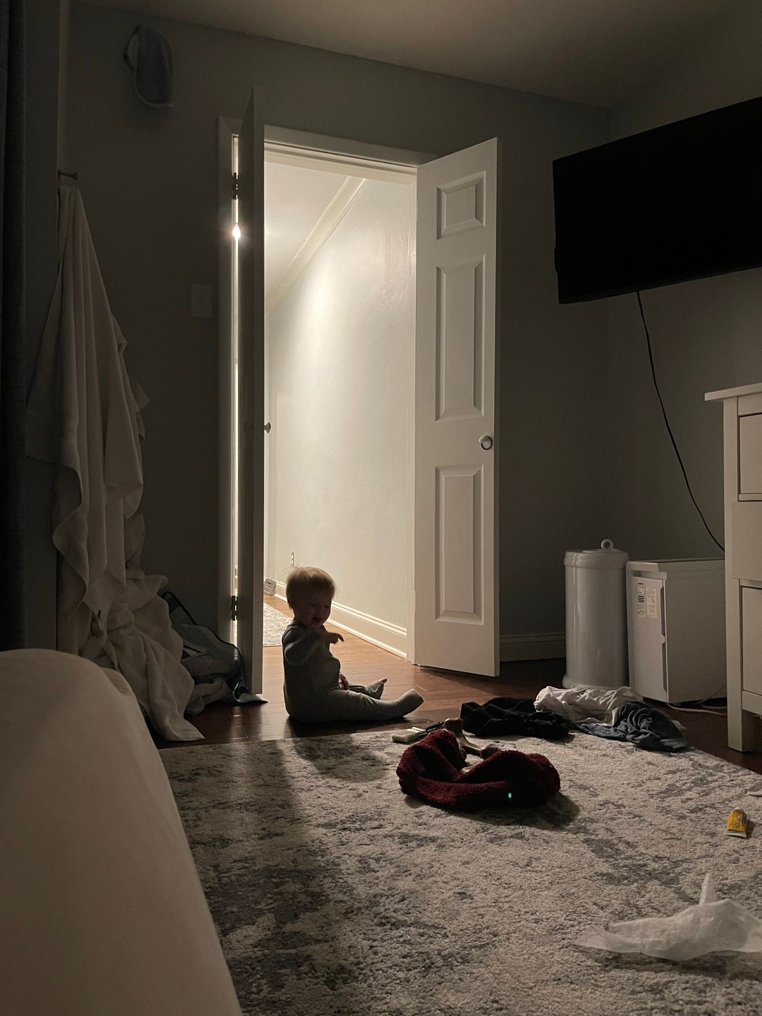 Benson fell asleep on our walk today with this strainer in his hand - I thought it was hilarious!
