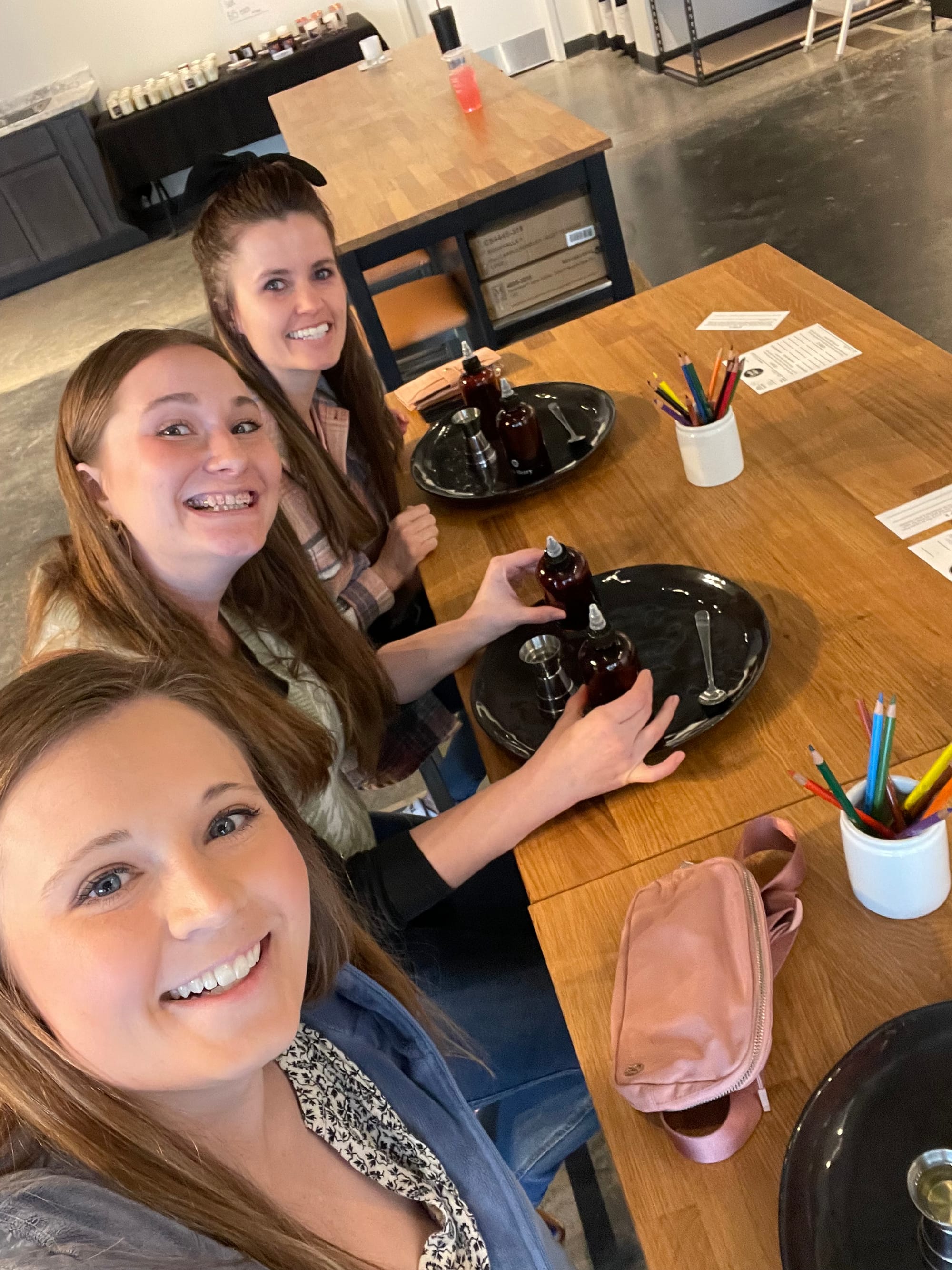 I met the girls to make a candle! It was fun and we all three picked the exact same scent!