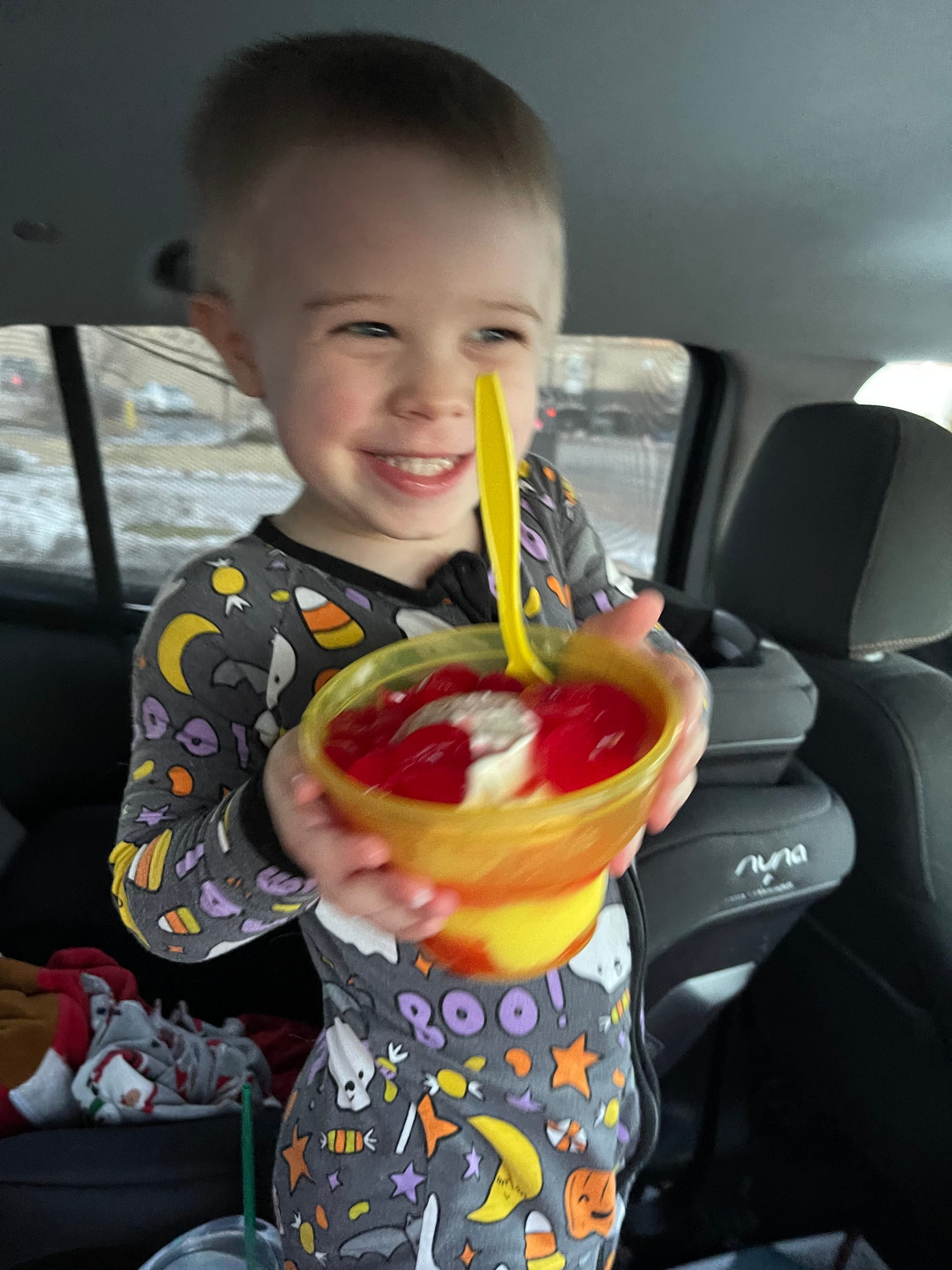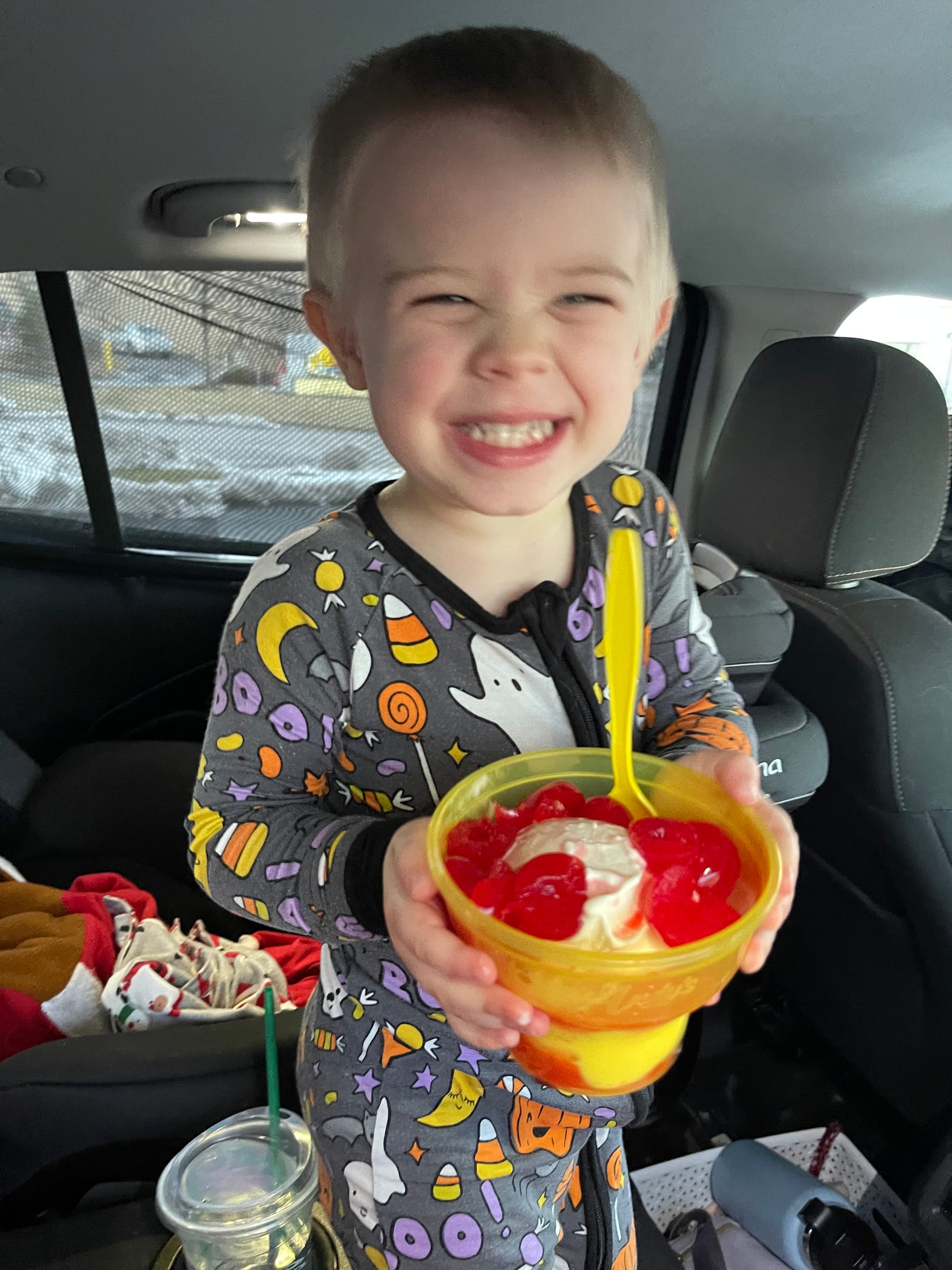 This kids LOVES cherries. He was thrilled when there were so many on top of his ice cream.
