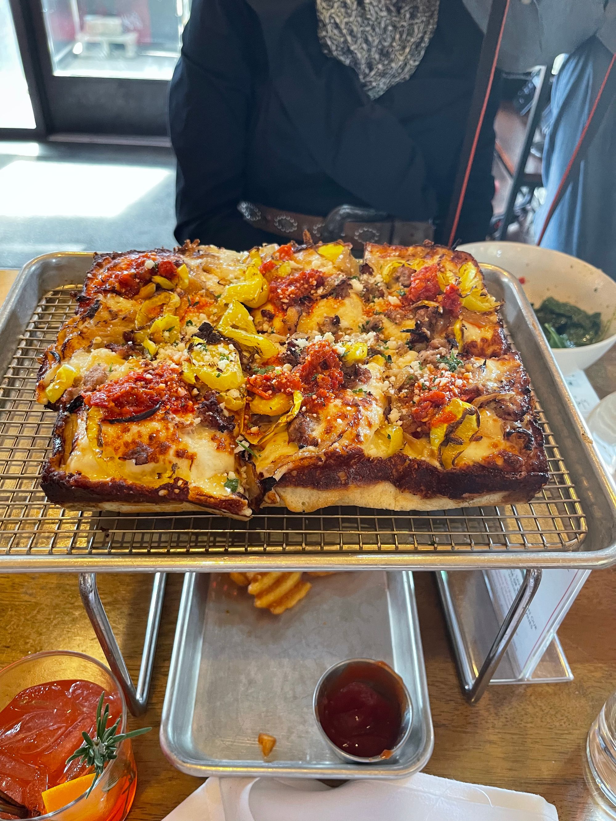 We ate dinner at Emmy Squared Gulch. It was delicious!! My new life includes an occasional alcoholic beverage - breastfeeding doesn't allow me to drink more than a sip so it was fun to order and drink all of it! Pump + dump baby.
