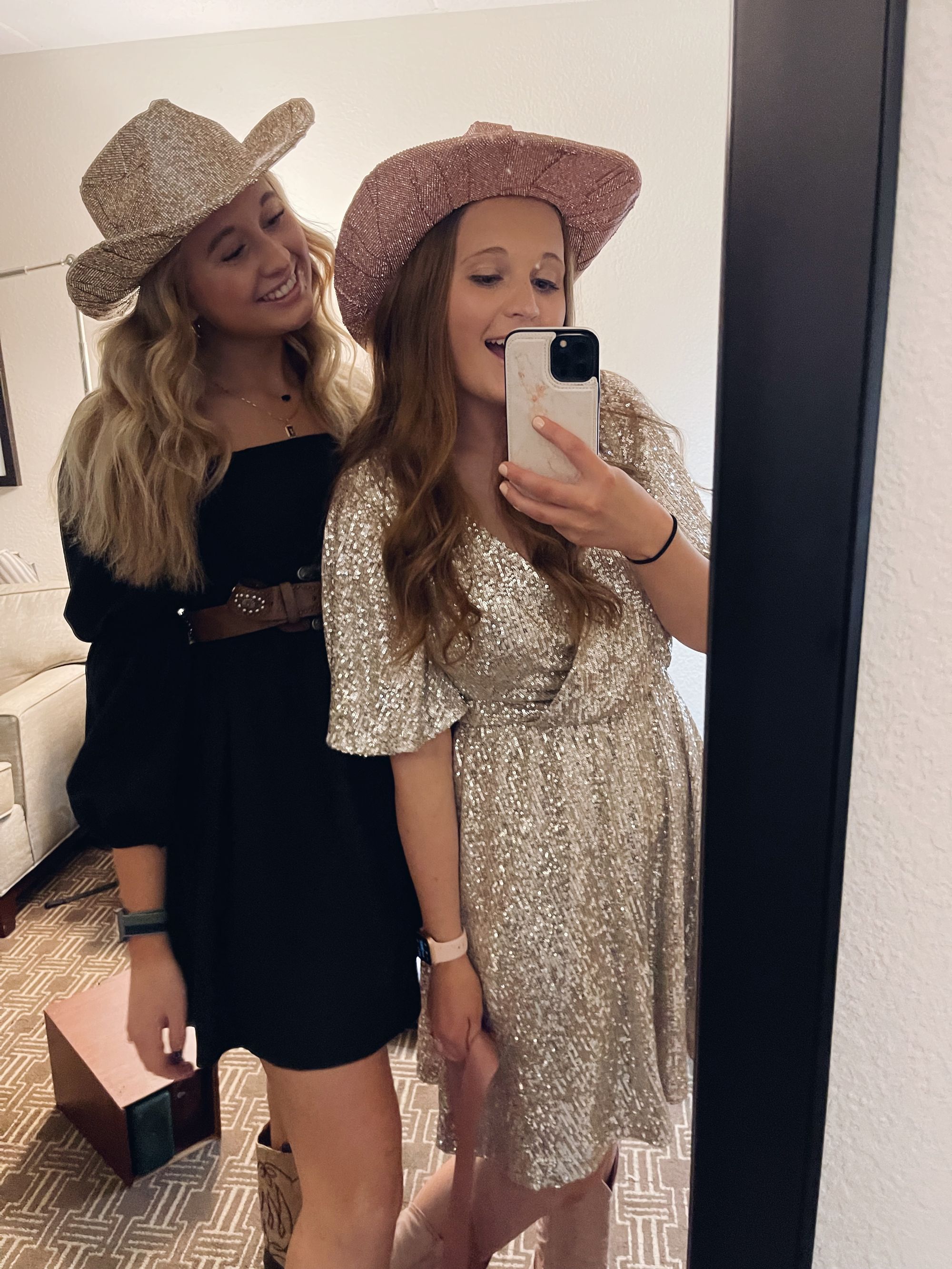 Maddy bedazzled a hat for a party she went to and we tried to recruit her to do it for us too! She said hell no. So my sweet mom volunteered, and she did an amazing job! I started looking for some cowgirl boots and I came across some from Steve Madden - they were pink and screamed Sydney! They were on backorder and should be getting into stock a few days before the concert. I paid for overnight shipping and crossed my fingers they would arrive.