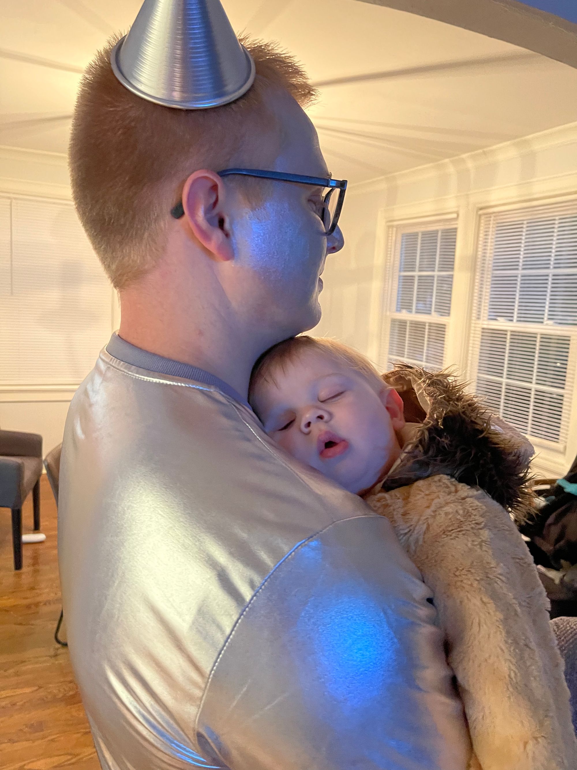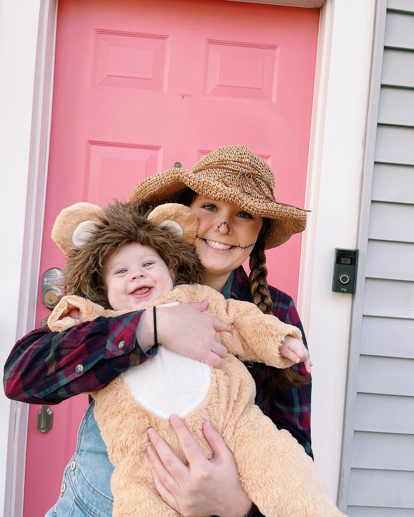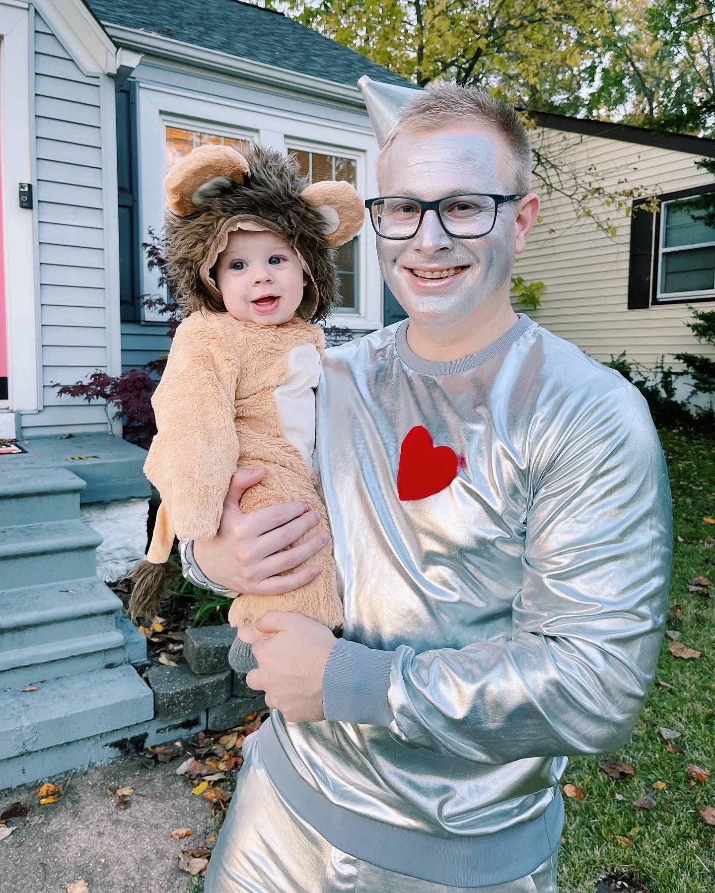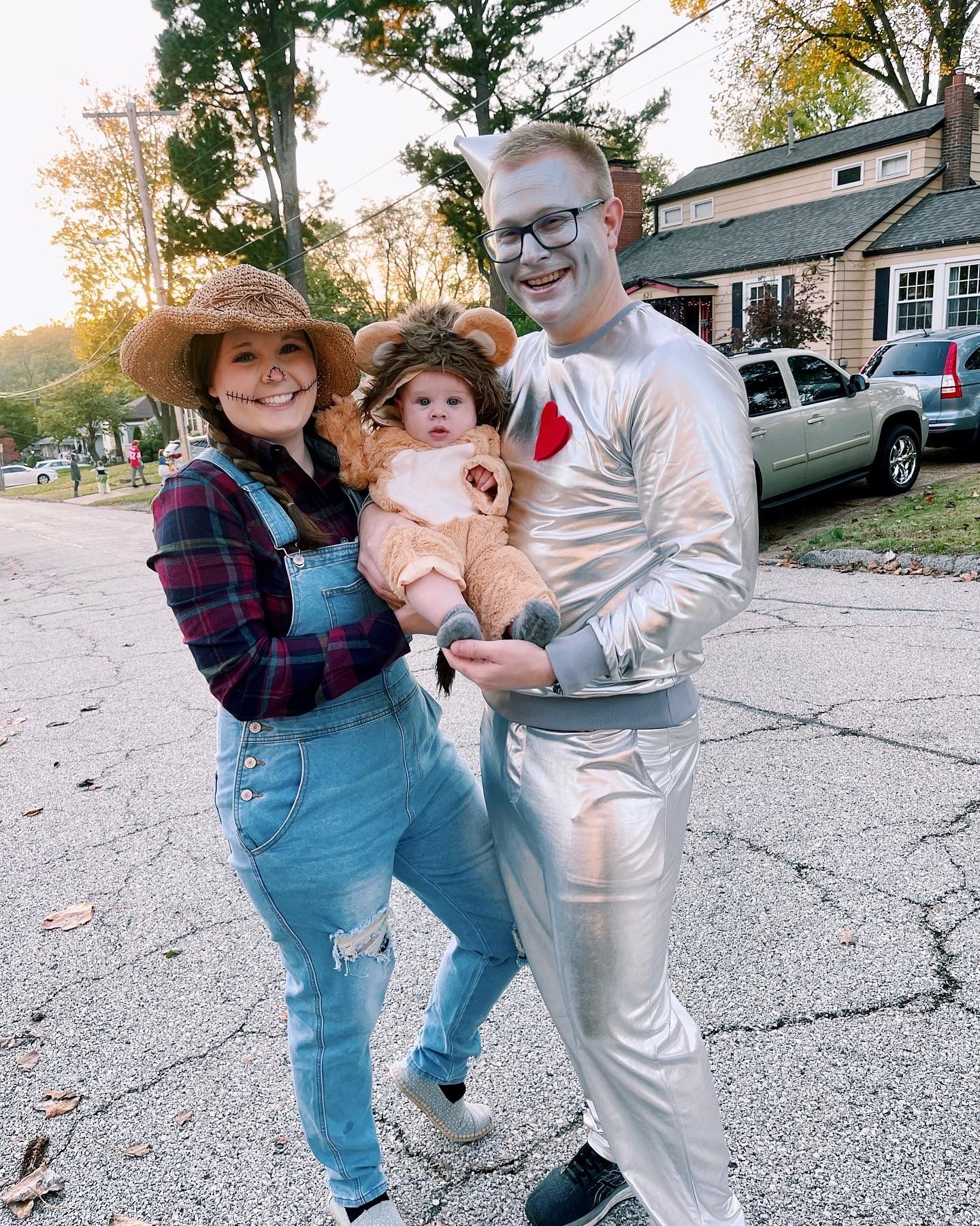 Our first halloween with Benny! We were so excited and decided to be characters from the Wizard of Oz! I was a scarecrow, Logan was the tin man, and both Benny and Finn were lions!