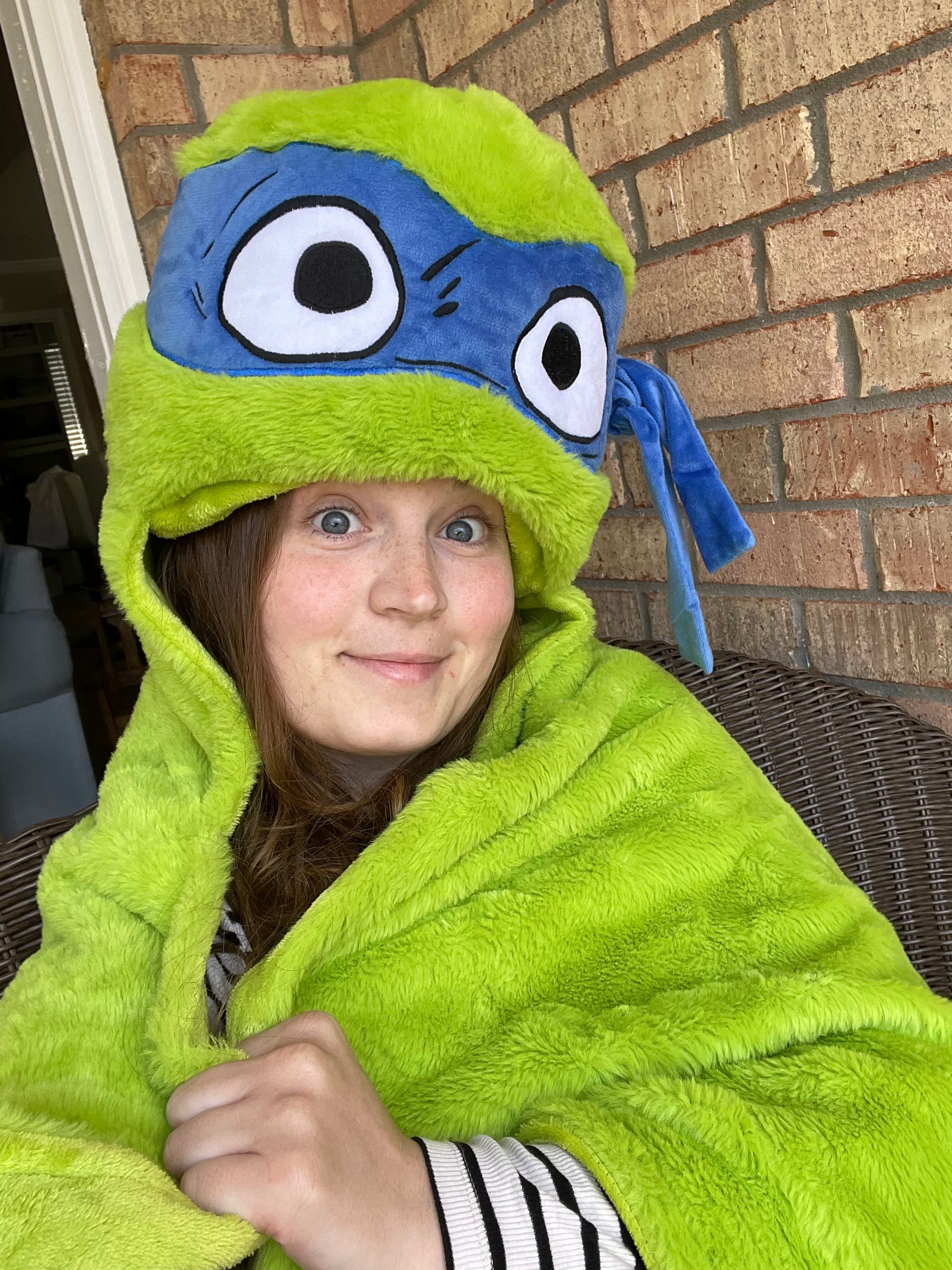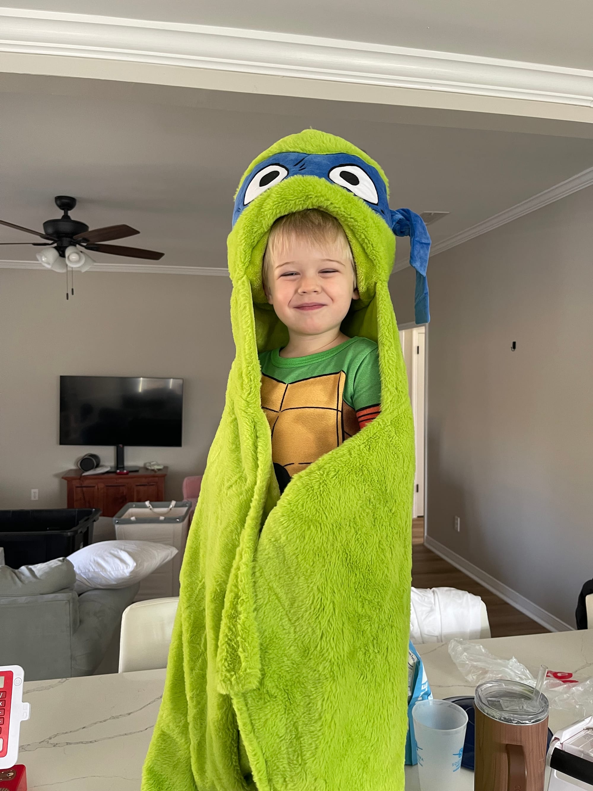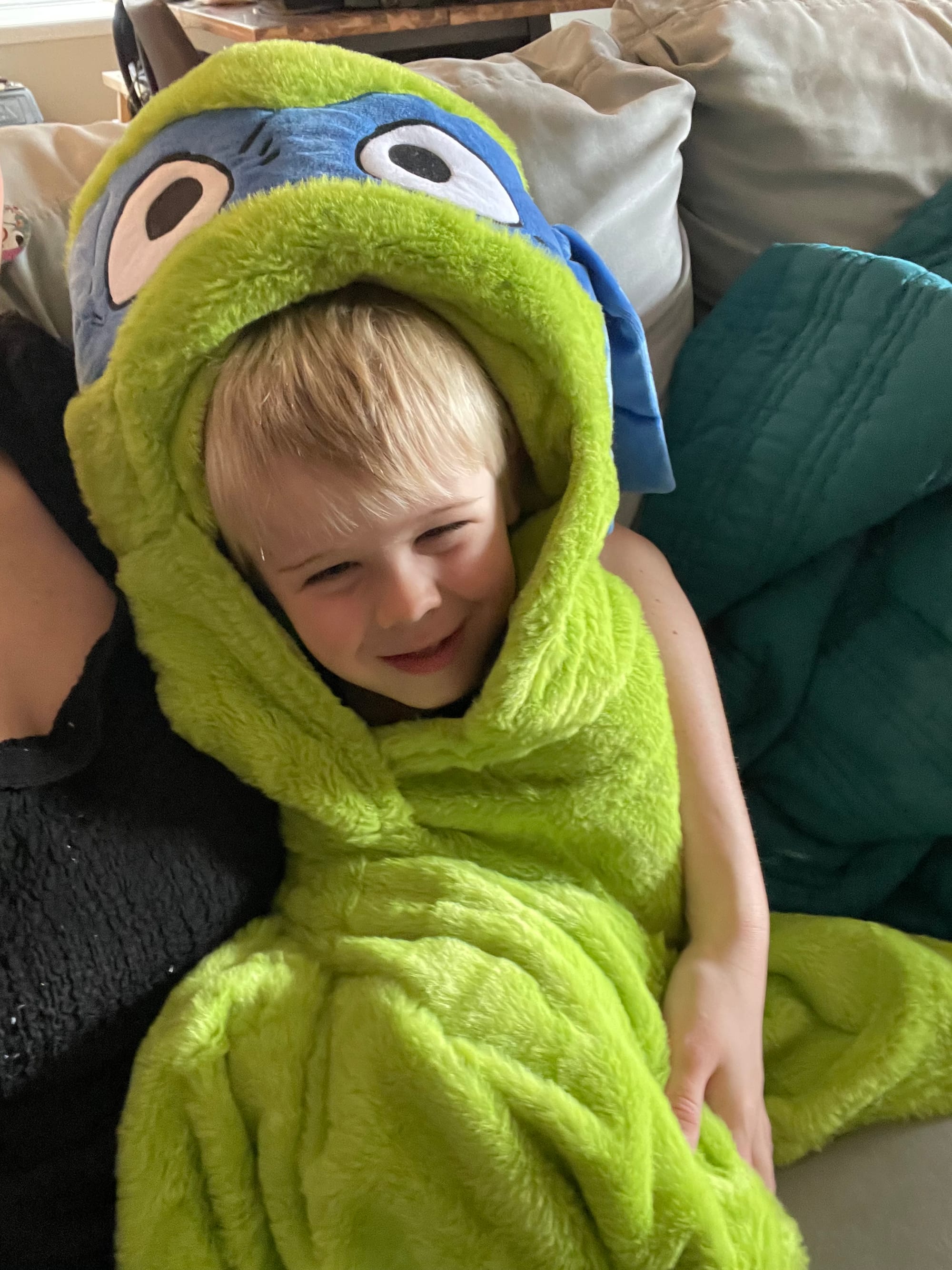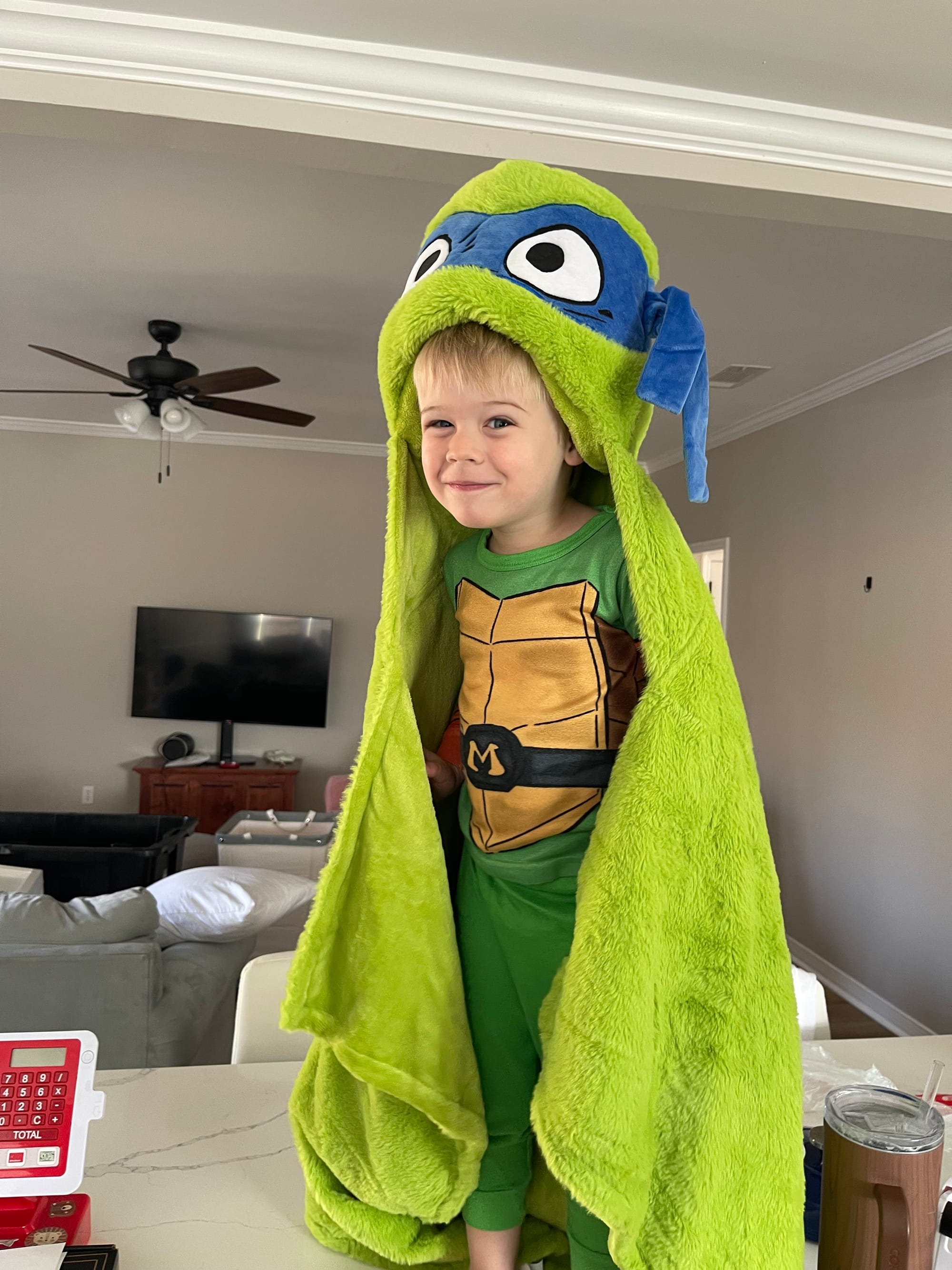 Ben loves ninja turtles lately. We saw this blanket at Target and he needed it!