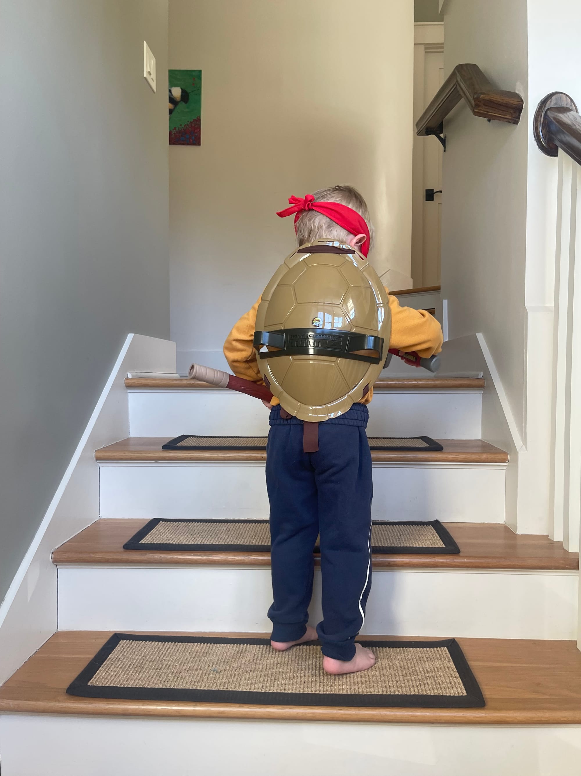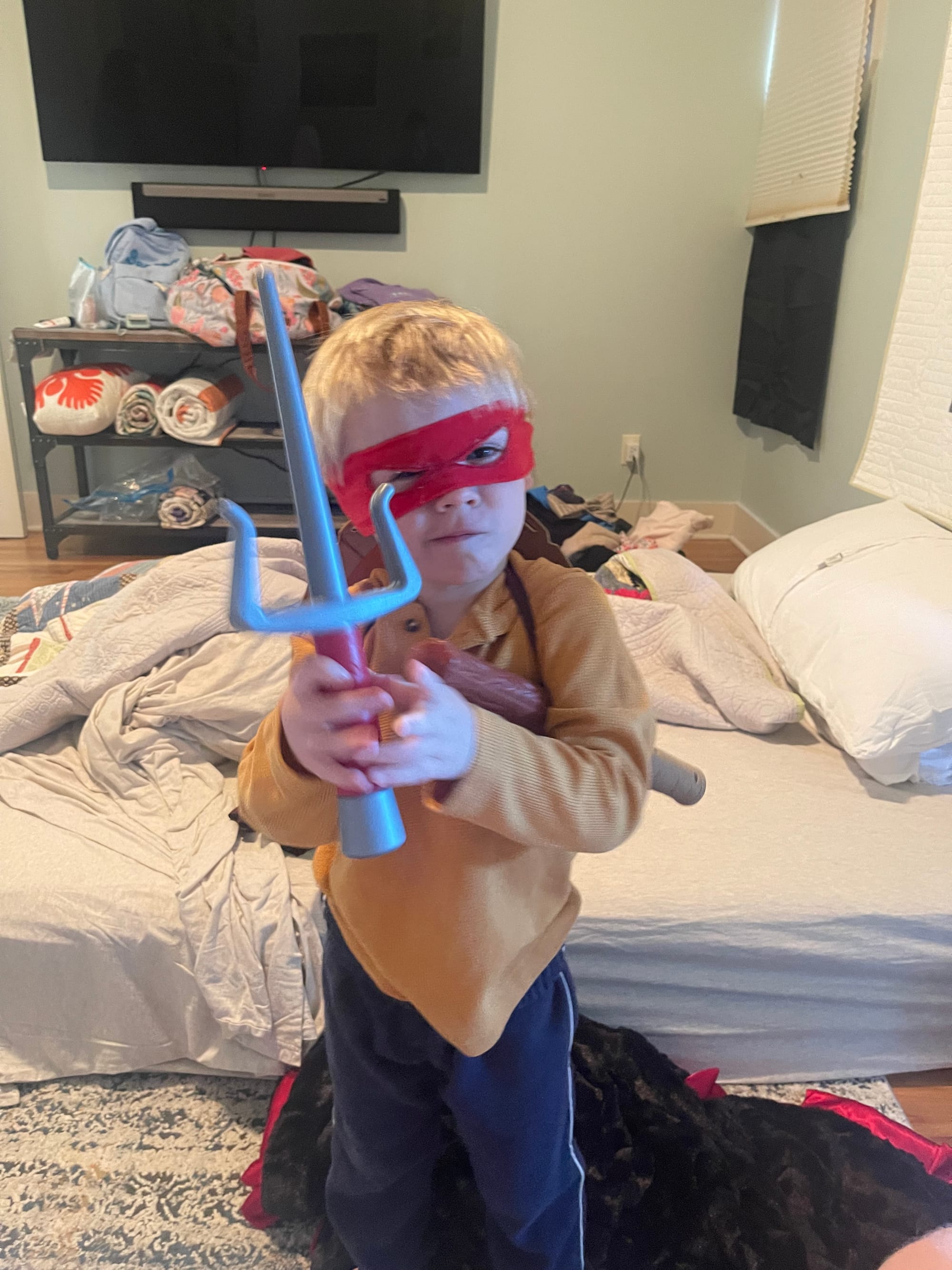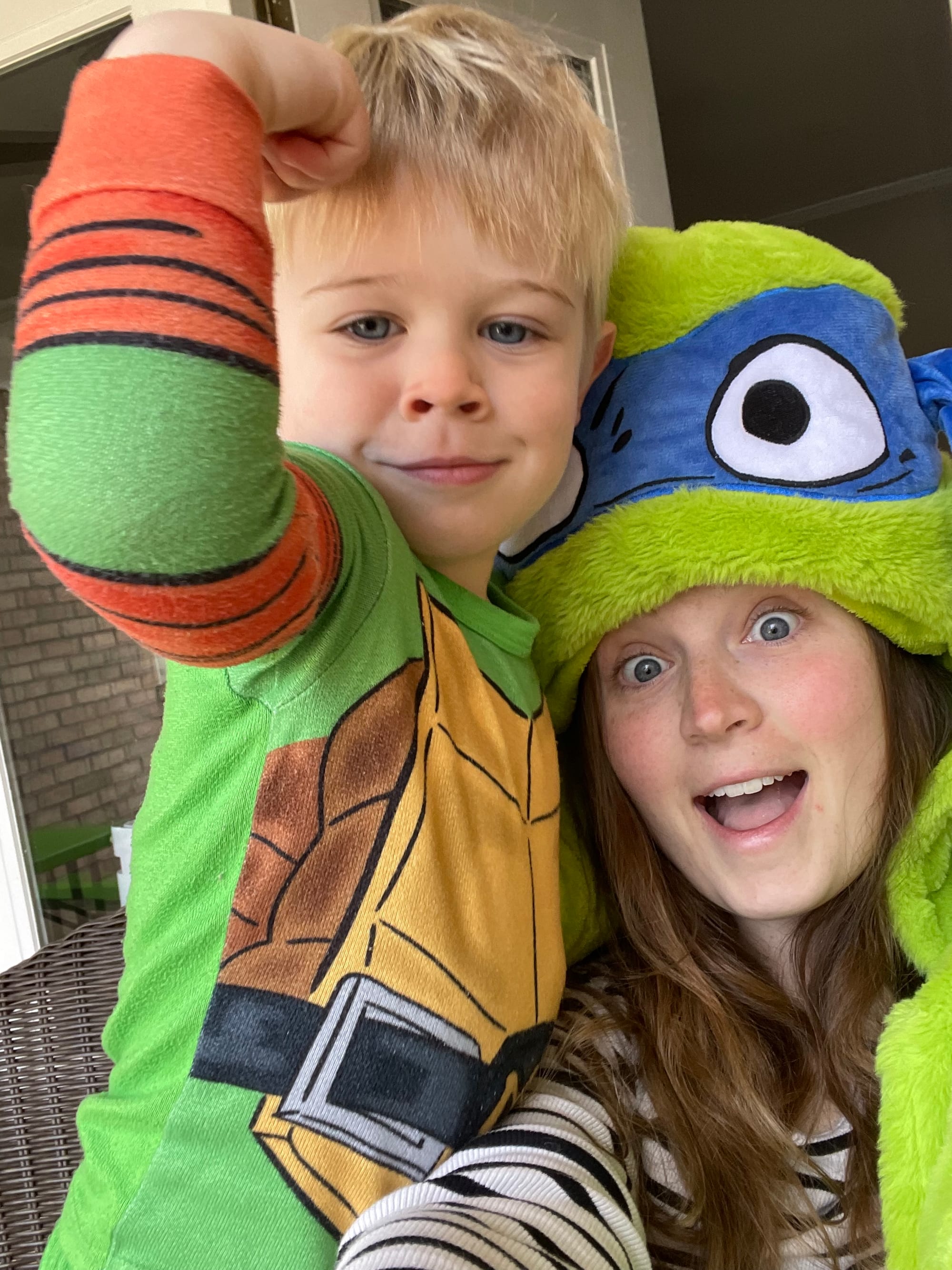 Ben loves ninja turtles lately. We saw this blanket at Target and he needed it!