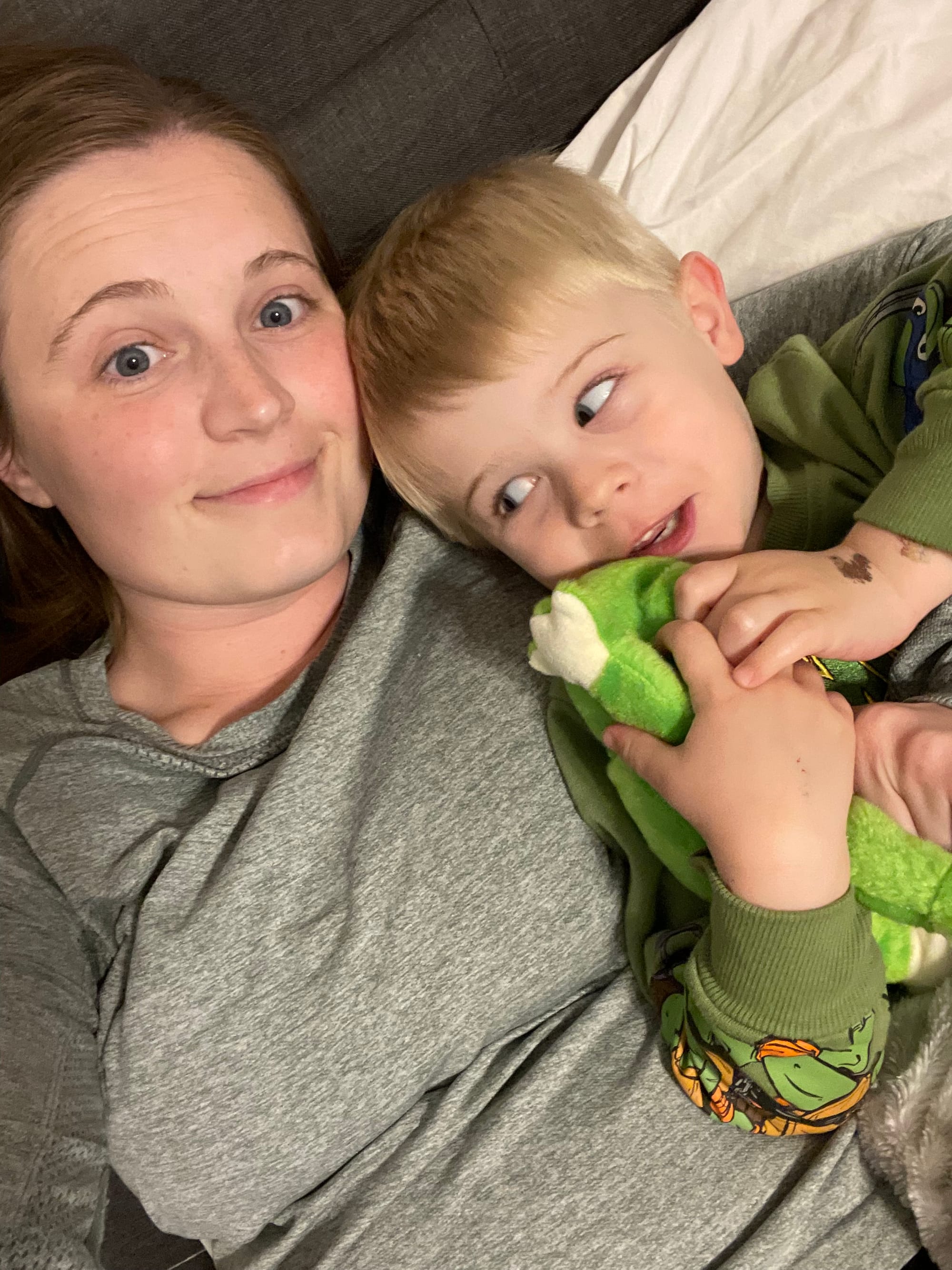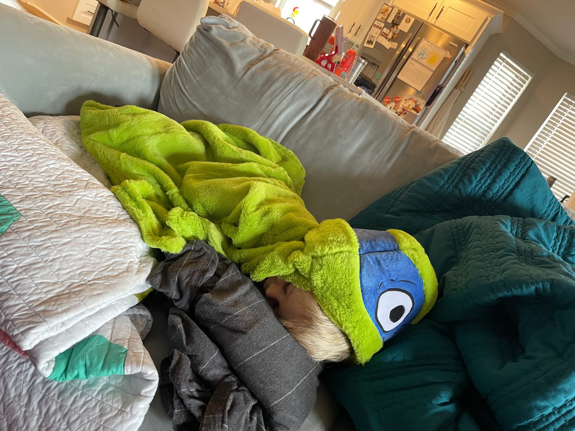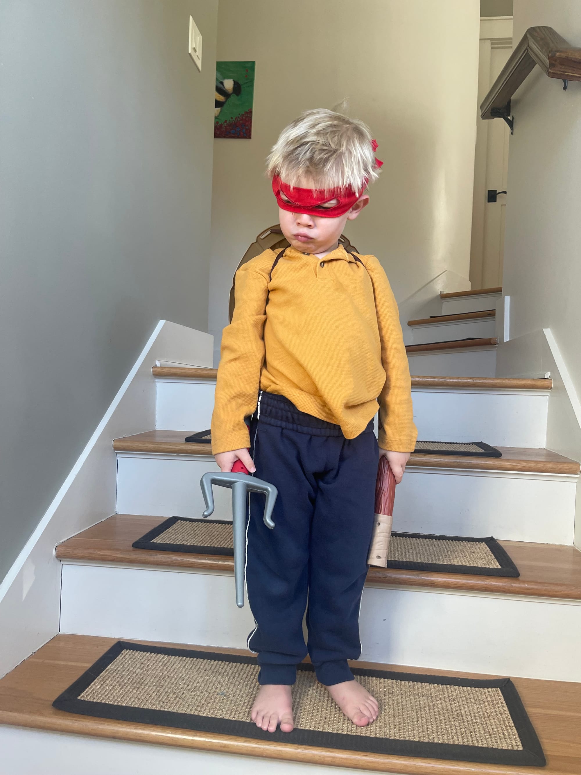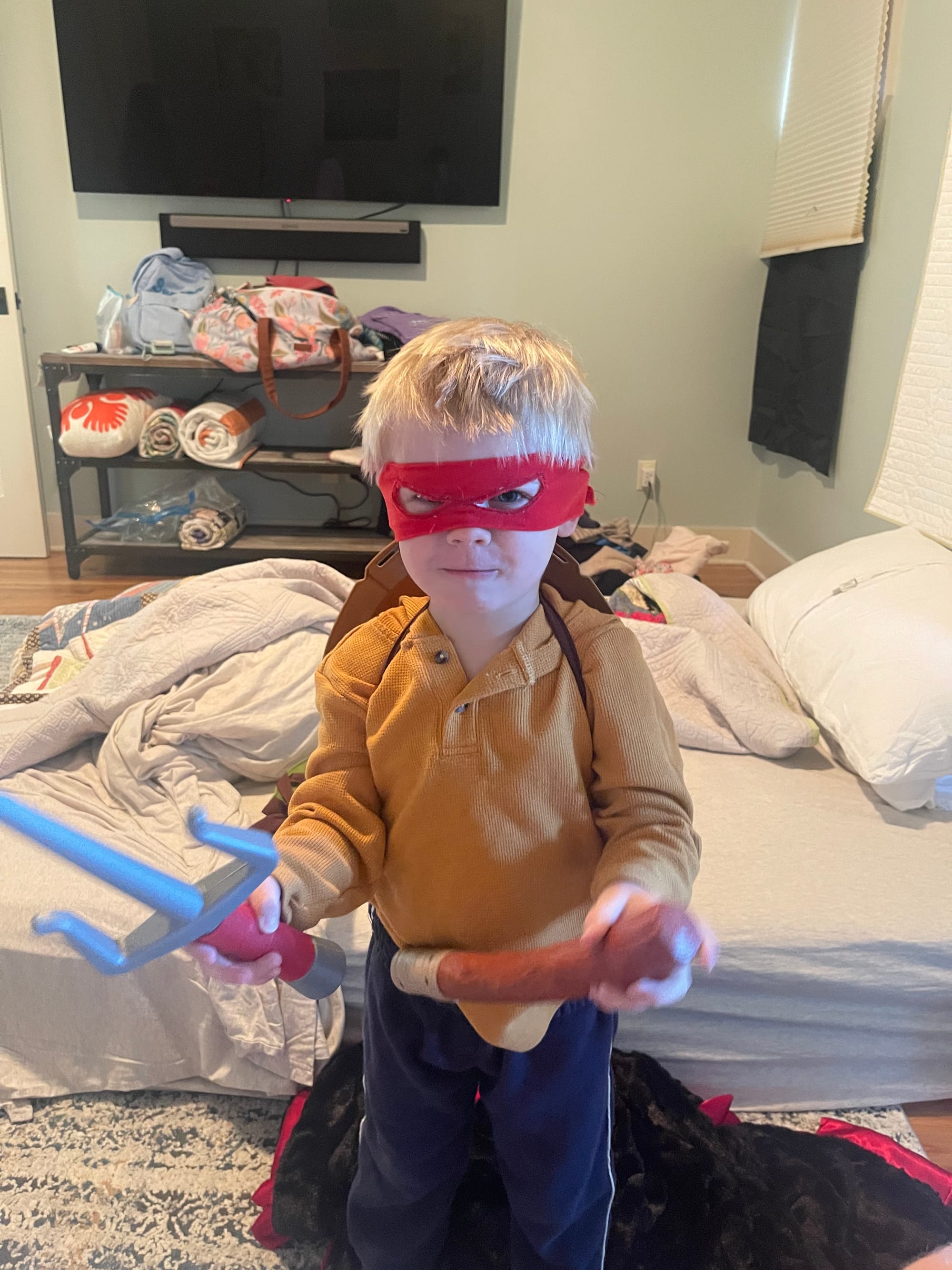 Ben loves ninja turtles lately. We saw this blanket at Target and he needed it!