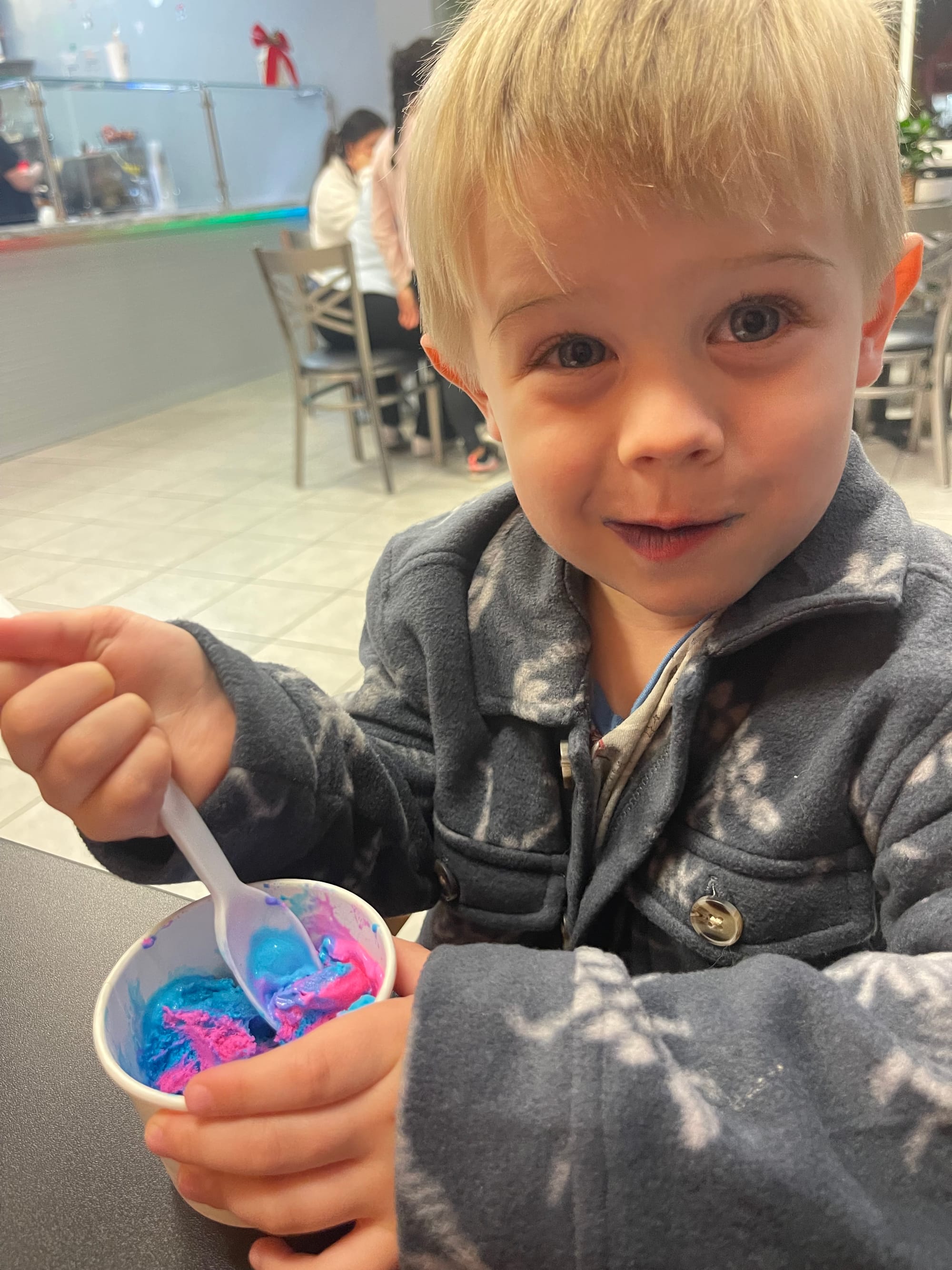 Logan only had one day of work before it was the weekend. We are loving having Fridays off!! Enjoyed an ice cream run.