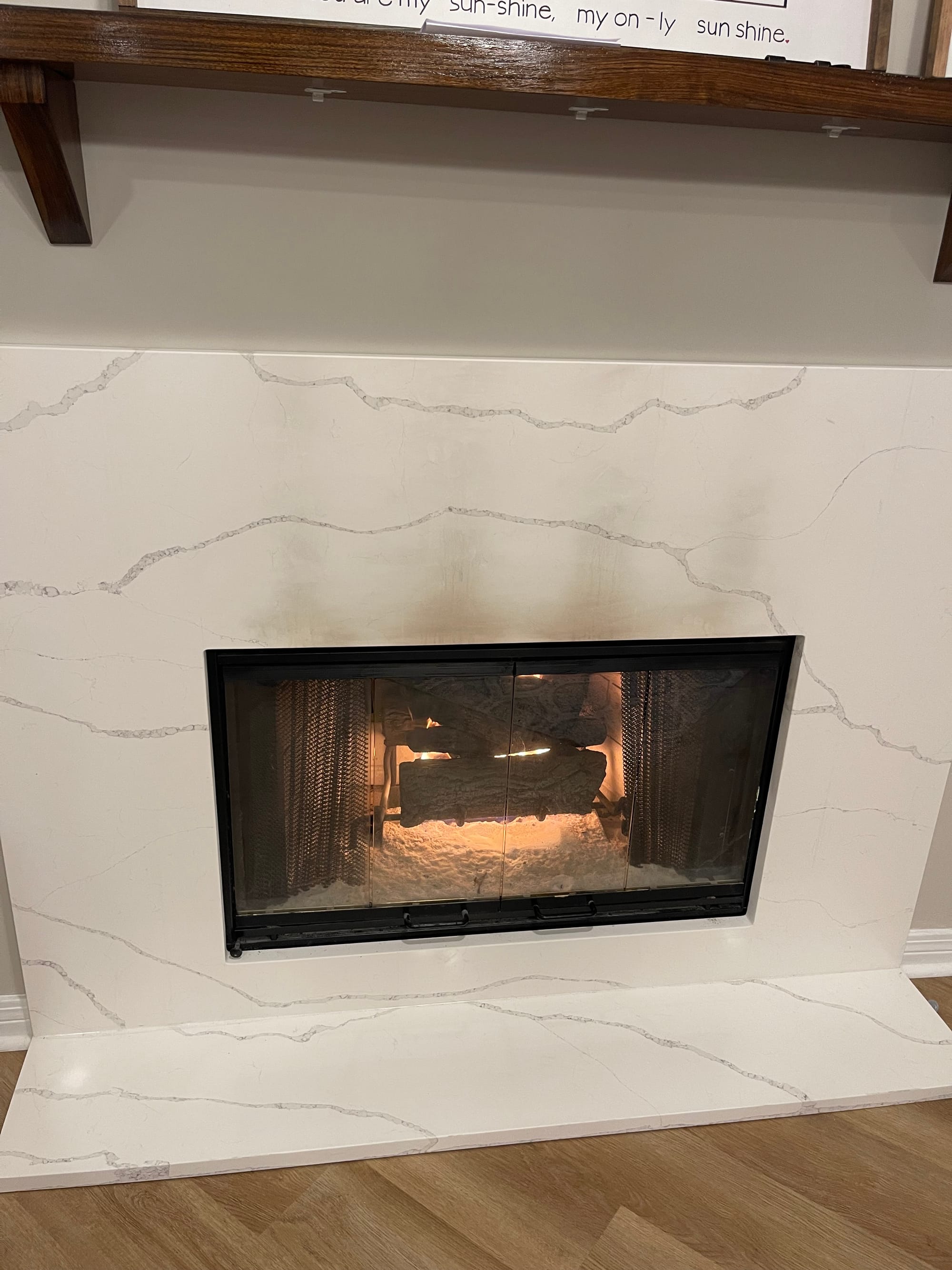 We tried out our fireplace… turns out the flute was not open and the quartz material surrounding the fireplace should not be done like it is. We heard a crack - oops!
